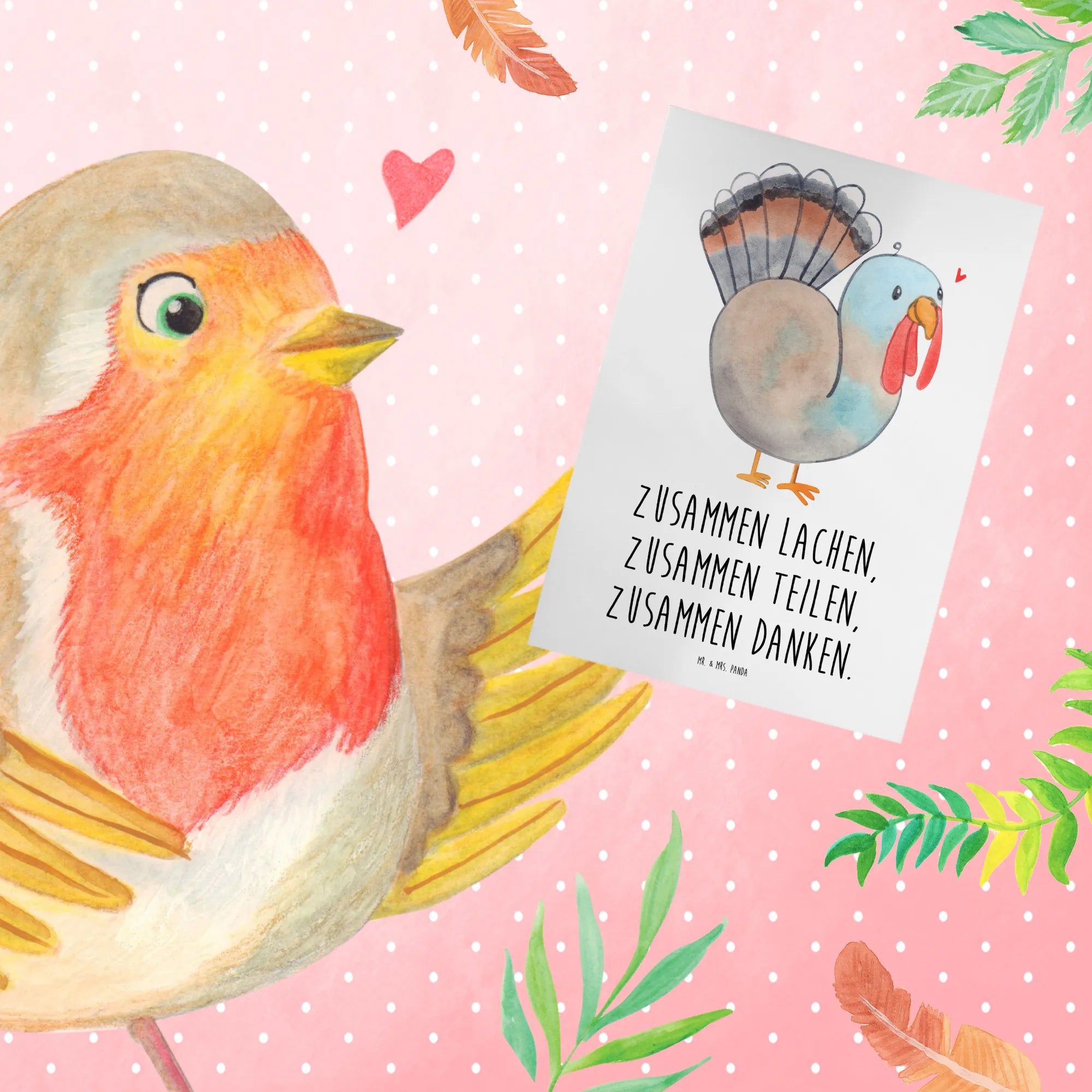 Greetings card Zusammen lachen, zusammen teilen, zusammen danken. – Mr. & Mrs. Panda