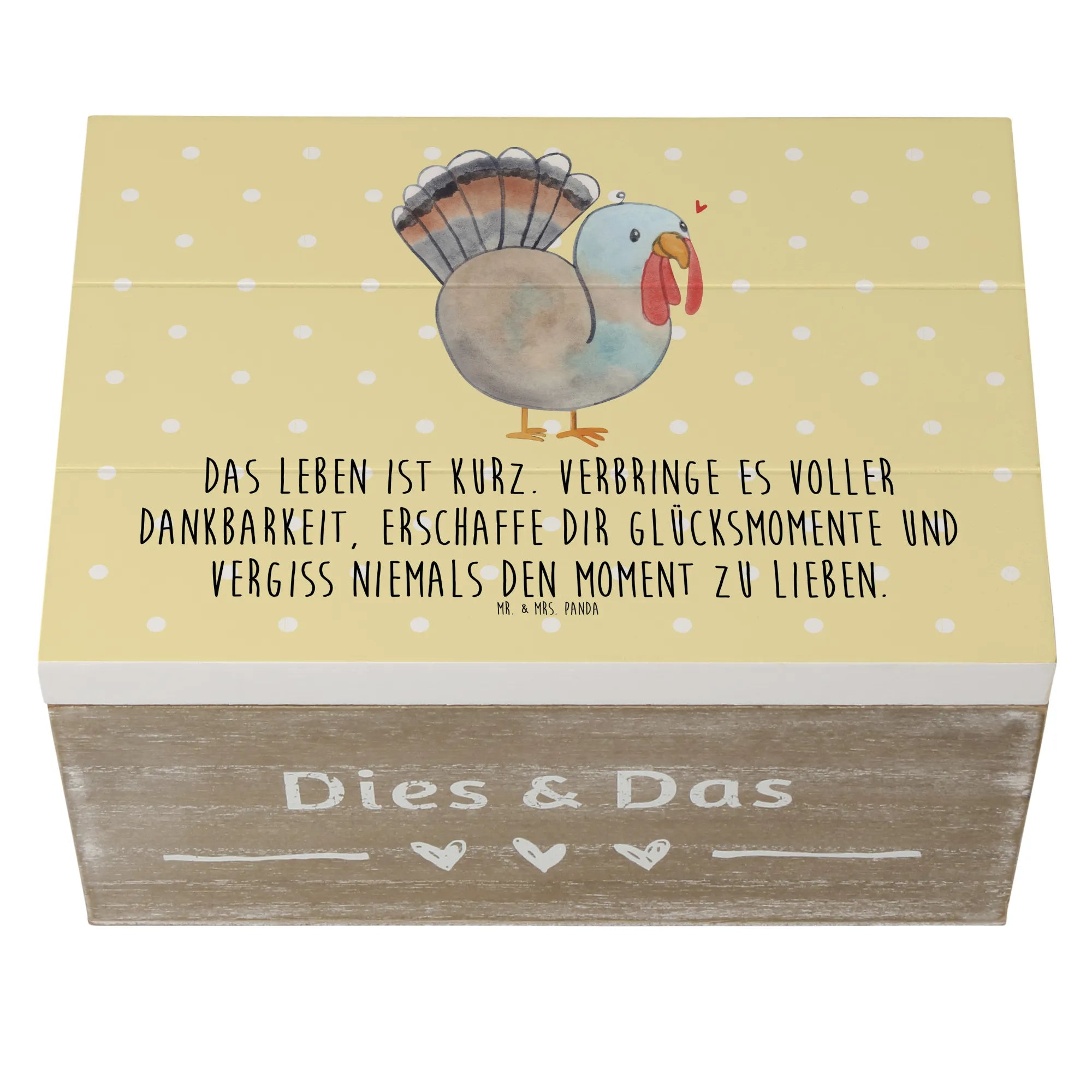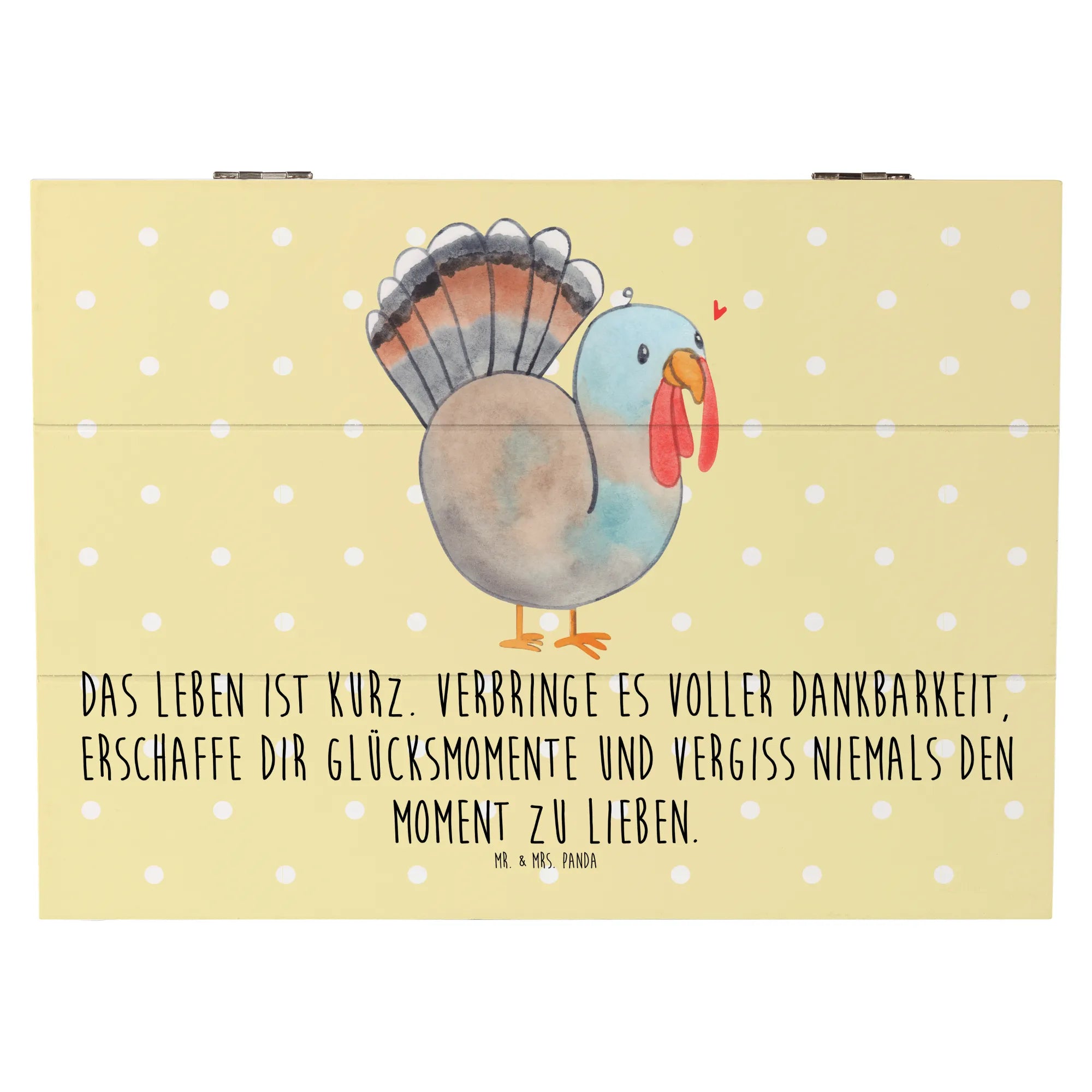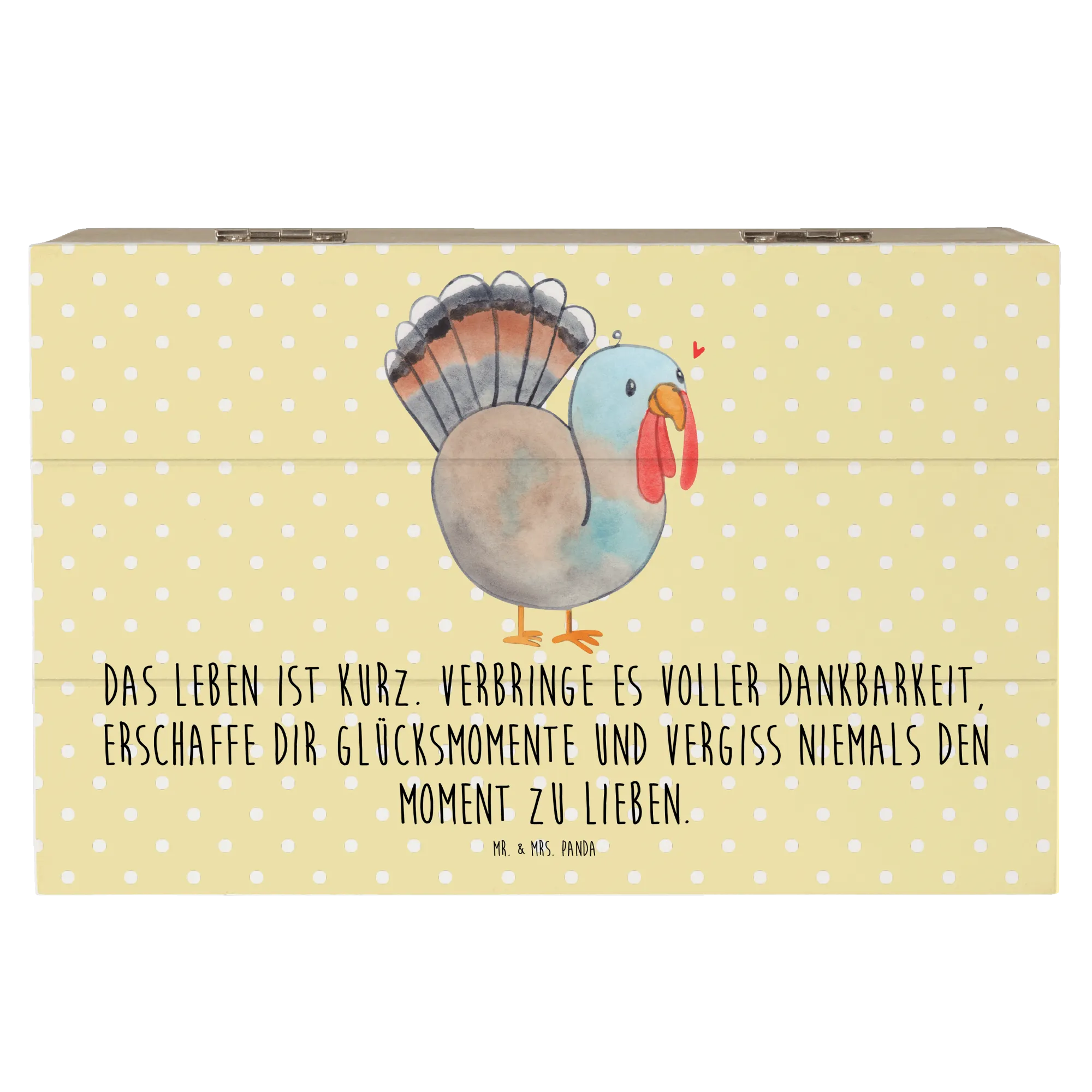 Wooden chest Thanksgiving Turkey - 22 x 15 cm - Yellow Pastel