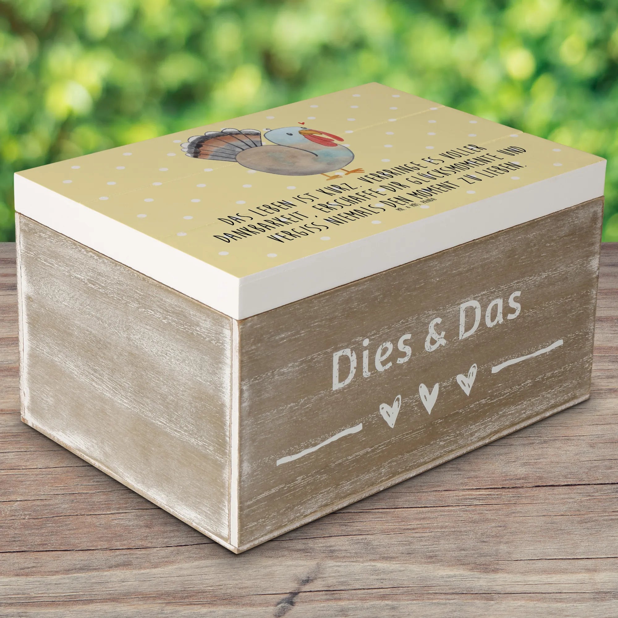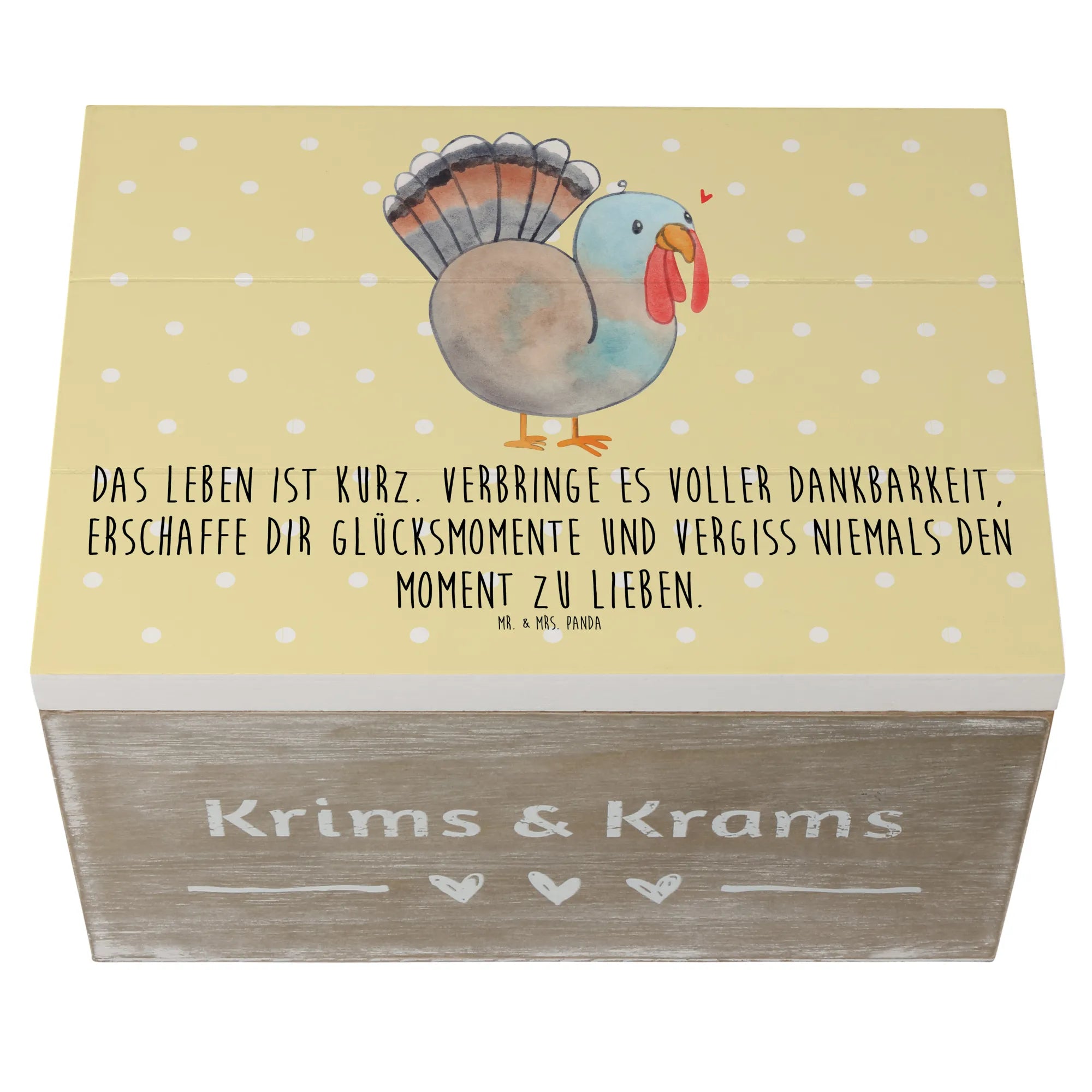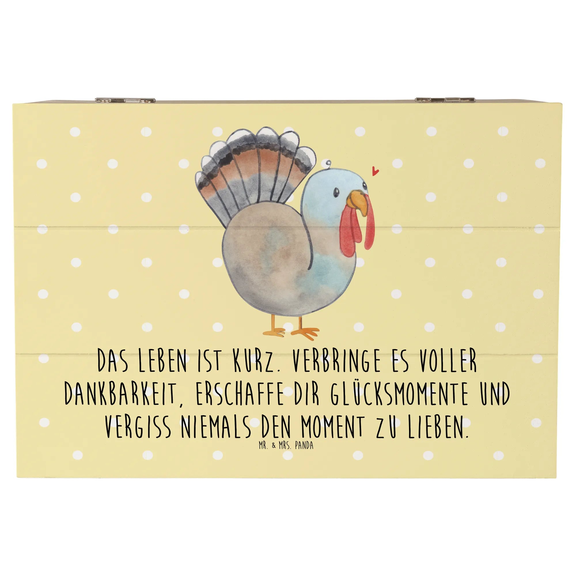 Wooden chest Thanksgiving Turkey - 22 x 15 cm - Yellow Pastel