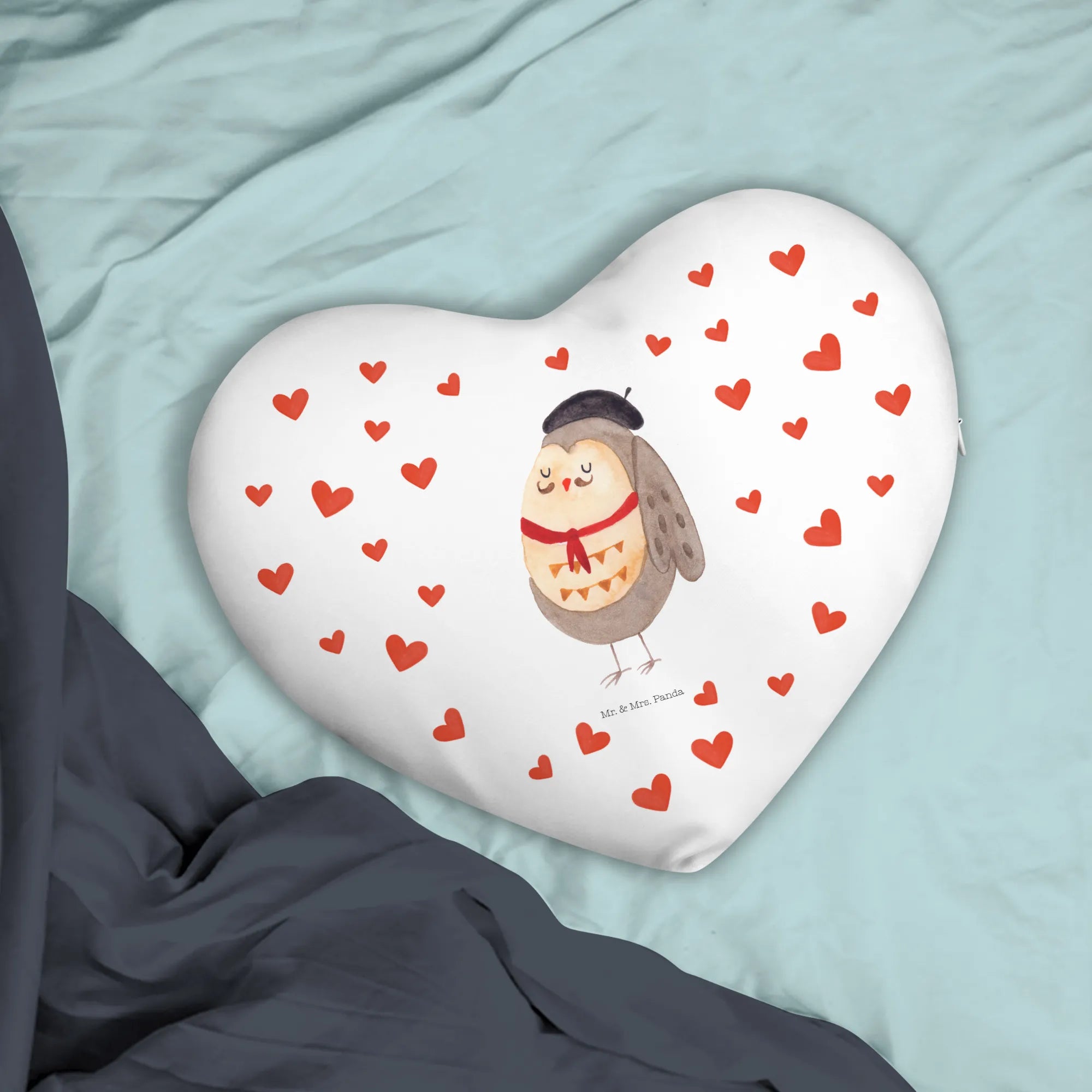 Perfect for owl lovers, this heart cushion combines the whimsical charm of forest animals with a touch of French flair. The design showcases a cute little owl, meticulously hand-drawn by Mrs. Panda in a watercolor style, wrapping your home in warmth and elegance. It’s not just about decoration; it's about adding a magical touch to your space. The premium super-soft microfiber material ensures that this cushion is not only visually appealing but also cozy to the touch, making it a perfect addition to any sofa, bed, or favorite reading chair.