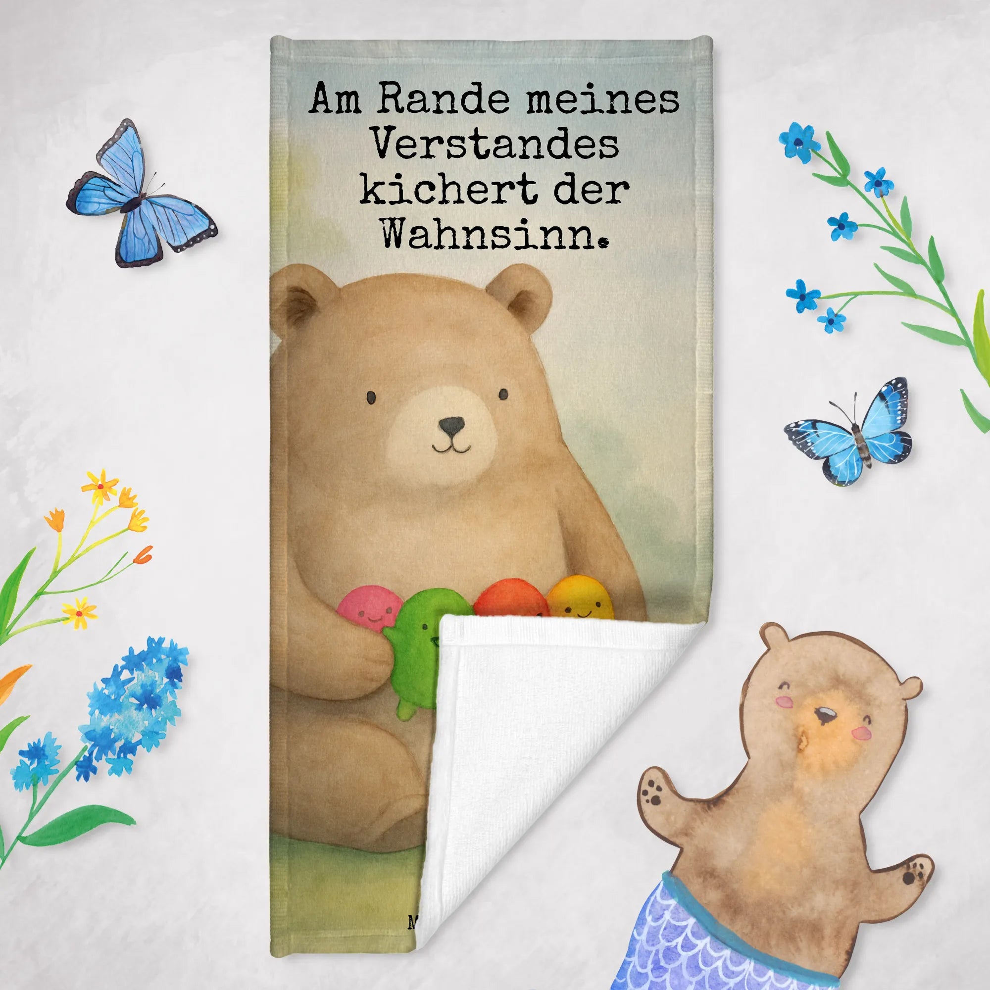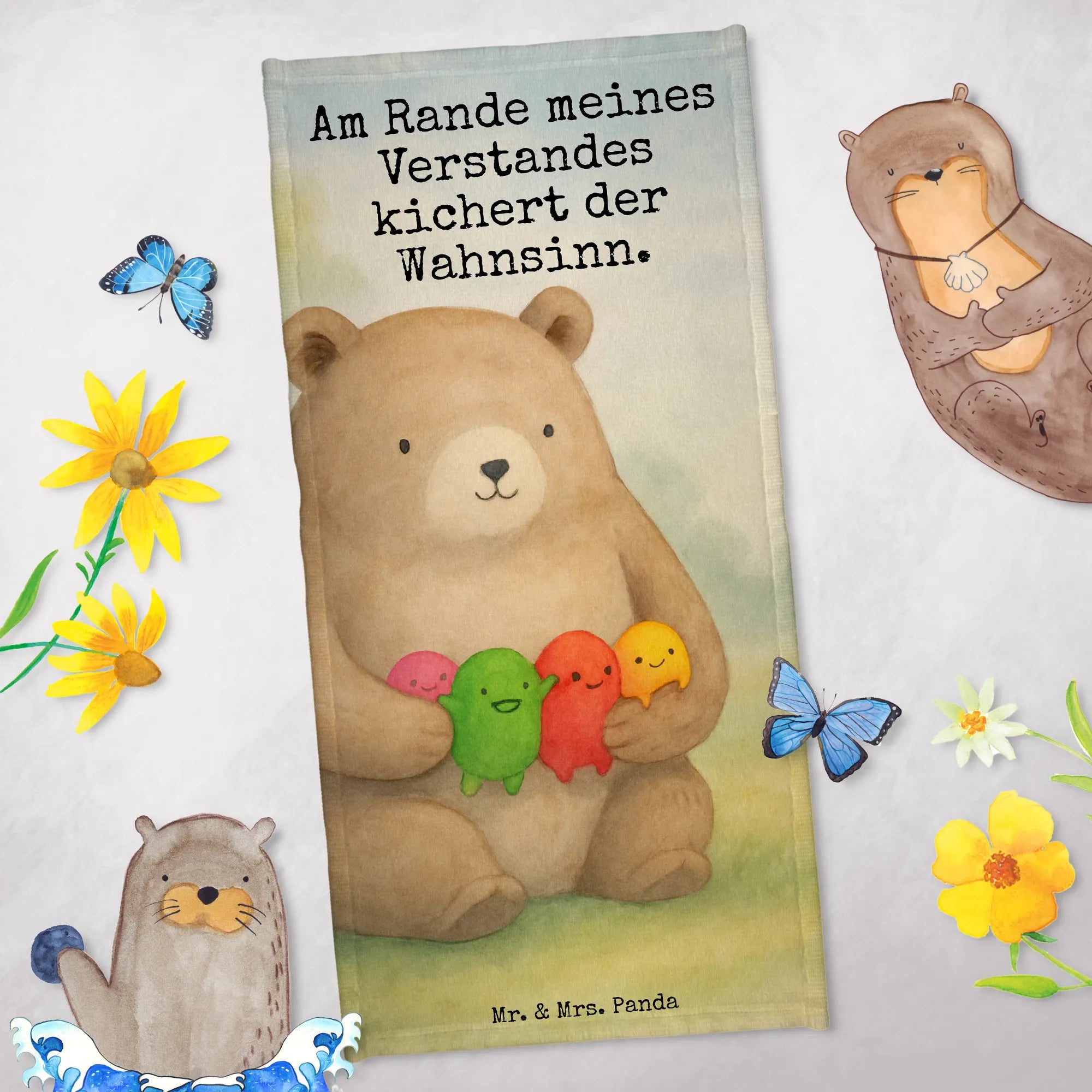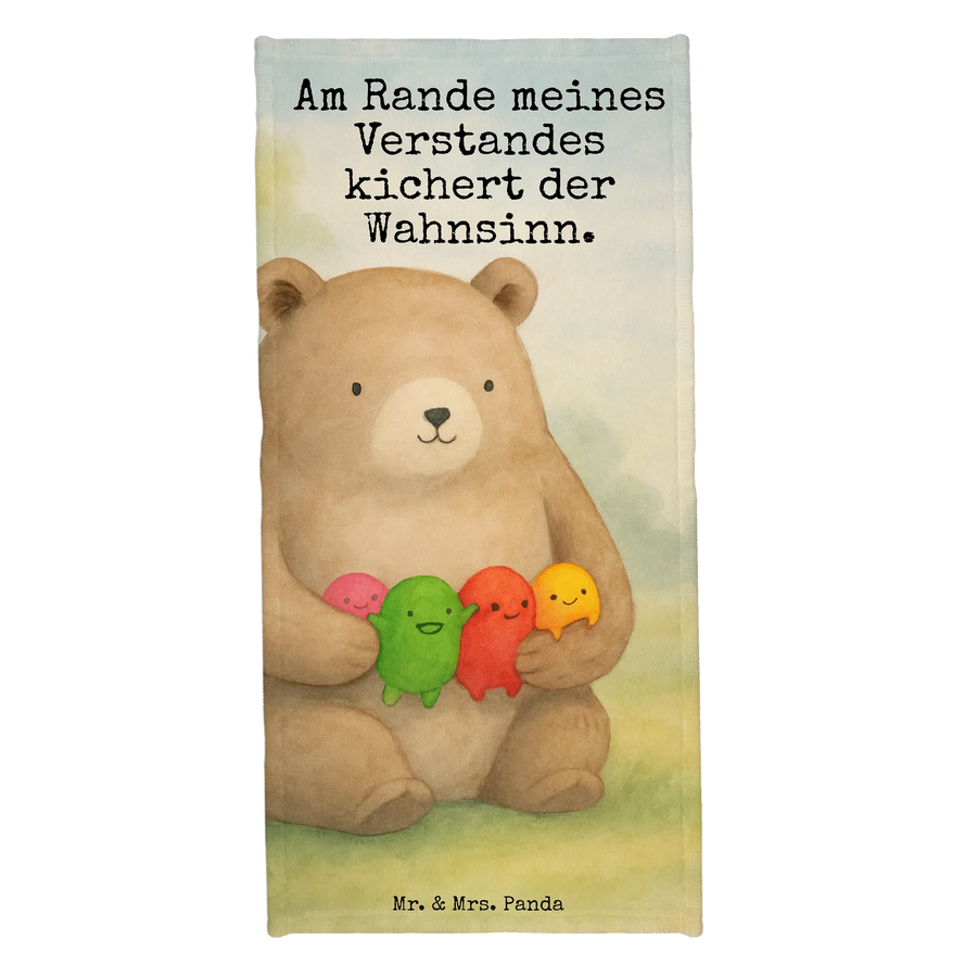 Welcome to the playful world of our bear, cheerfully juggling bright, happy bubbles filled with all sorts of emotions! Each bubble is a tribute to the delightful madness we experience every day. Our wise bear expresses it beautifully with the saying, 'Am Rande meines Verstandes kichert der Wahnsinn.' This motif encapsulates how chaotic moments can lead to extraordinary joy. It invites us to acknowledge our feelings without hesitation, and to celebrate even the craziest sides of ourselves. So let this charming bear remind you to dance through life’s ups and downs with a smile, welcoming every emotion that comes your way.