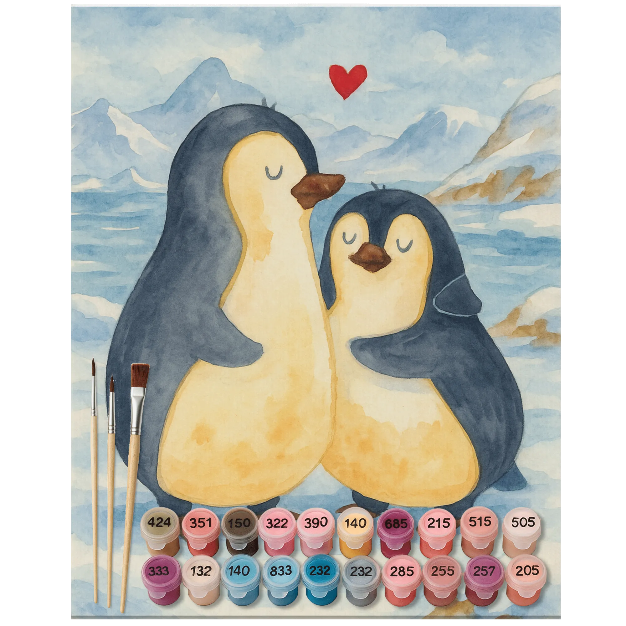 Paint by Numbers Penguin embrace Design - Ohne Rahmen - 24 Farben (Standard)