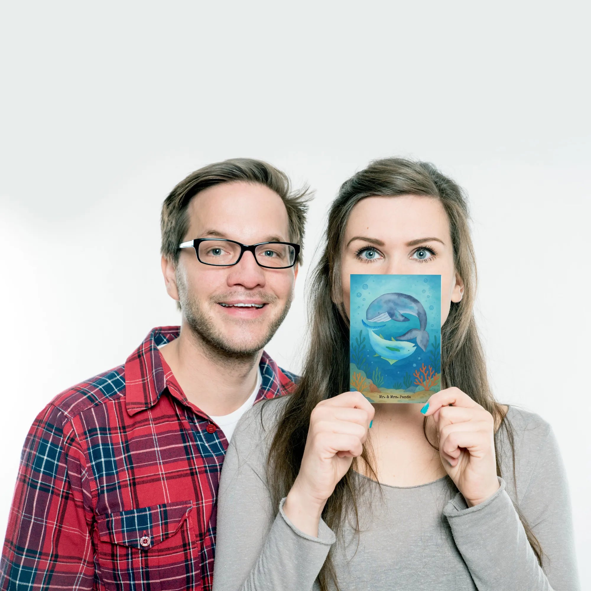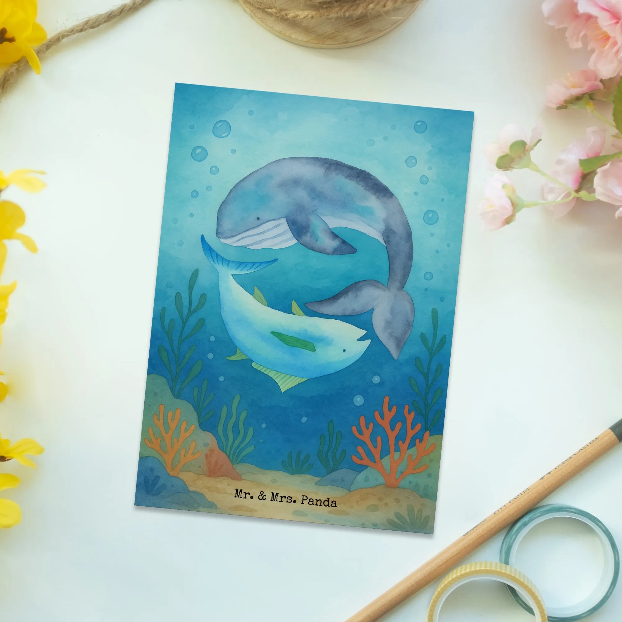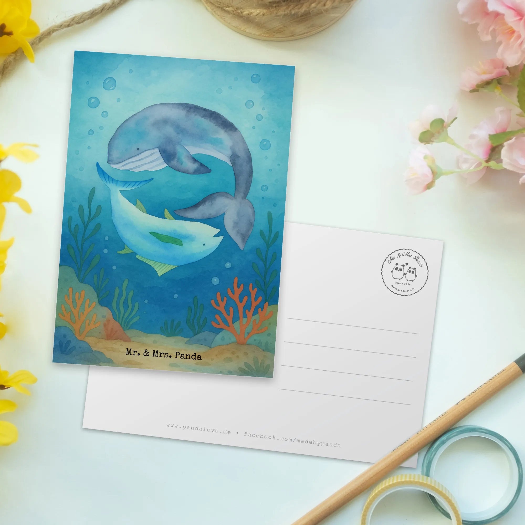 Postkarte Walfisch & Thunfisch – Small World Kollektion von Mr. & Mrs. Panda