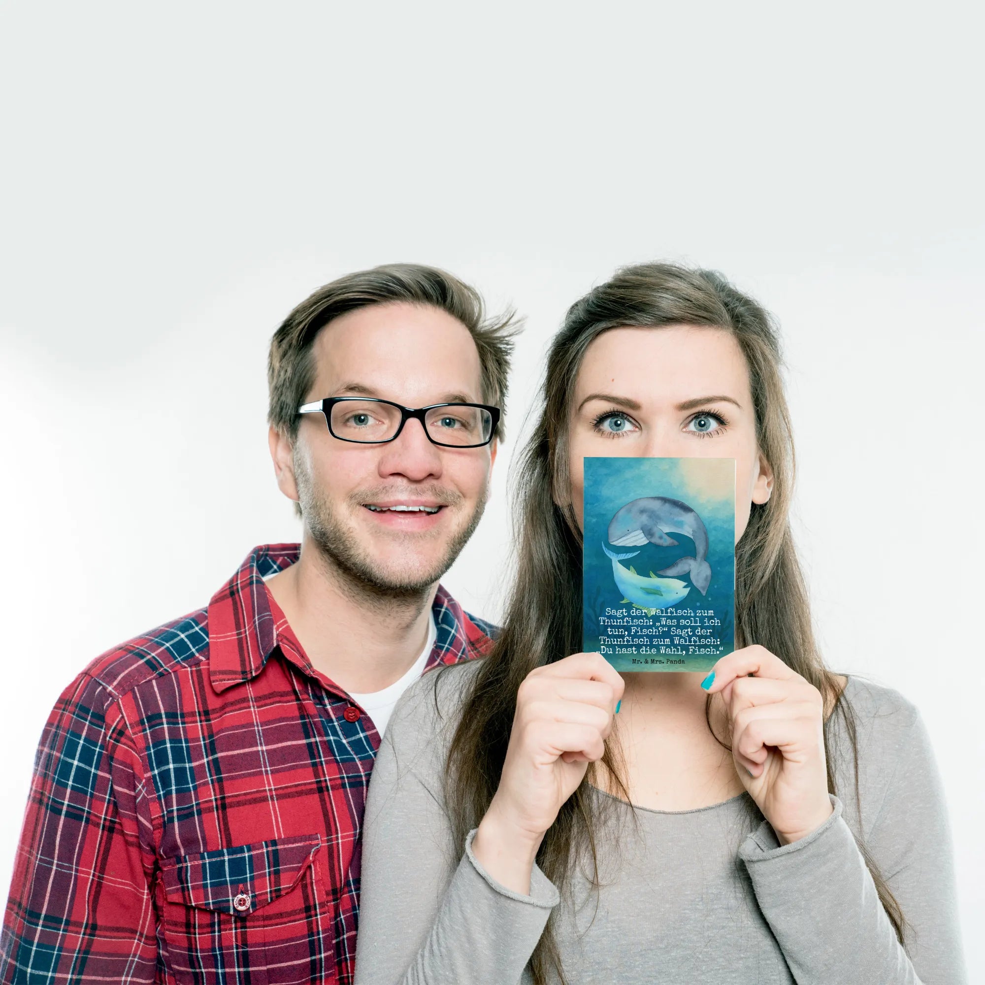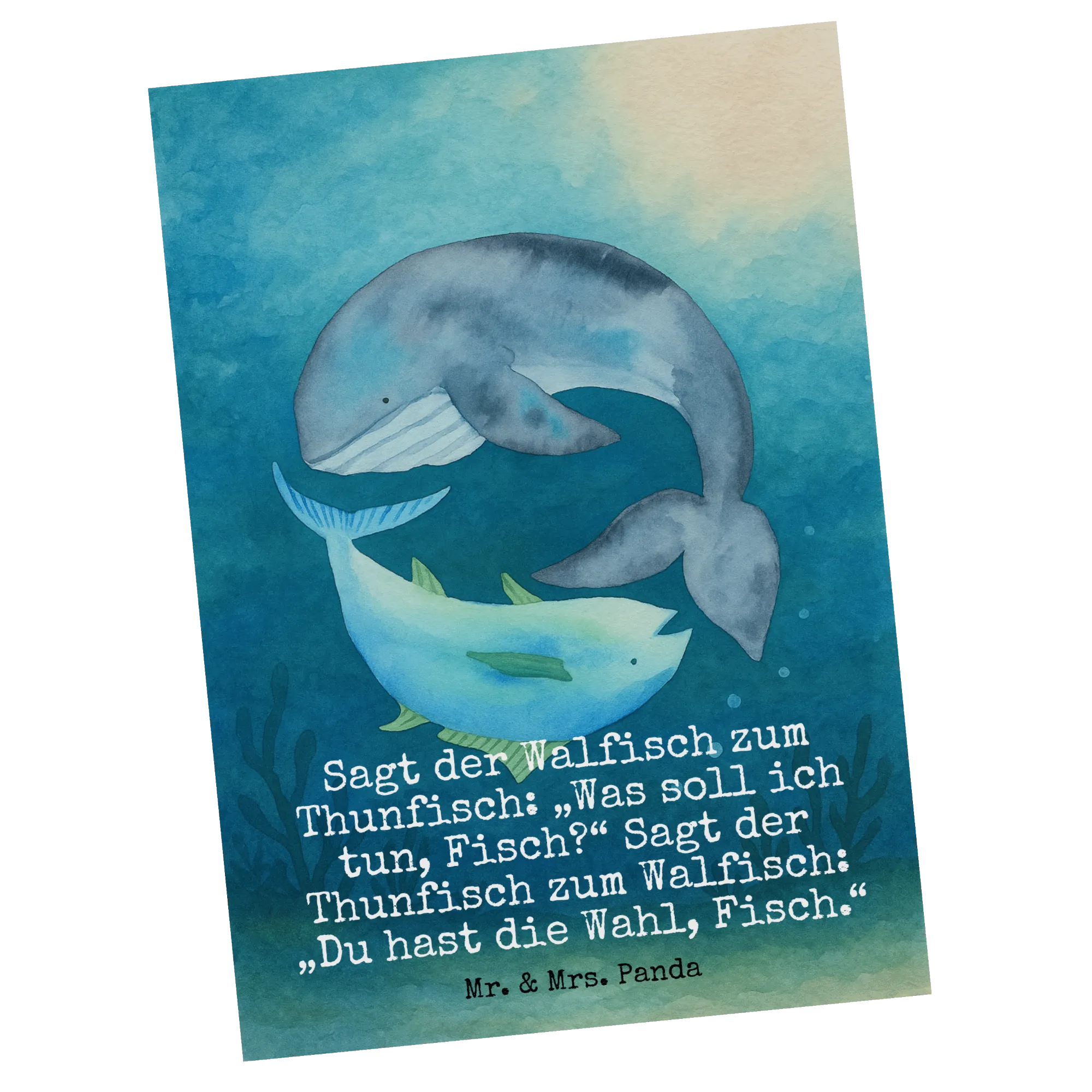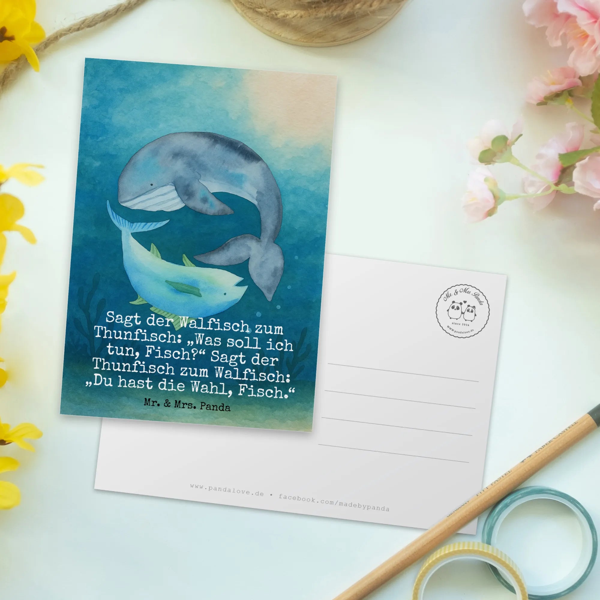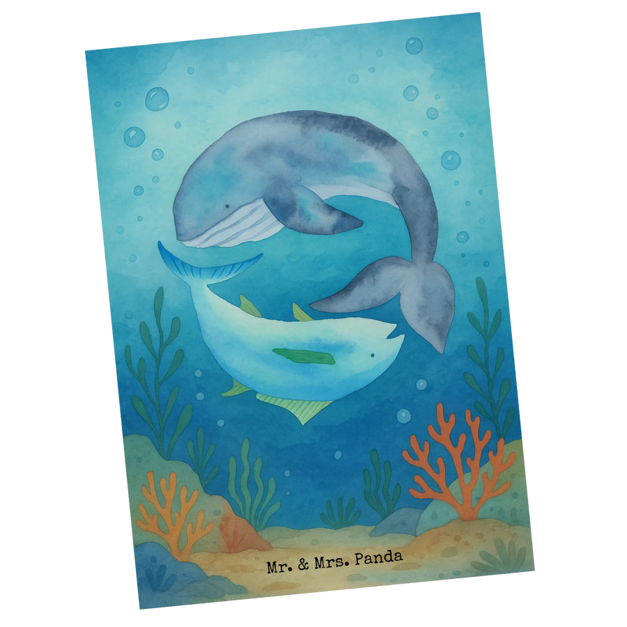 Postkarte Walfisch & Thunfisch – Small World Kollektion von Mr. & Mrs. Panda