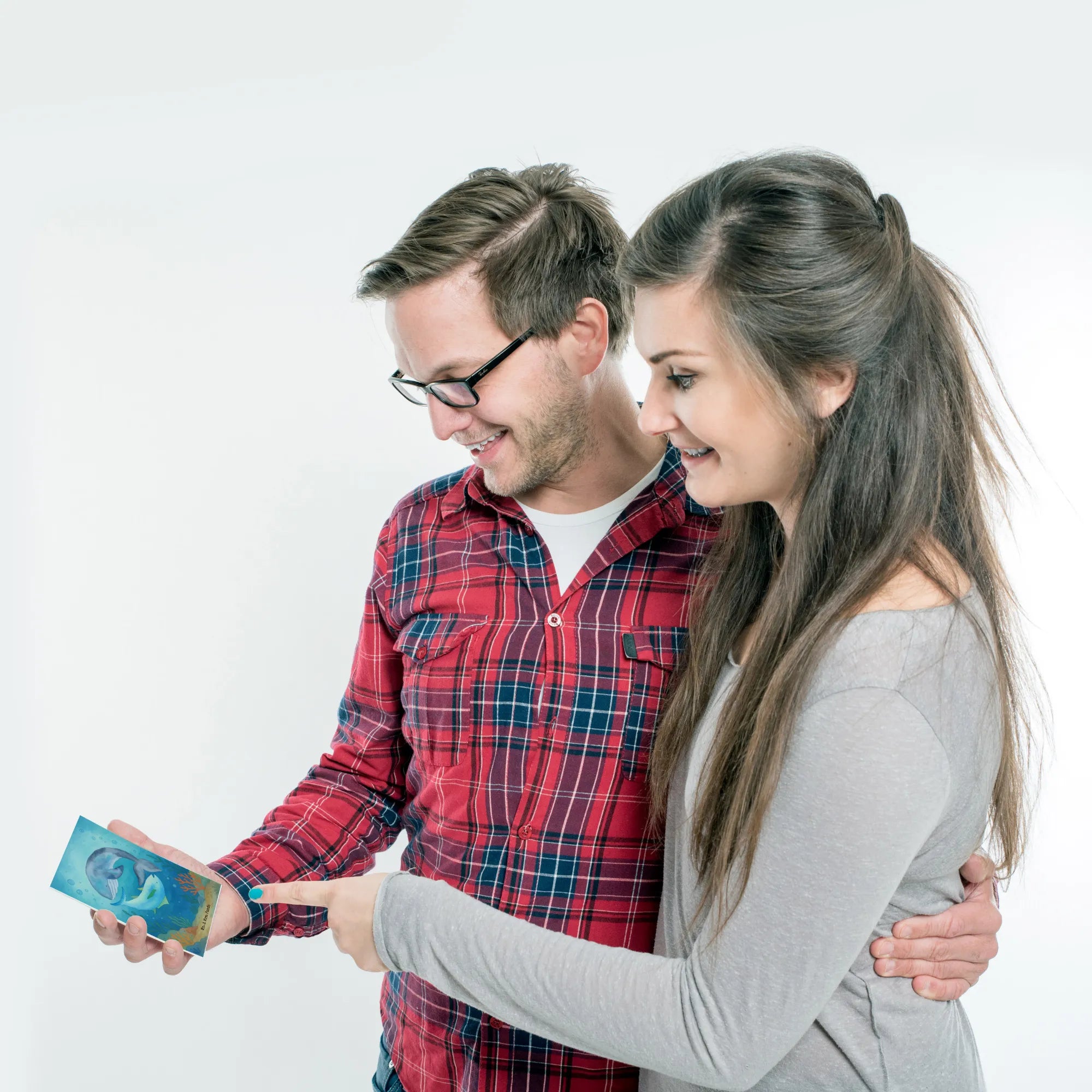 Diese bezaubernde Postkarte bringt Meereszauber direkt zu Dir nach Hause. Das Motiv zeigt einen freundlichen Walfisch und einen flinken Thunfisch, gezeichnet in der unverwechselbaren, liebevollen Aquarell-Handschrift von Mrs. Panda. Die Illustration steht für Freundschaft, Freiheit und gemeinsame Abenteuer und zaubert jedem Betrachter ein Lächeln ins Gesicht.