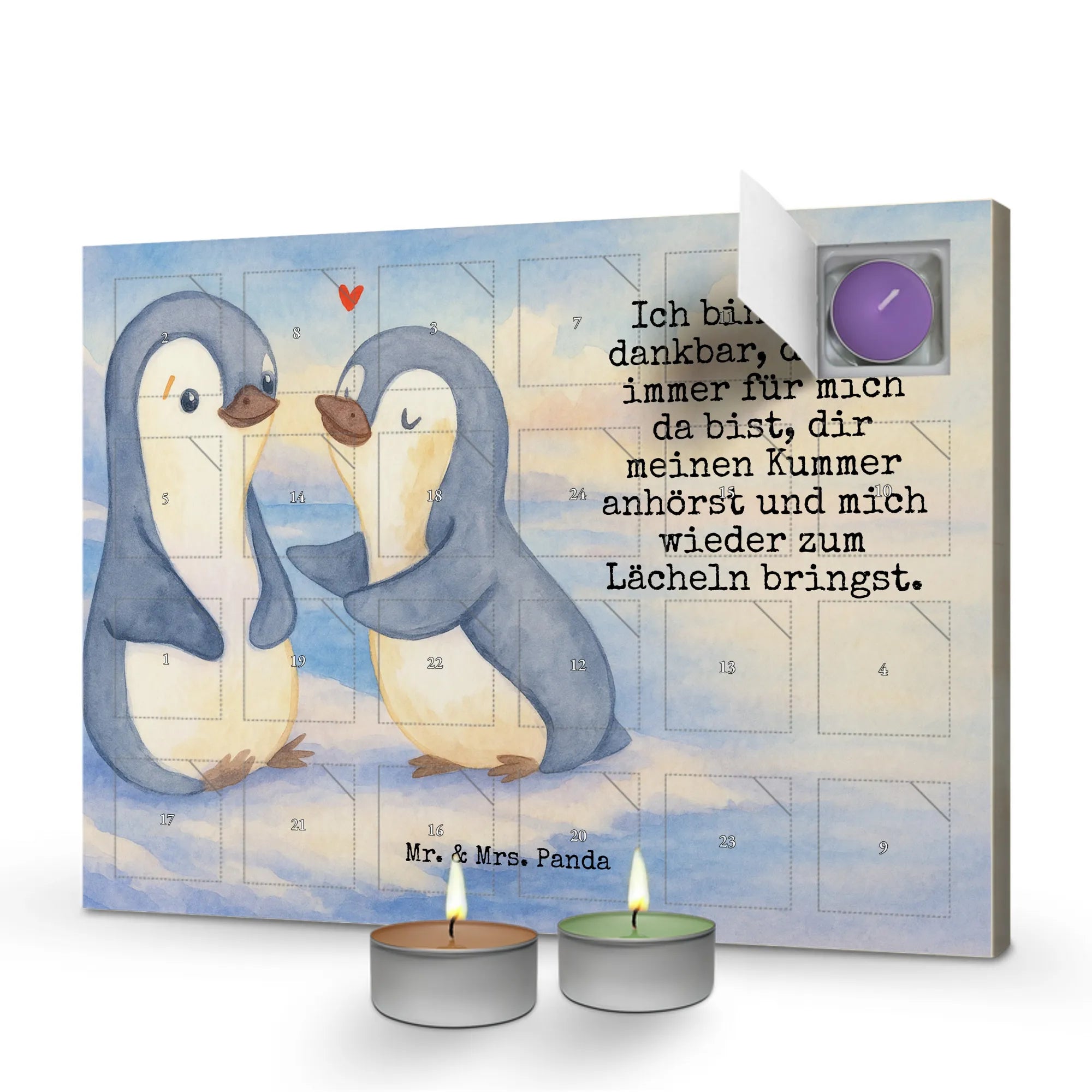 Let the enchanting comfort penguins find a special place in your heart and home. These lovable little creatures, leaning into each other, capture the essence of companionship and affection beautifully. Their gentle demeanor, framed in soft gray, pristine white, and a hint of warm yellow, evokes warmth and serenity. The saying, 'Ich bin dir so dankbar, dass du immer für mich da bist, dir meinen Kummer anhörst und mich wieder zum Lächeln bringst,' resonates with anyone who values the support of loved ones. Be it Valentine’s Day, a wedding anniversary, or any occasion that calls for a celebration of love, these penguins make a thoughtful gift that speaks volumes. Each day, let them remind you of the importance of being there for each other—the strength and comfort that such bonds bring to our lives.