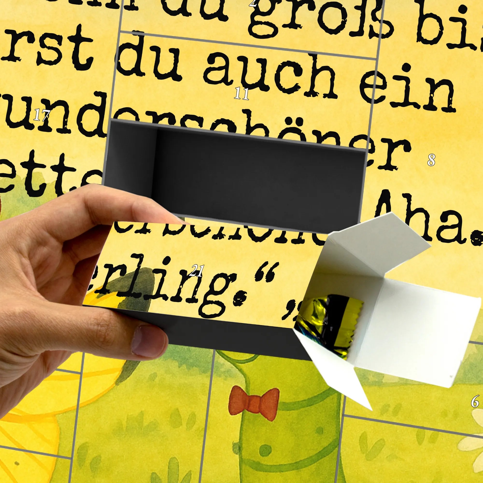 Verschenke eine Adventszeit voller kleiner Wunder, persönlicher Überraschungen und dem Mut, groß zu werden – genau wie die Raupe, die zum Schmetterling wird.