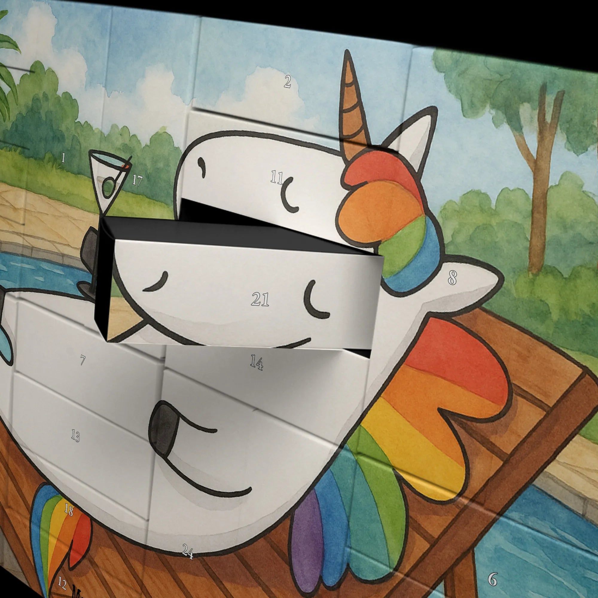 Verschenke Vorfreude, Humor und ein bisschen Glitzer – mit dem Einhorn Cocktail Adventskalender von Mr. & Mrs. Panda.