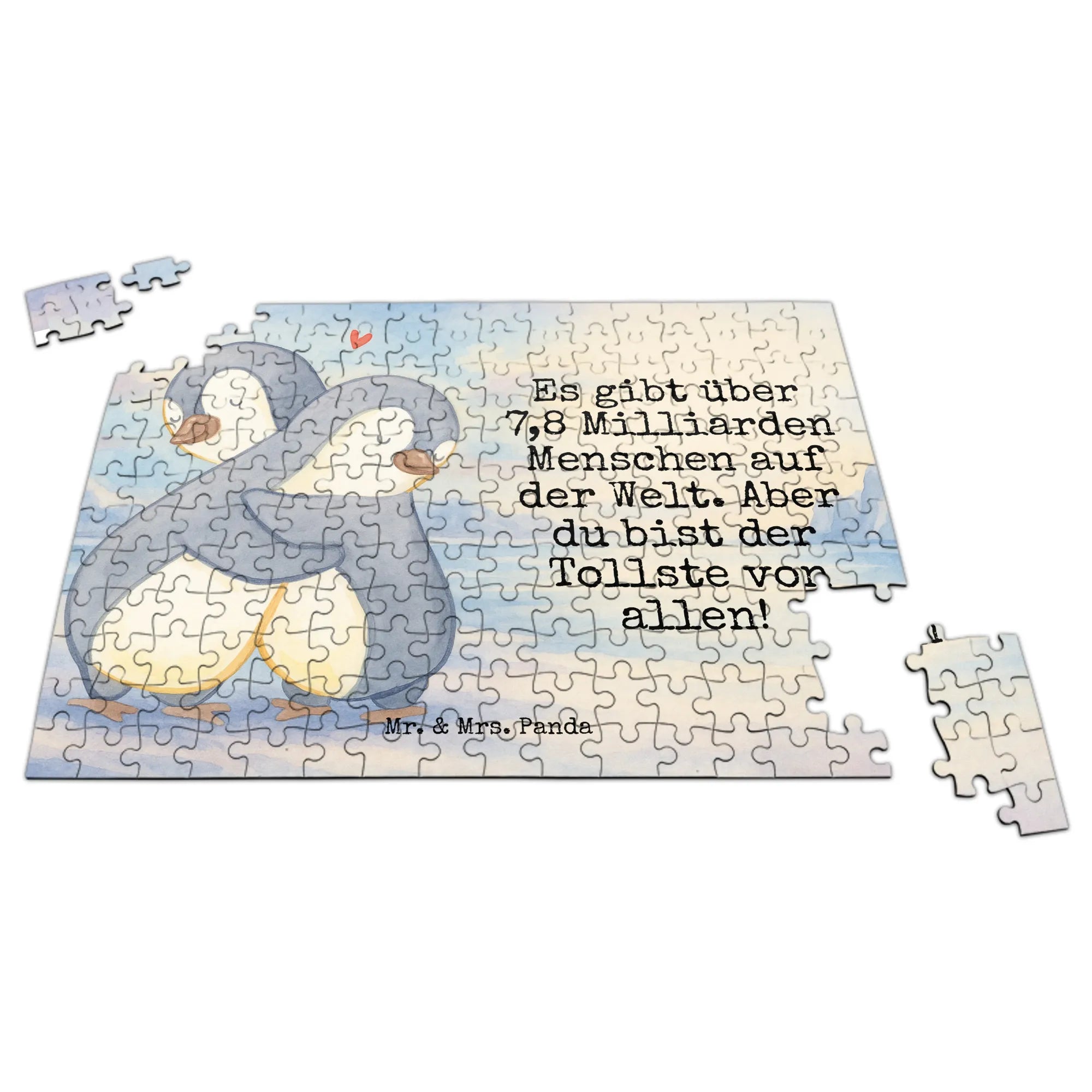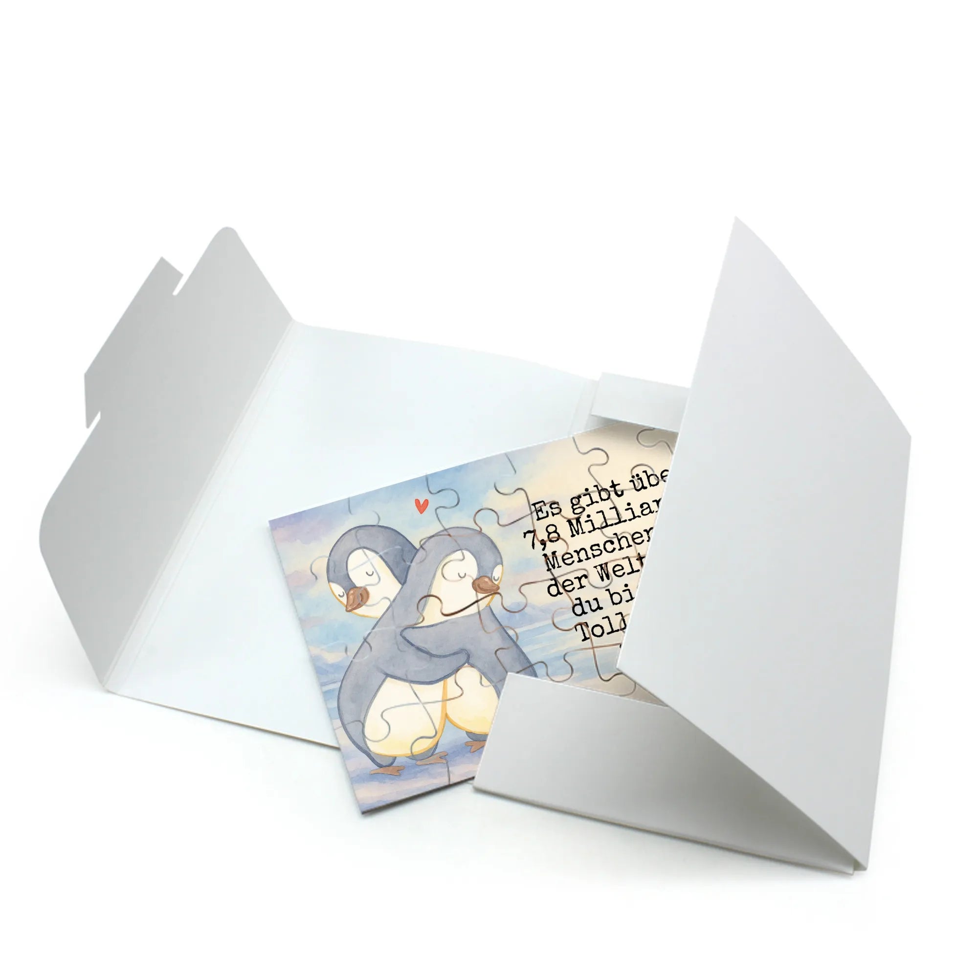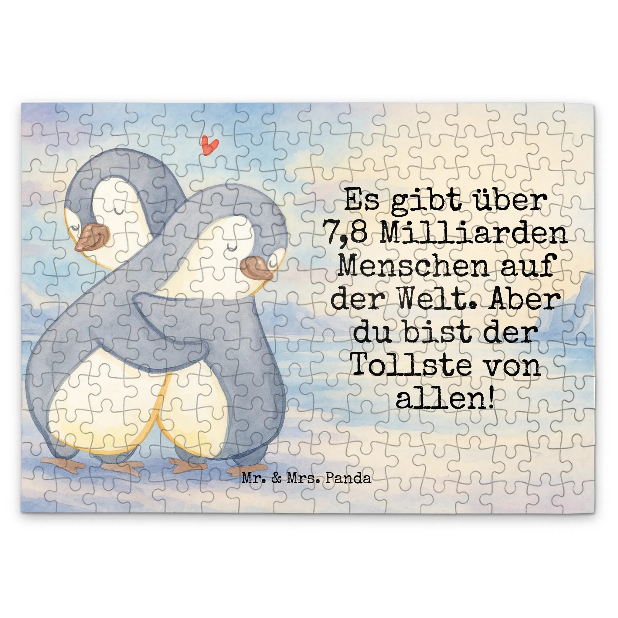 Dieses süße Puzzle aus der Liebe-Kollektion bringt Wärme ins Herz und Spaß an den Tisch. Auf dem liebevoll gestalteten Motiv kuscheln zwei Pinguine eng beieinander, ein rotes Herz schwebt über ihnen – ein Bild von Geborgenheit und tiefer Verbundenheit. Der niedliche Spruch „Es gibt über 7,8 Milliarden Menschen auf der Welt. Aber du bist der Tollste von allen!“ macht das Ganze wunderbar persönlich.