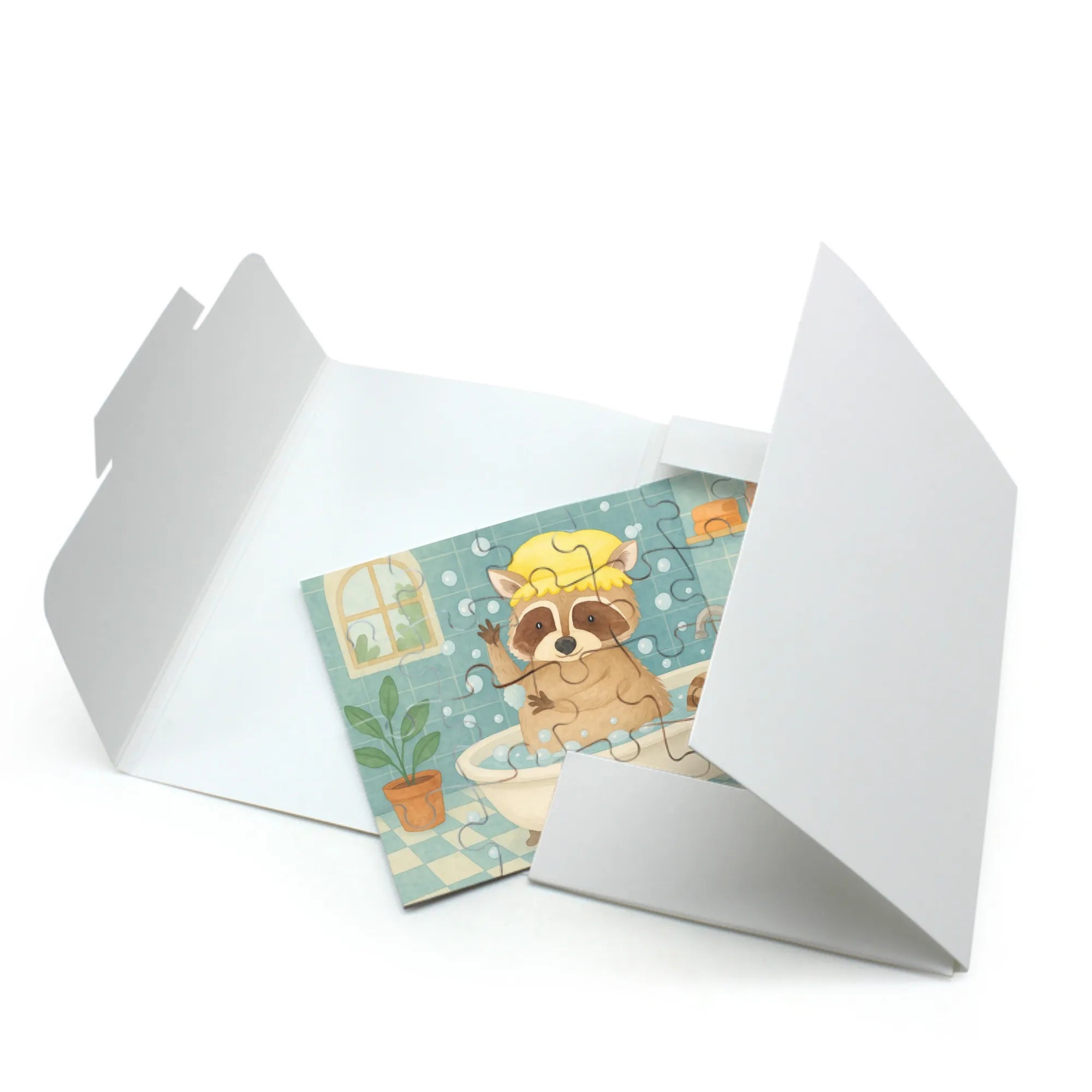 Puzzle Waschbär Design Puzzle, Tiermotive, Gute Laune, lustige Sprüche, Tiere, Waschbär, Tagträumen, Plan, Fröhlich, waschen, Seifenblasen