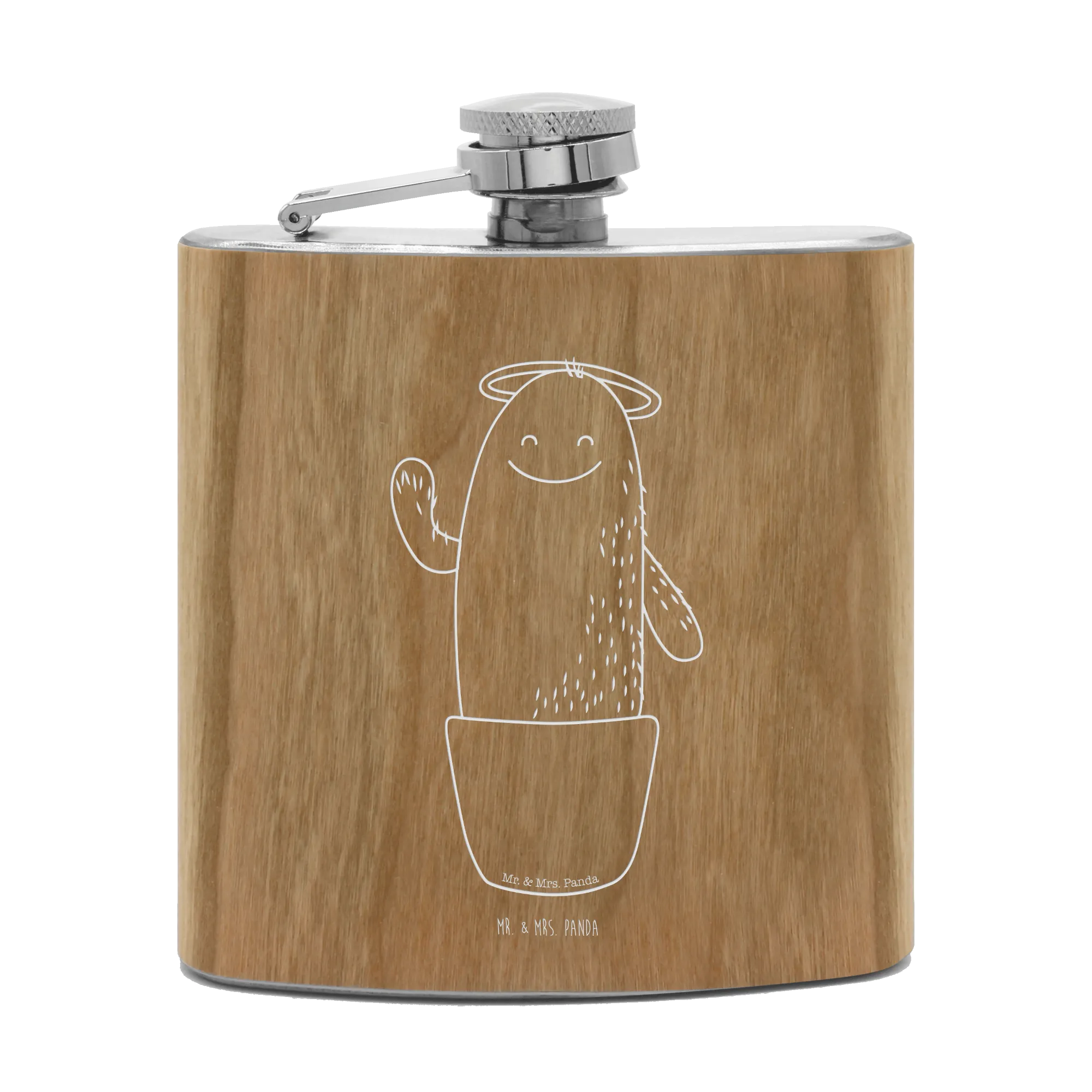 Introducing the delightful Mr. & Mrs. Panda Hipflask, a practical and high-quality stainless steel flask beautifully adorned with the charming "Cactus Holy" motif from our exclusive Cactus Collection. This isn't just any flask; it's a playful companion designed to bring a smile to your face!