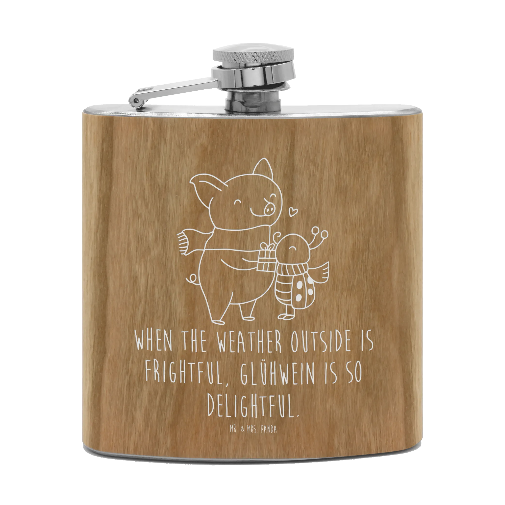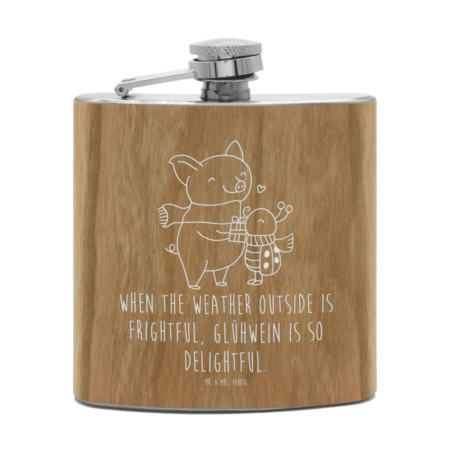 Introducing the Toasty Pig Smörle motif, where happiness meets cozy warmth. Imagine this delightful little pig, wrapped in a cheerful blue scarf adorned with playful polka dots, cradling a steaming cup of Glühwein. Beside him, the charming ladybug, dressed in a whimsical striped green scarf, gazes upwards with a twinkle of joy. Their friendship shines through in the air, encapsulated by a delicate heart floating above them. This scene embodies the spirit of winter, full of laughter and warmth; and just like our motto says, 'When the weather outside is frightful, Glühwein is so delightful.' Whether you're warming up by the fire or sharing a hearty laugh with friends, this design is perfect for every Glühwein lover, making it an unforgettable gift that radiates love and comfort.