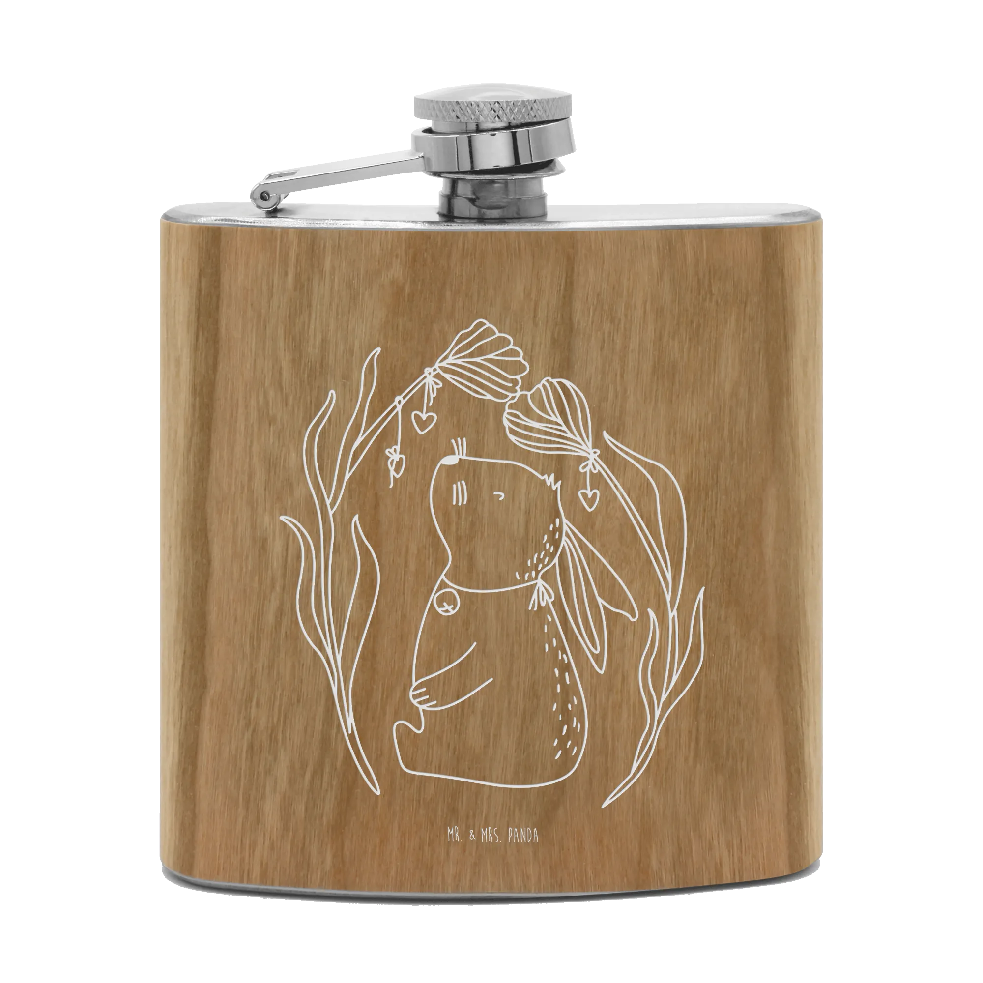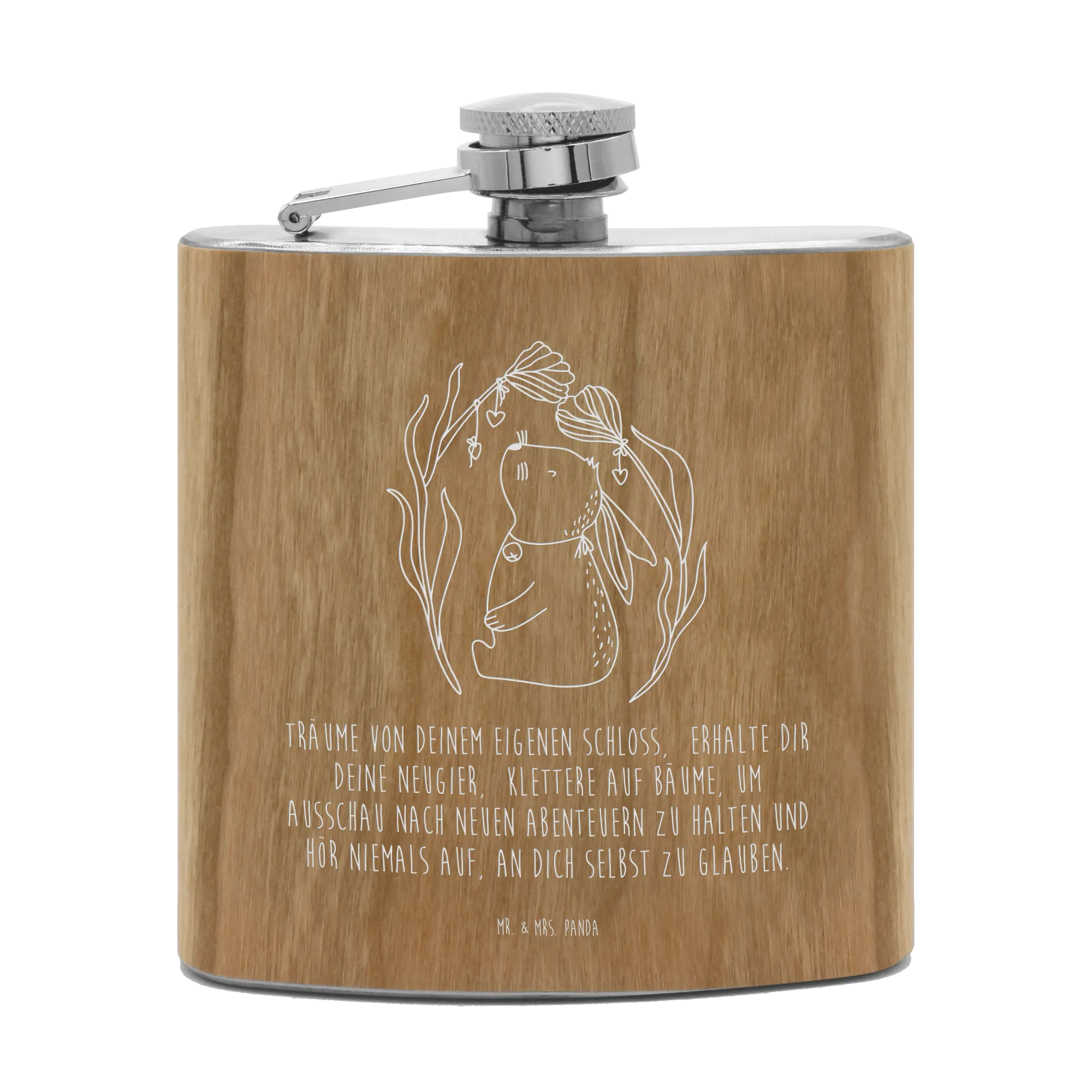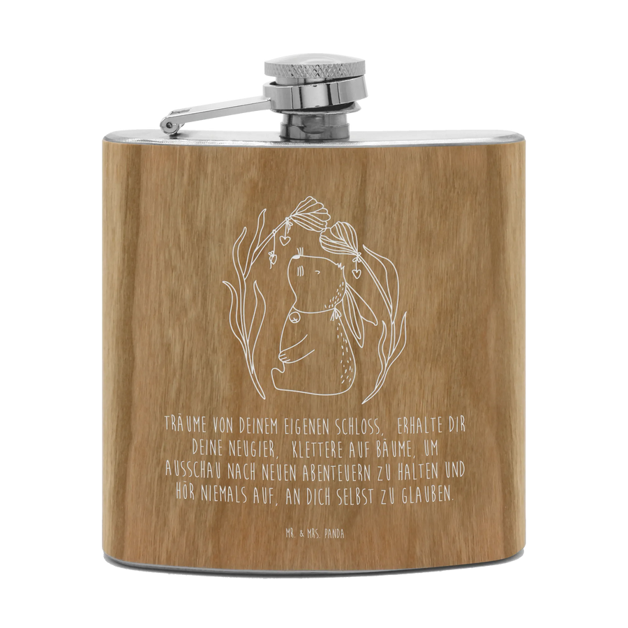 Discover the Mr. & Mrs. Panda Hipflask, the ultimate blend of style and practicality! Constructed from high-grade stainless steel and sleek wood laminate, this hipflask offers a generous capacity of 150 ml (5 oz). Compactly measuring 109 mm (4 inch) in height, 93 mm (4 inch) in width, and 22 mm (1 inch) in depth, it's perfect for your adventures. Adorned with lovely engravings and playful sayings, this flask is perfect for a night out or a nature walk. Lightweight and easy to grip, it features a secure screw cap for your peace of mind. To keep your flask looking great, avoid the dishwasher and simply rinse it with hot water! Whether gifting or keeping, this Mr. & Mrs. Panda Hipflask is sure to impress!