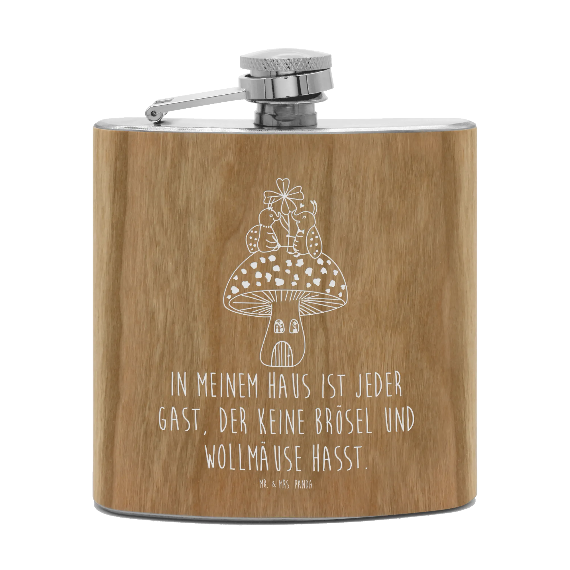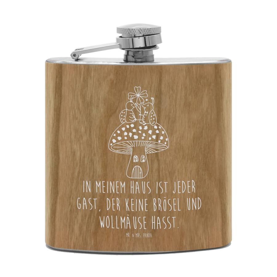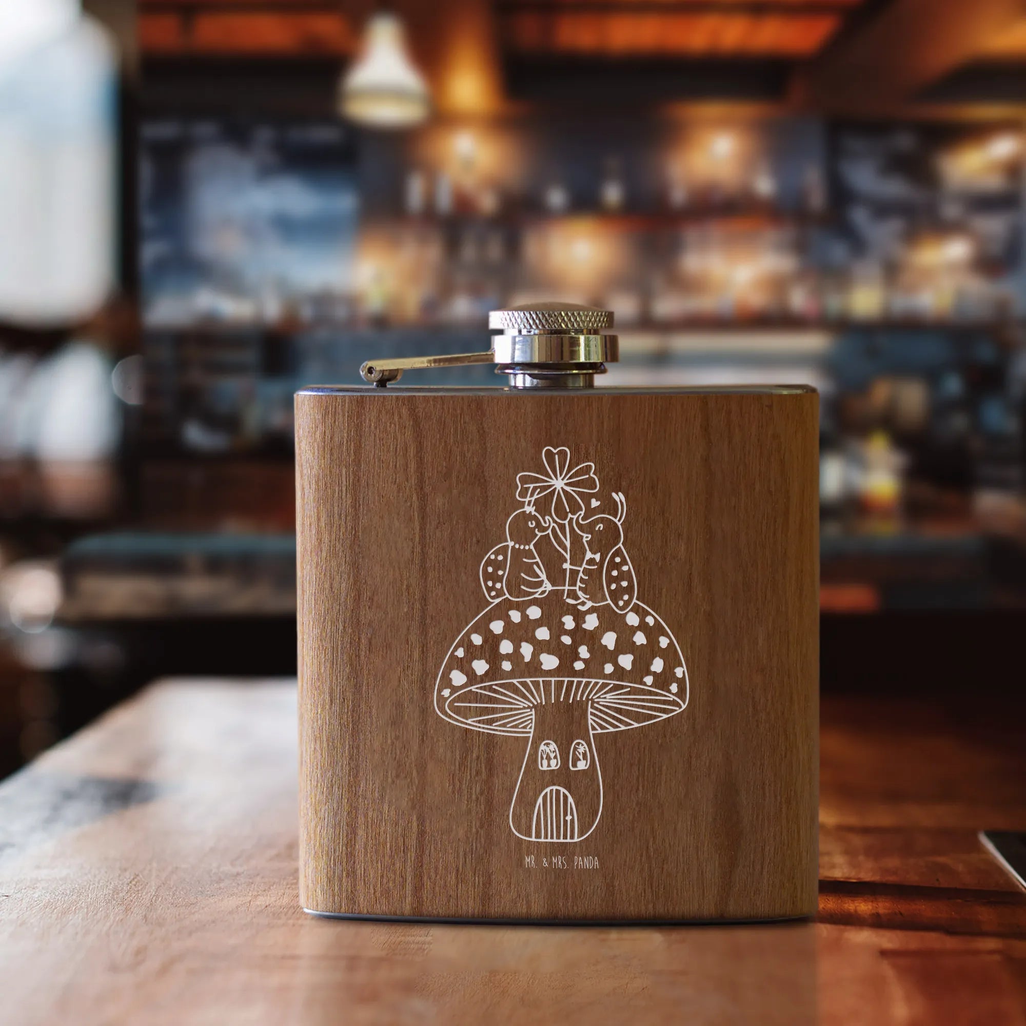 Meet the Mr. & Mrs. Panda Hipflask—your new favorite accessory for all occasions! Crafted from premium stainless steel and adorned with a chic wood laminate, this flask can hold 150 ml (5 oz) of your favorite beverage. At 109 mm (4 inch) tall, 93 mm (4 inch) wide, and 22 mm (1 inch) thick, it’s designed for convenience and ease of transport. Featuring delightful engravings of whimsical quotes and cute motifs, this flask will make a wonderful gift for friends. It's the perfect companion for a bachelor or bachelorette party, or for outdoor adventures like hiking! Light and practical, the hipflask fits nicely in your hand and is fitted with a secure screw cap. Remember, it’s not dishwasher safe, so just swish it out with hot water for a quick clean! Elevate your drink game with the stylish Mr. & Mrs. Panda Hipflask!