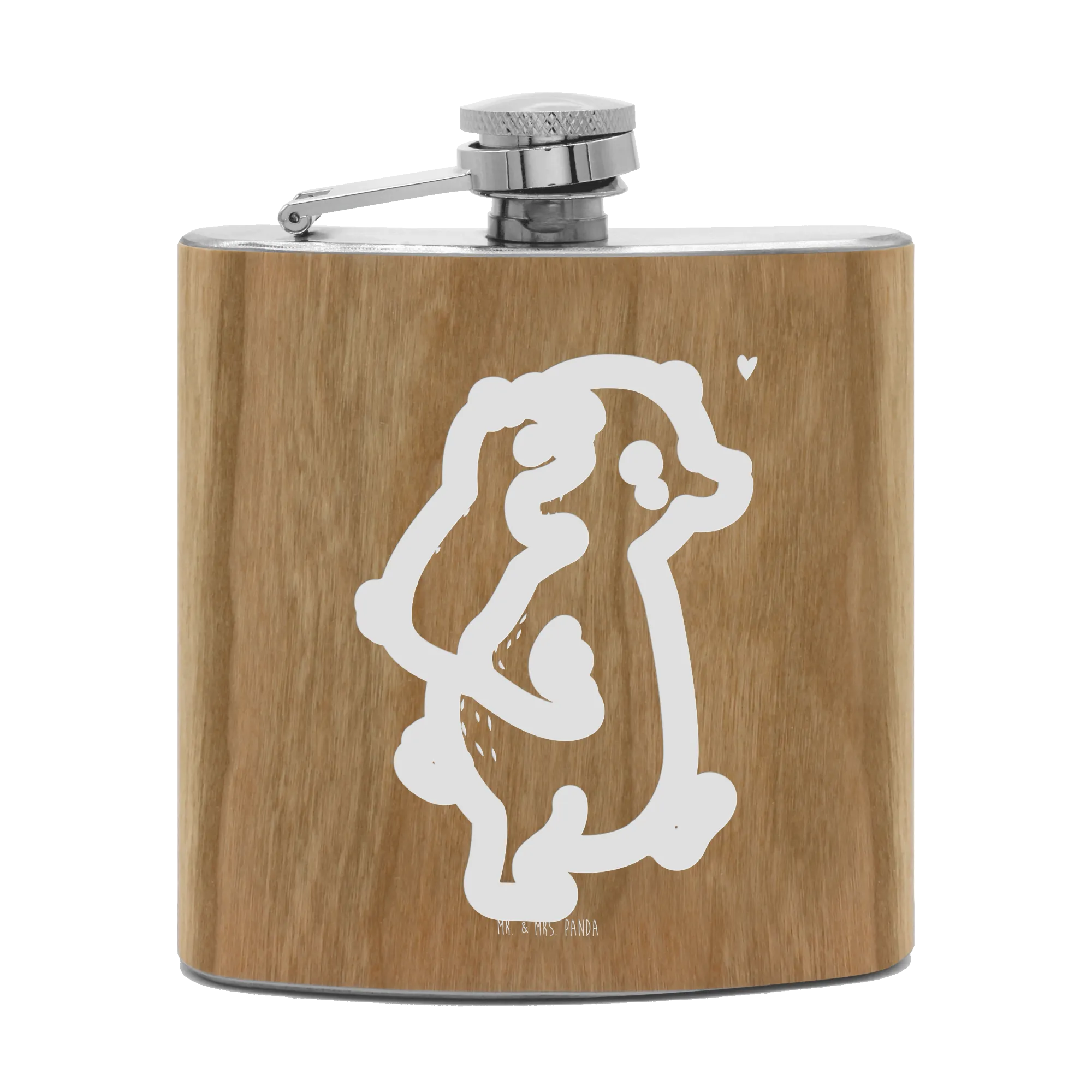 Meet the Mr. & Mrs. Panda Hipflask—your new favorite accessory for all occasions! Crafted from premium stainless steel and adorned with a chic wood laminate, this flask can hold 150 ml (5 oz) of your favorite beverage. At 109 mm (4 inch) tall, 93 mm (4 inch) wide, and 22 mm (1 inch) thick, it’s designed for convenience and ease of transport. Featuring delightful engravings of whimsical quotes and cute motifs, this flask will make a wonderful gift for friends. It's the perfect companion for a bachelor or bachelorette party, or for outdoor adventures like hiking! Light and practical, the hipflask fits nicely in your hand and is fitted with a secure screw cap. Remember, it’s not dishwasher safe, so just swish it out with hot water for a quick clean! Elevate your drink game with the stylish Mr. & Mrs. Panda Hipflask!