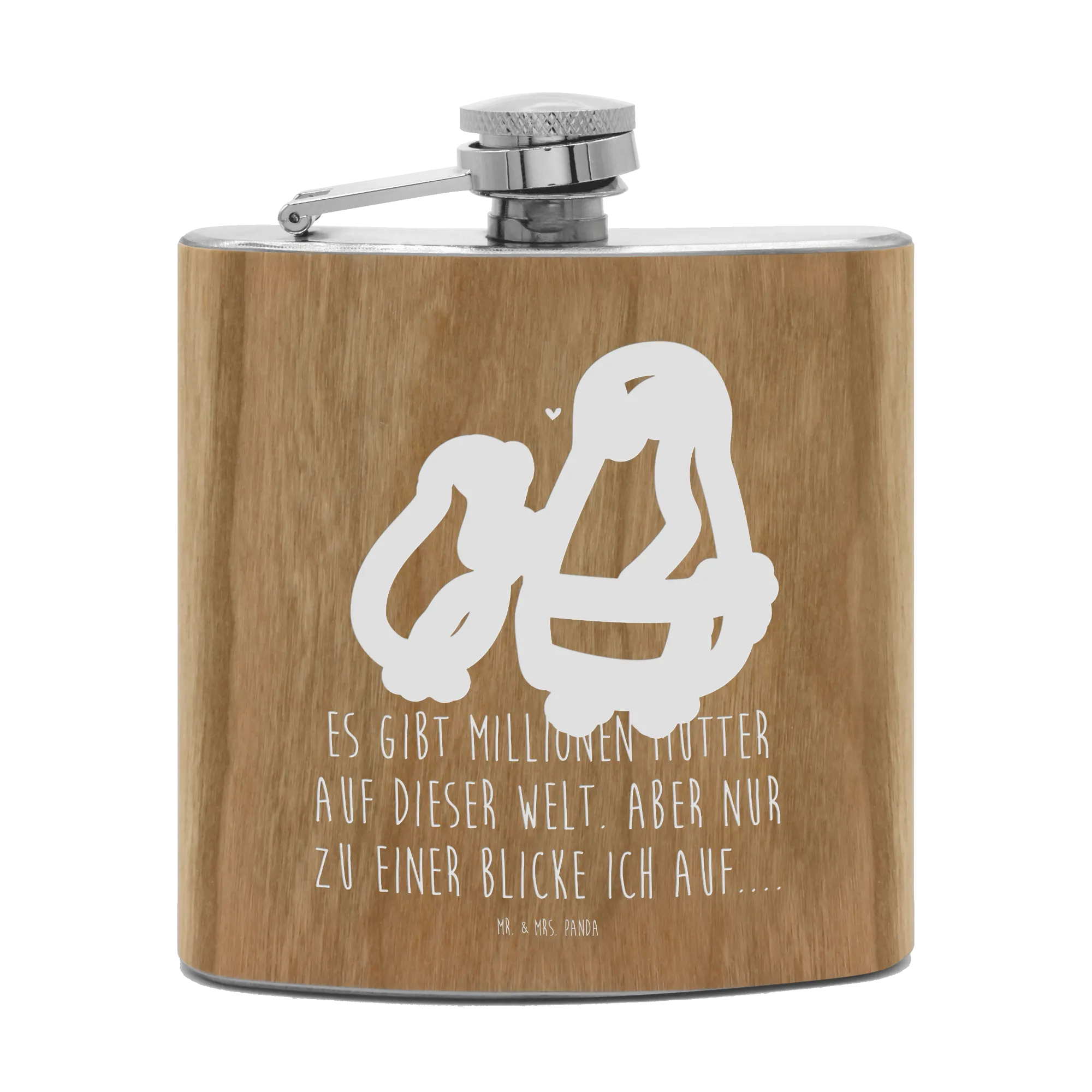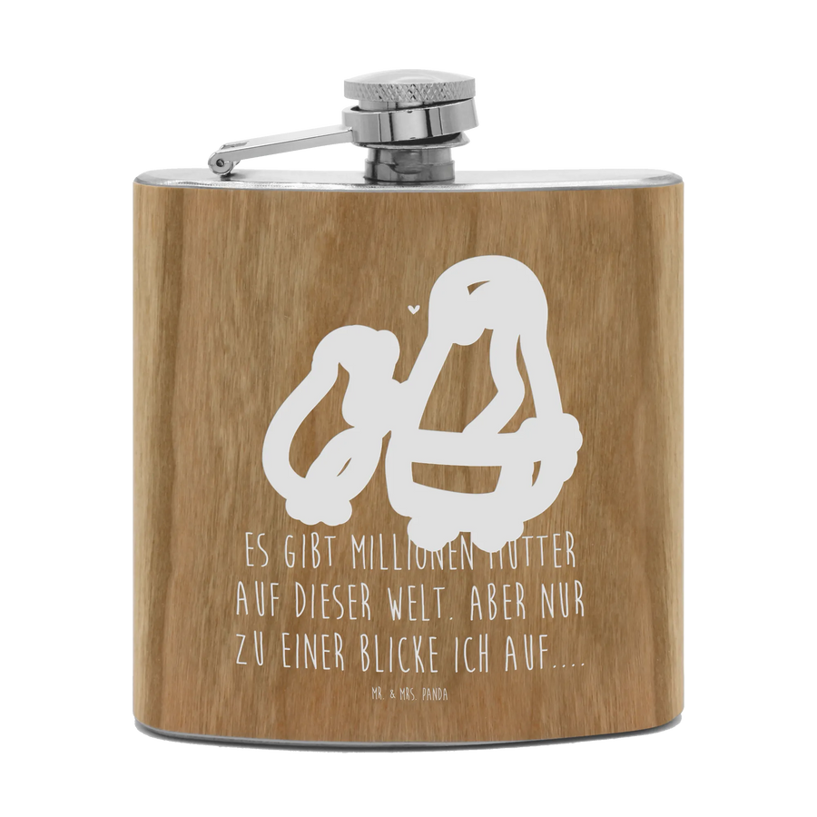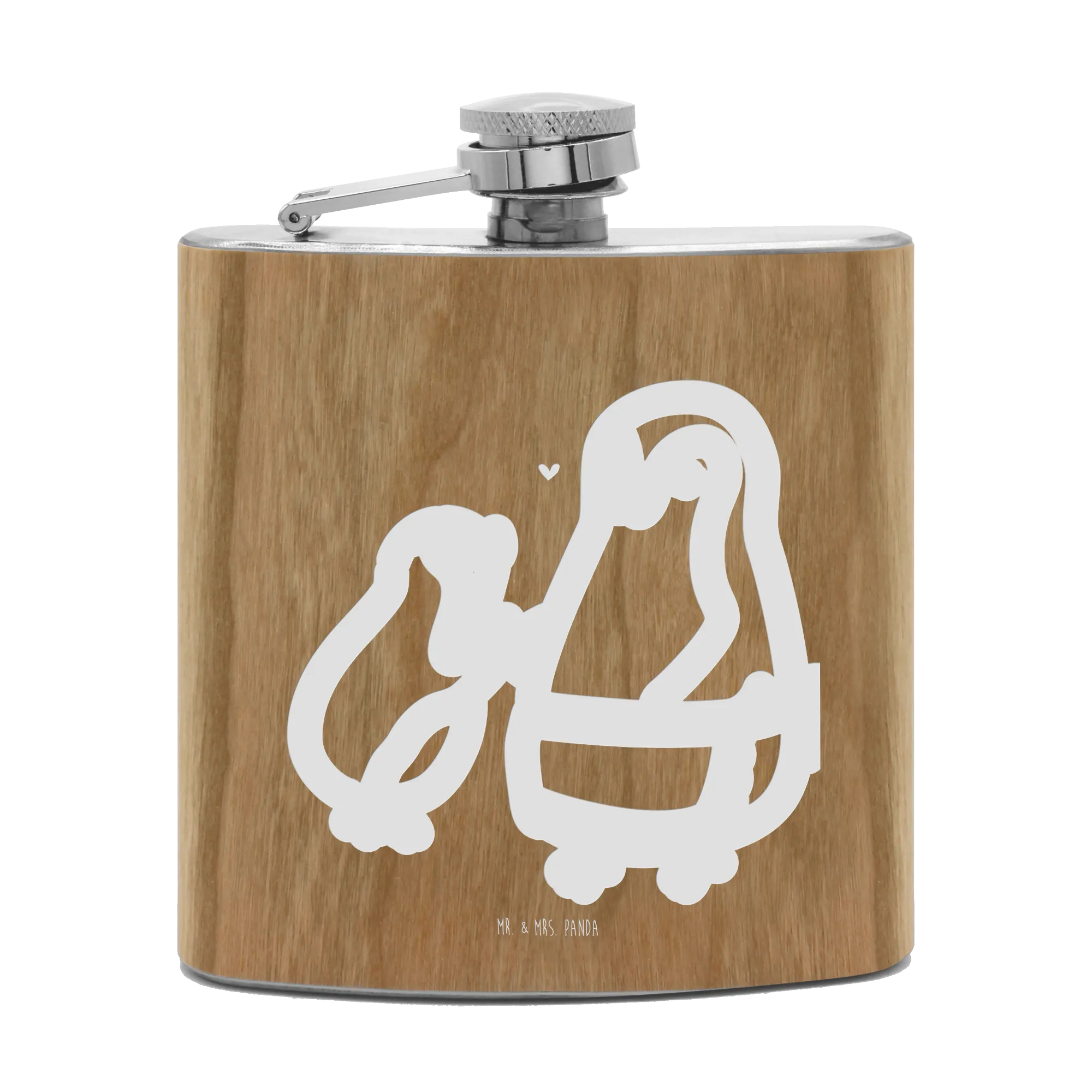 Meet the Mr. & Mrs. Panda Hipflask—your new favorite accessory for all occasions! Crafted from premium stainless steel and adorned with a chic wood laminate, this flask can hold 150 ml (5 oz) of your favorite beverage. At 109 mm (4 inch) tall, 93 mm (4 inch) wide, and 22 mm (1 inch) thick, it’s designed for convenience and ease of transport. Featuring delightful engravings of whimsical quotes and cute motifs, this flask will make a wonderful gift for friends. It's the perfect companion for a bachelor or bachelorette party, or for outdoor adventures like hiking! Light and practical, the hipflask fits nicely in your hand and is fitted with a secure screw cap. Remember, it’s not dishwasher safe, so just swish it out with hot water for a quick clean! Elevate your drink game with the stylish Mr. & Mrs. Panda Hipflask!