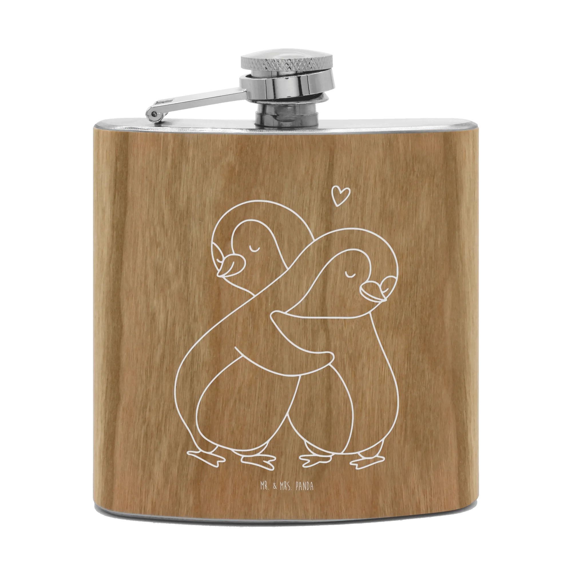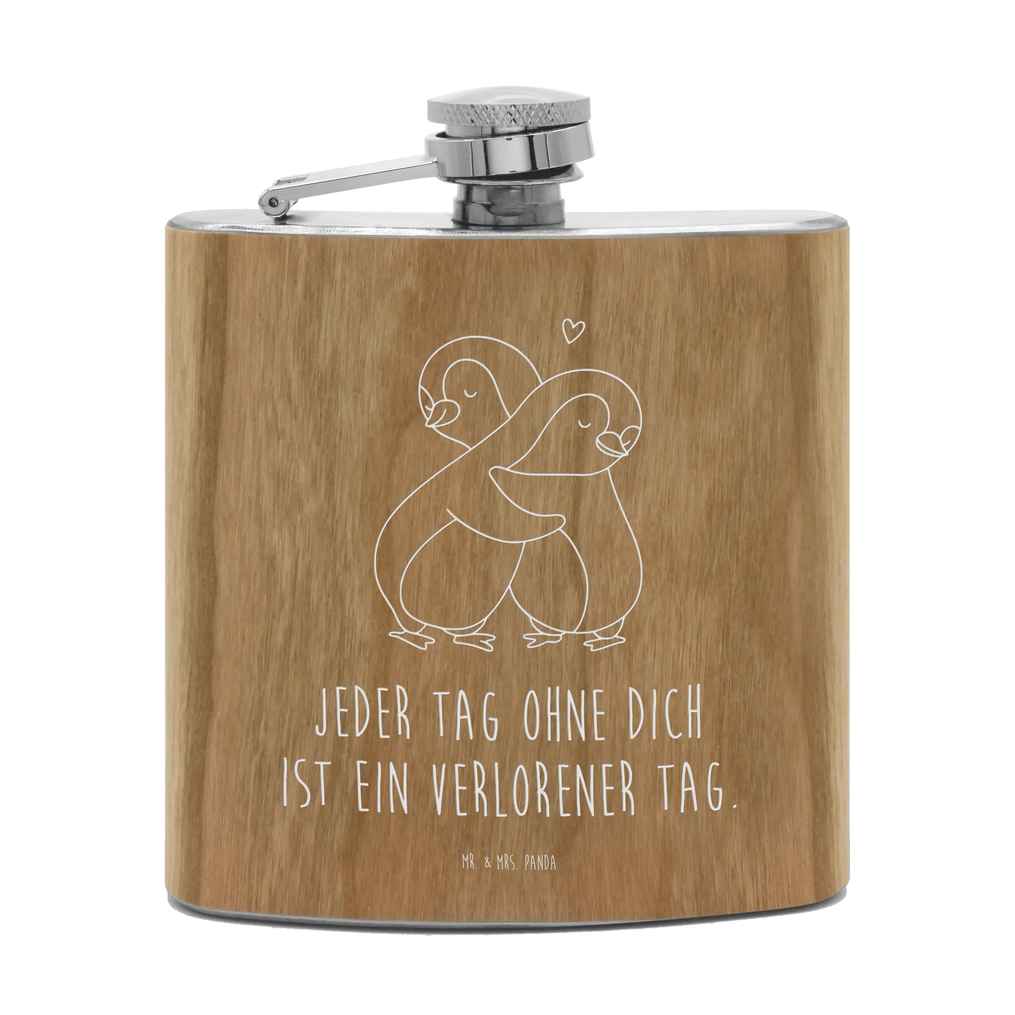 Hipflask penguins Cuddle - with saying