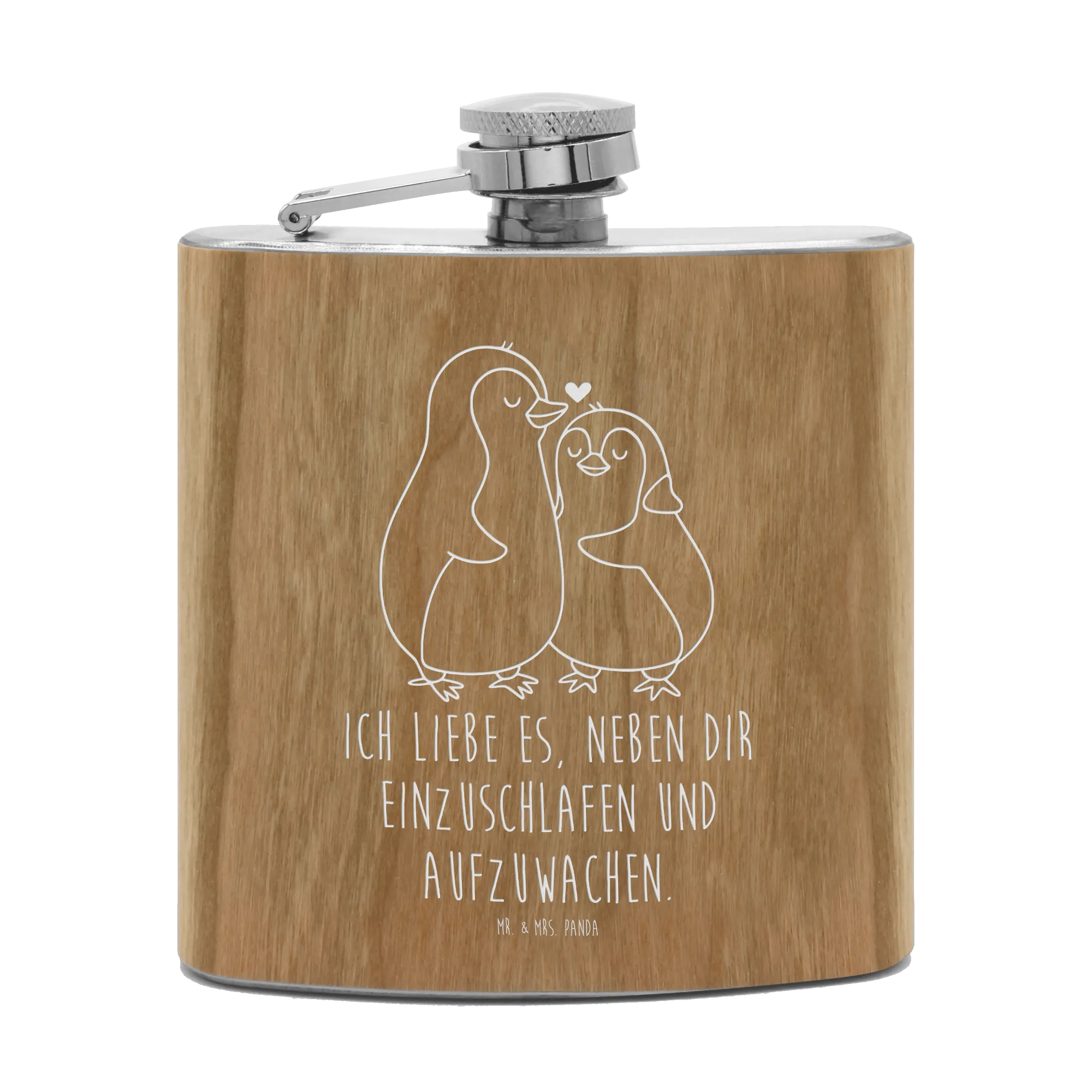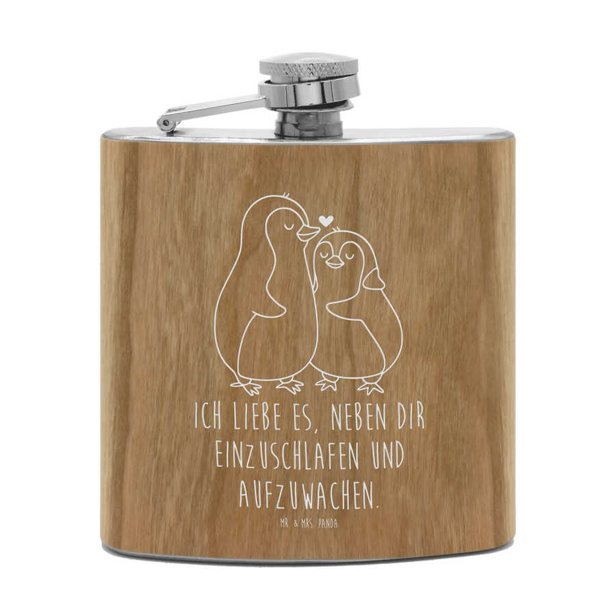 Meet the Mr. & Mrs. Panda Hipflask—your new favorite accessory for all occasions! Crafted from premium stainless steel and adorned with a chic wood laminate, this flask can hold 150 ml (5 oz) of your favorite beverage. At 109 mm (4 inch) tall, 93 mm (4 inch) wide, and 22 mm (1 inch) thick, it’s designed for convenience and ease of transport. Featuring delightful engravings of whimsical quotes and cute motifs, this flask will make a wonderful gift for friends. It's the perfect companion for a bachelor or bachelorette party, or for outdoor adventures like hiking! Light and practical, the hipflask fits nicely in your hand and is fitted with a secure screw cap. Remember, it’s not dishwasher safe, so just swish it out with hot water for a quick clean! Elevate your drink game with the stylish Mr. & Mrs. Panda Hipflask!