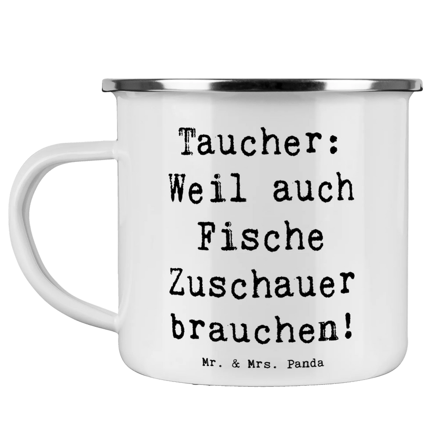 Enamel camping mug Saying Taucher: Weil auch Fische Zuschauer brauchen!