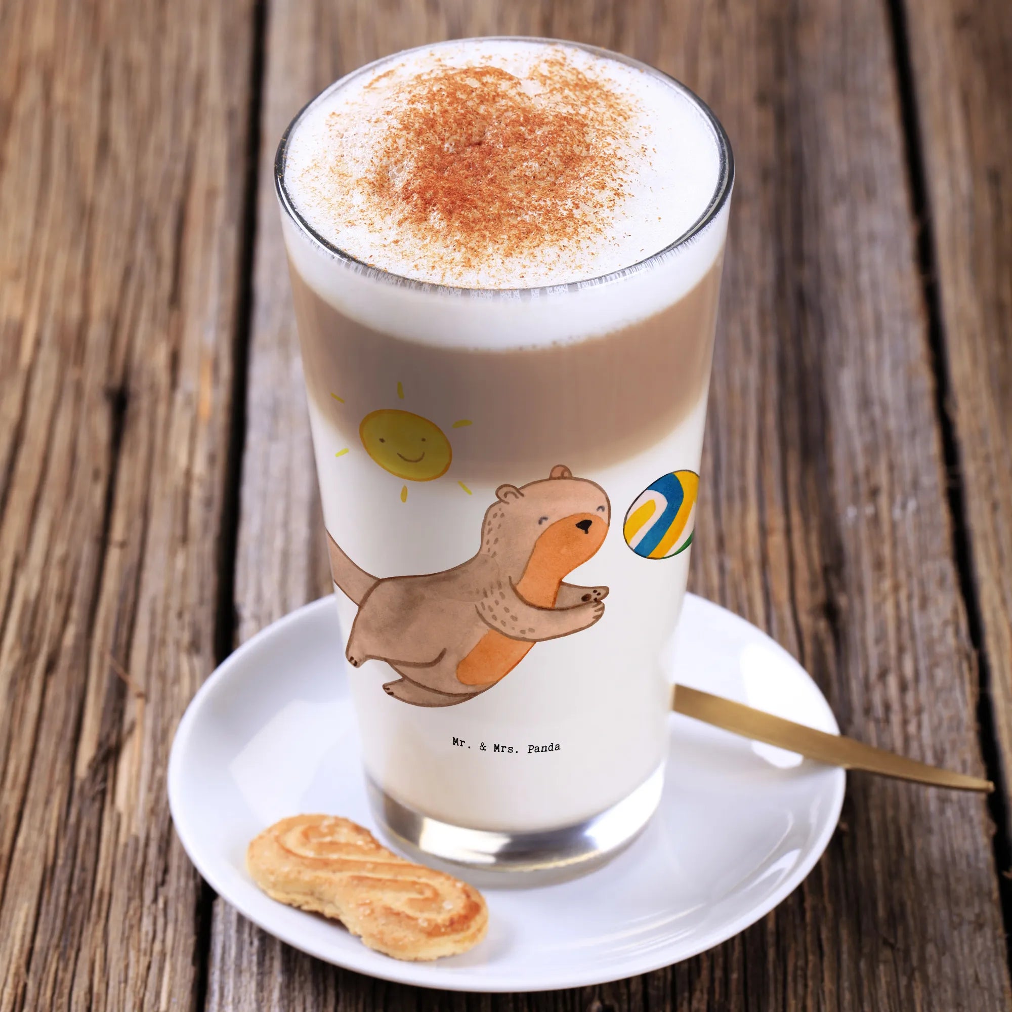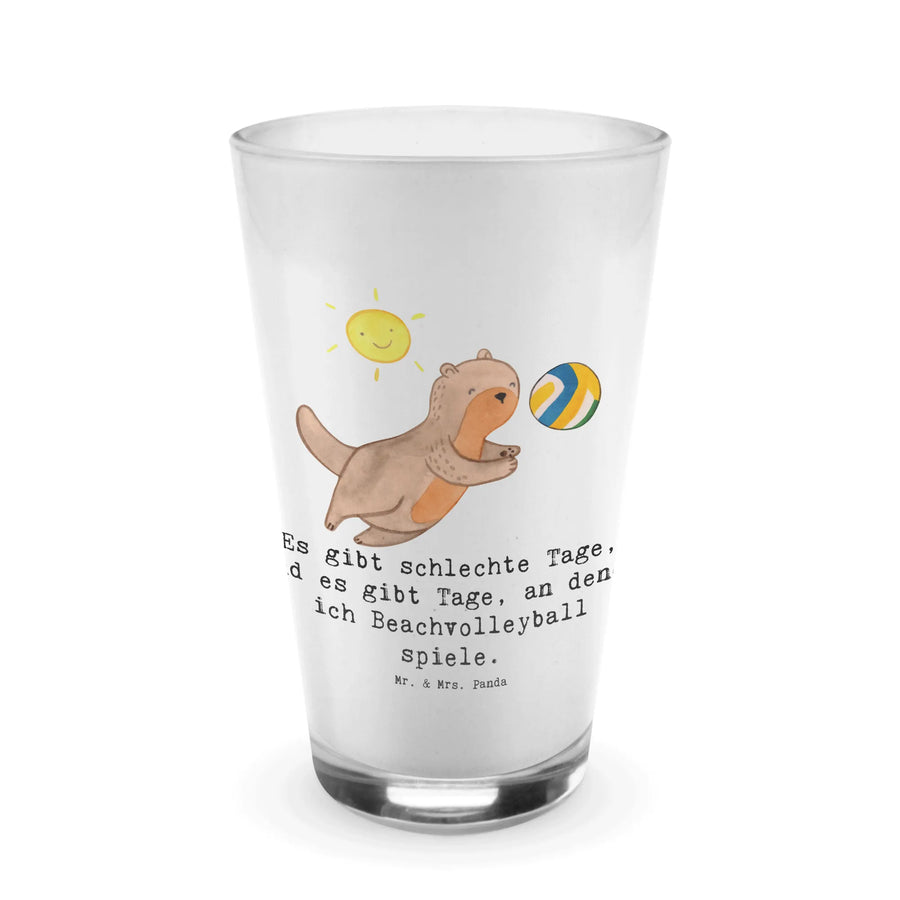 Introducing the charming Otter Beach Volleyball Days glass from the delightful Mr. & Mrs. Panda collection! This gorgeous, premium-quality drinking glass is perfect for all beach volleyball enthusiasts and those who simply adore the sport. Featuring a cheerful otter passionately playing with a volleyball, this glass adds a splash of joy and fun to your daily routine.