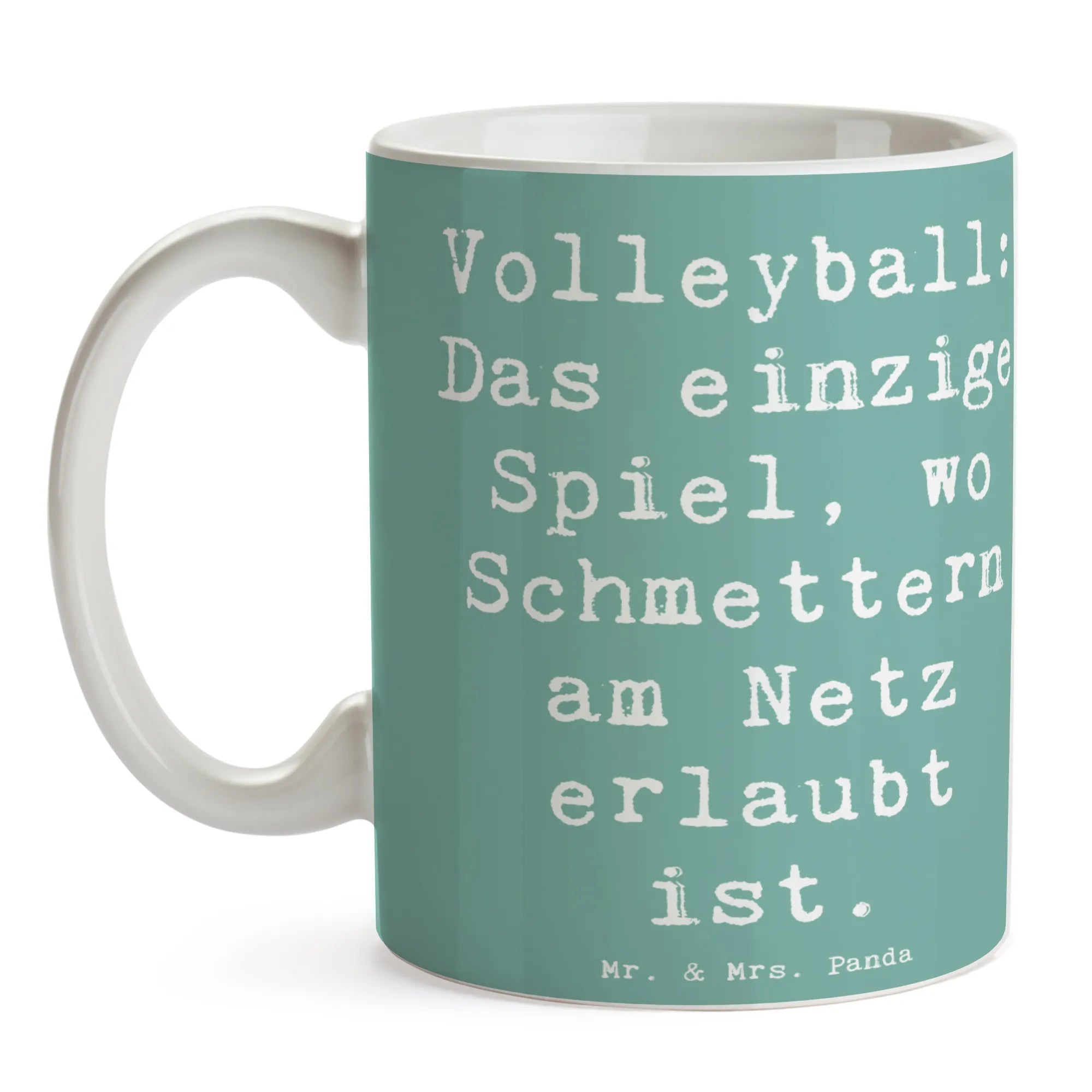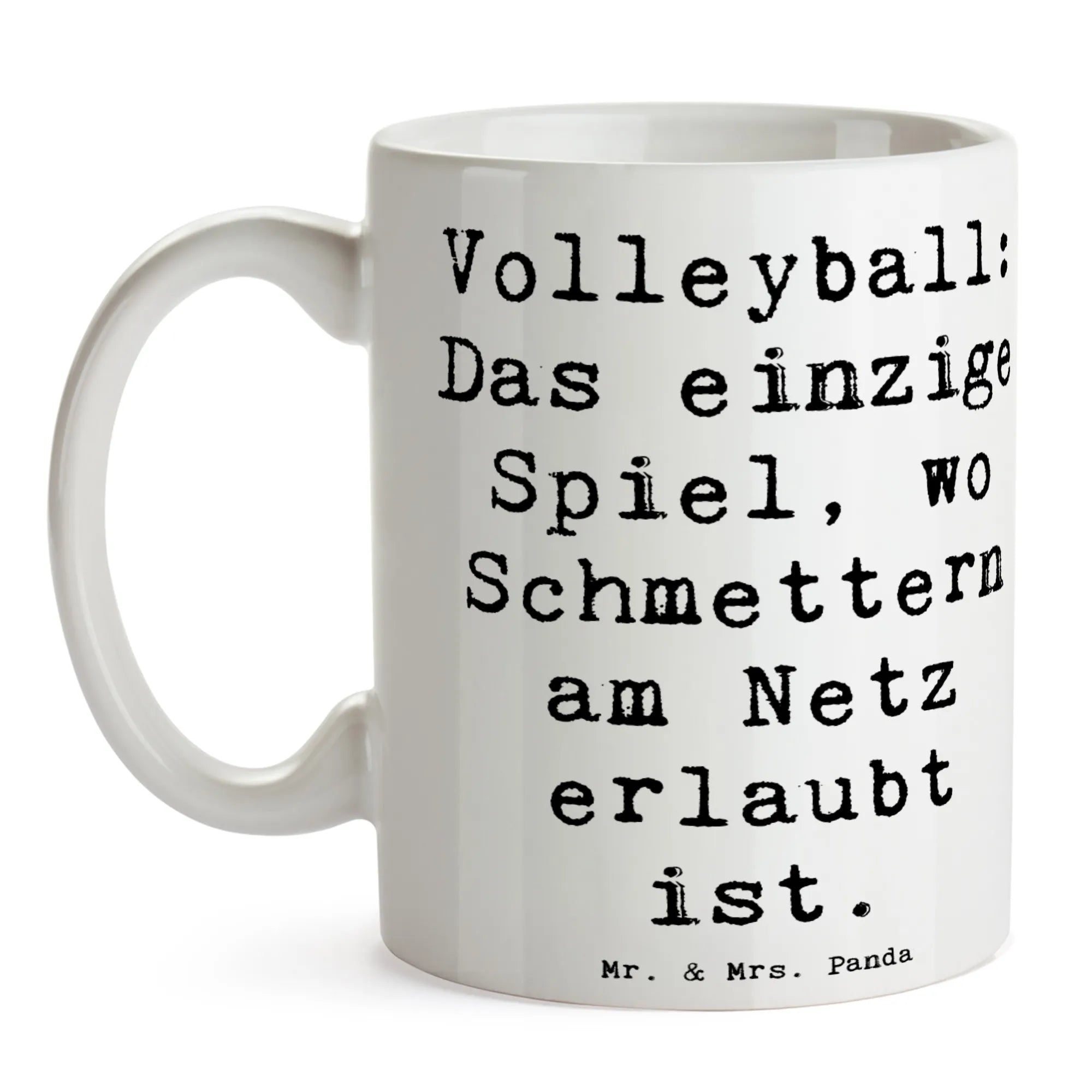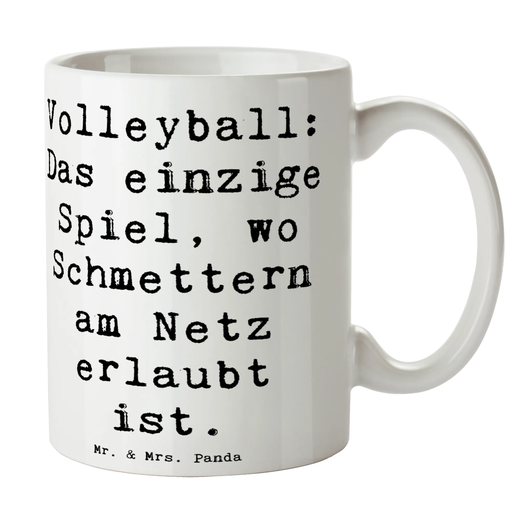 Mug Saying Volleyball: Das einzige Spiel, wo Schmettern am Netz erlaubt ist. - White
