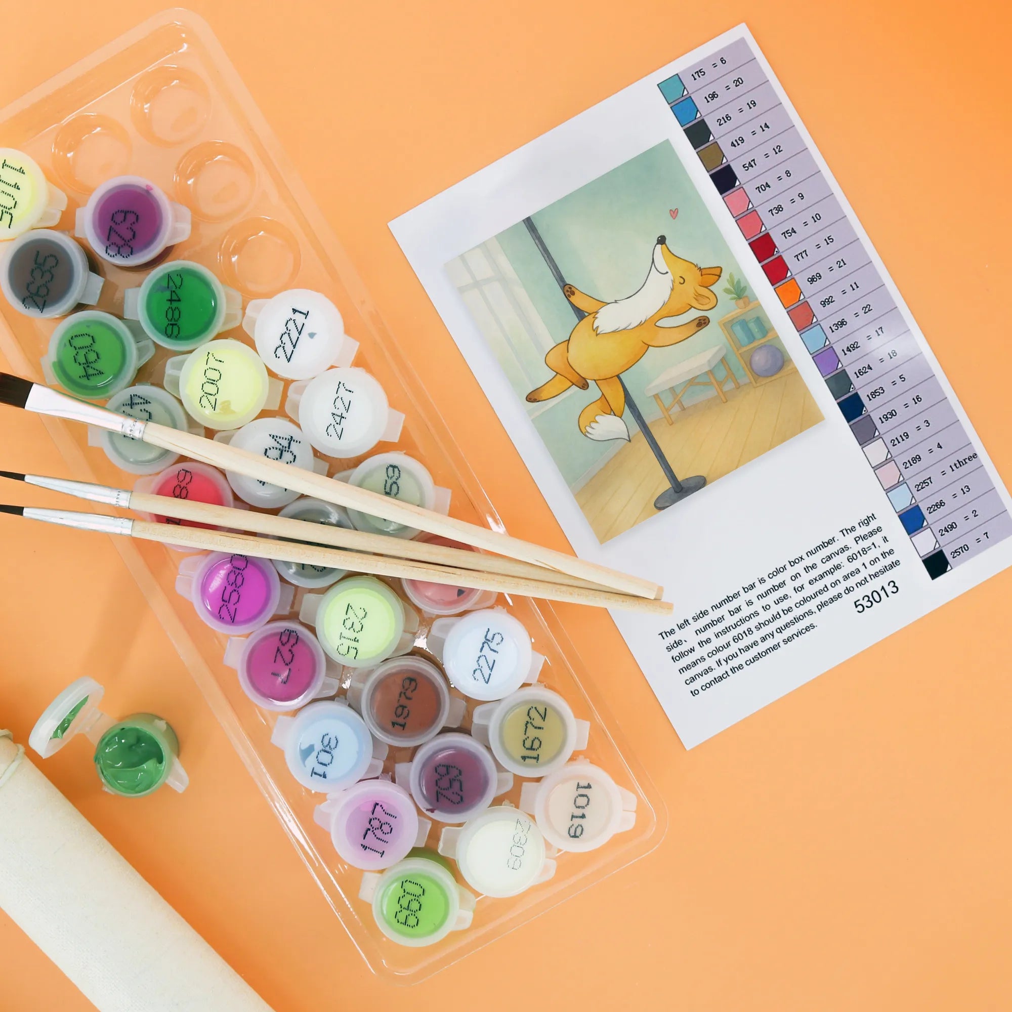Paint by Numbers Fox Pole Dance Design - Ohne Rahmen - 24 Farben (Standard)