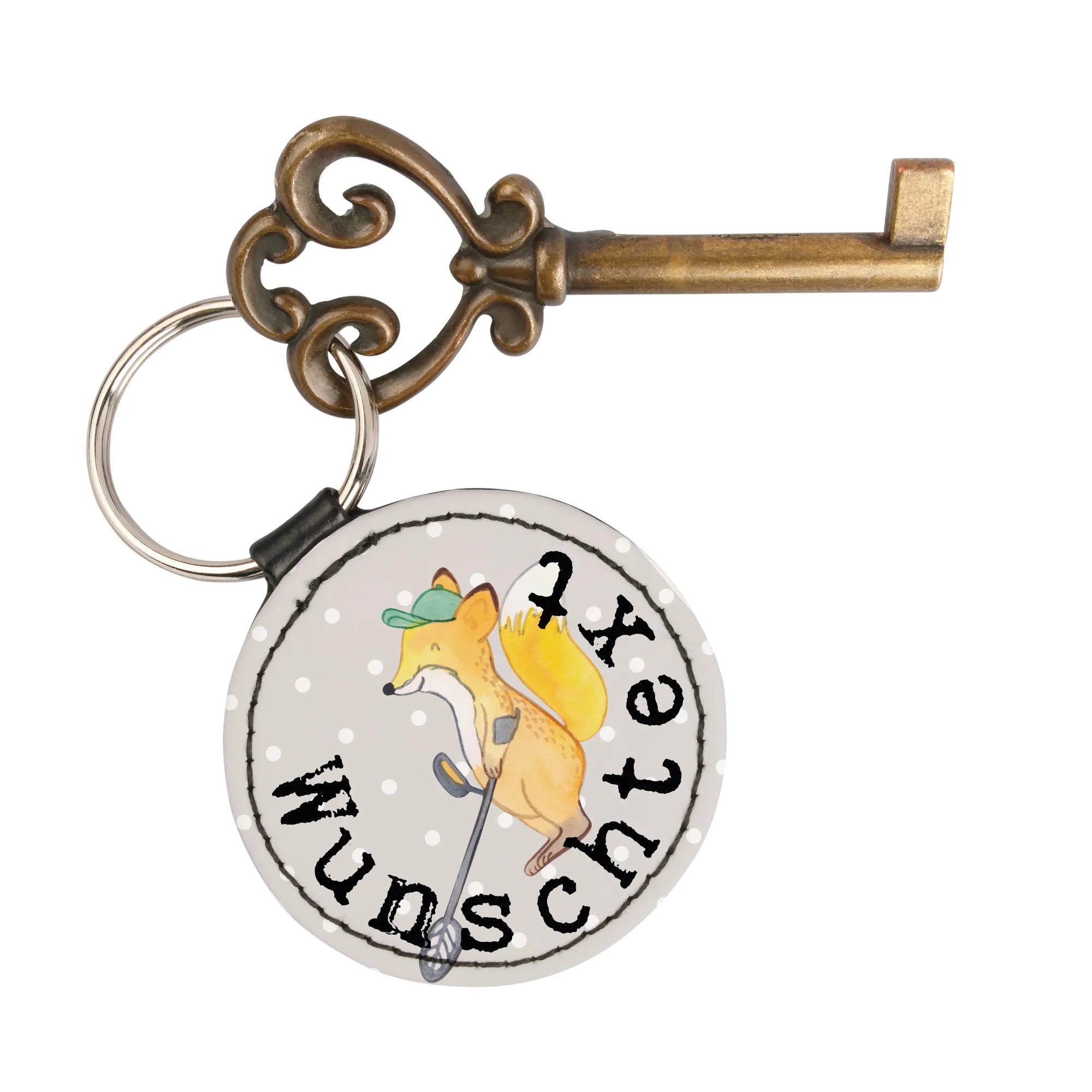 Personalised key ring Fox metal detector