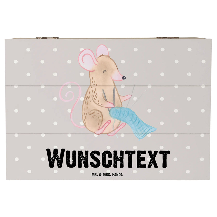 Personalised wooden chest Mouse Knit - 22 x 15 cm - Pastel Gray