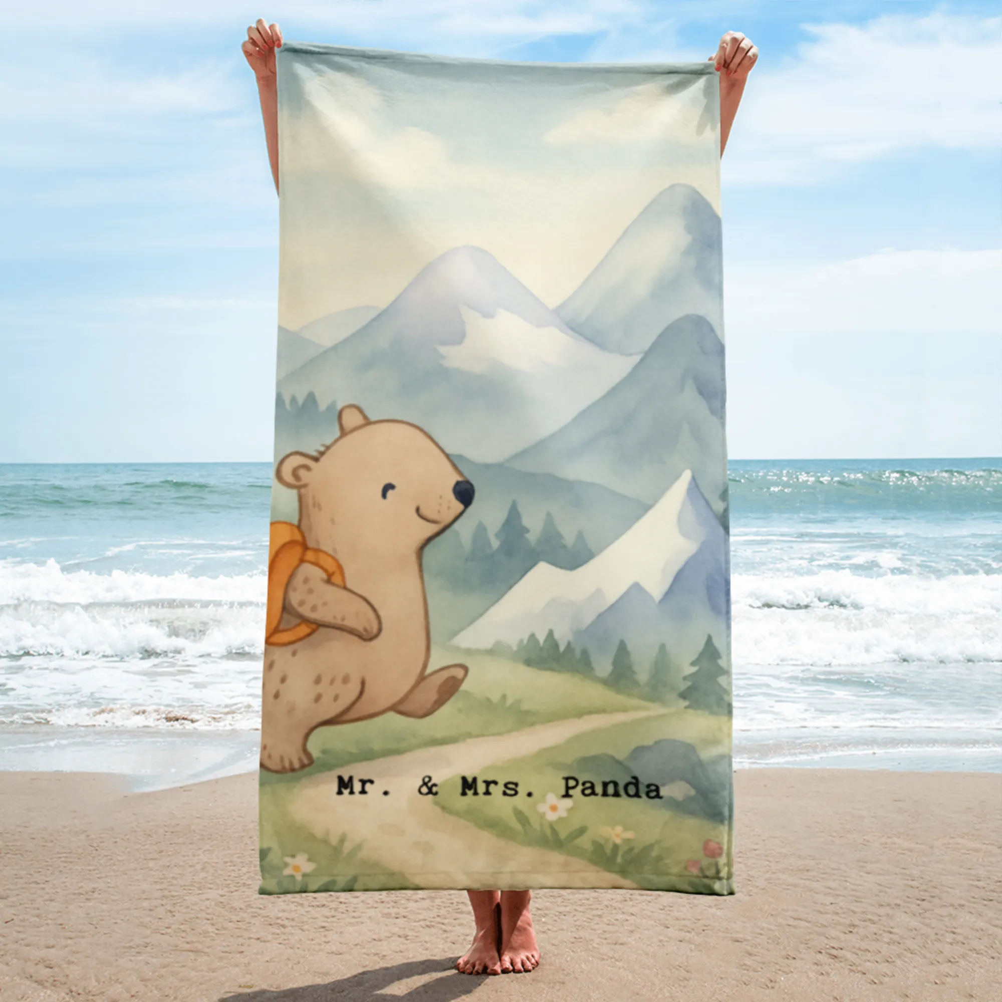 XL Badehandtuch Bär Bergsteigen Design