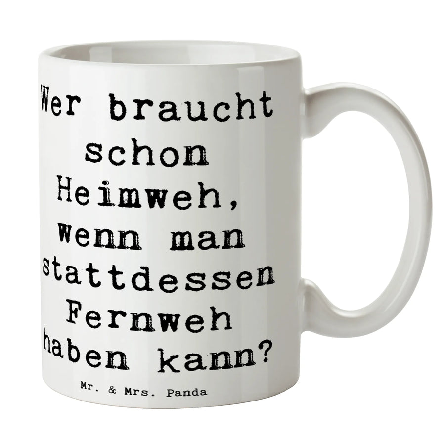 Mug Saying Wer braucht schon Heimweh, wenn man stattdessen Fernweh haben kann? - White