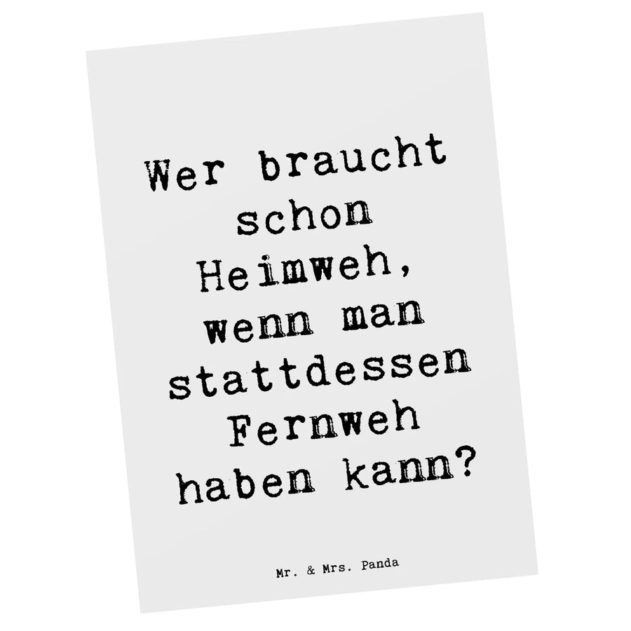 Postcard Saying Wer braucht schon Heimweh, wenn man stattdessen Fernweh haben kann? - White