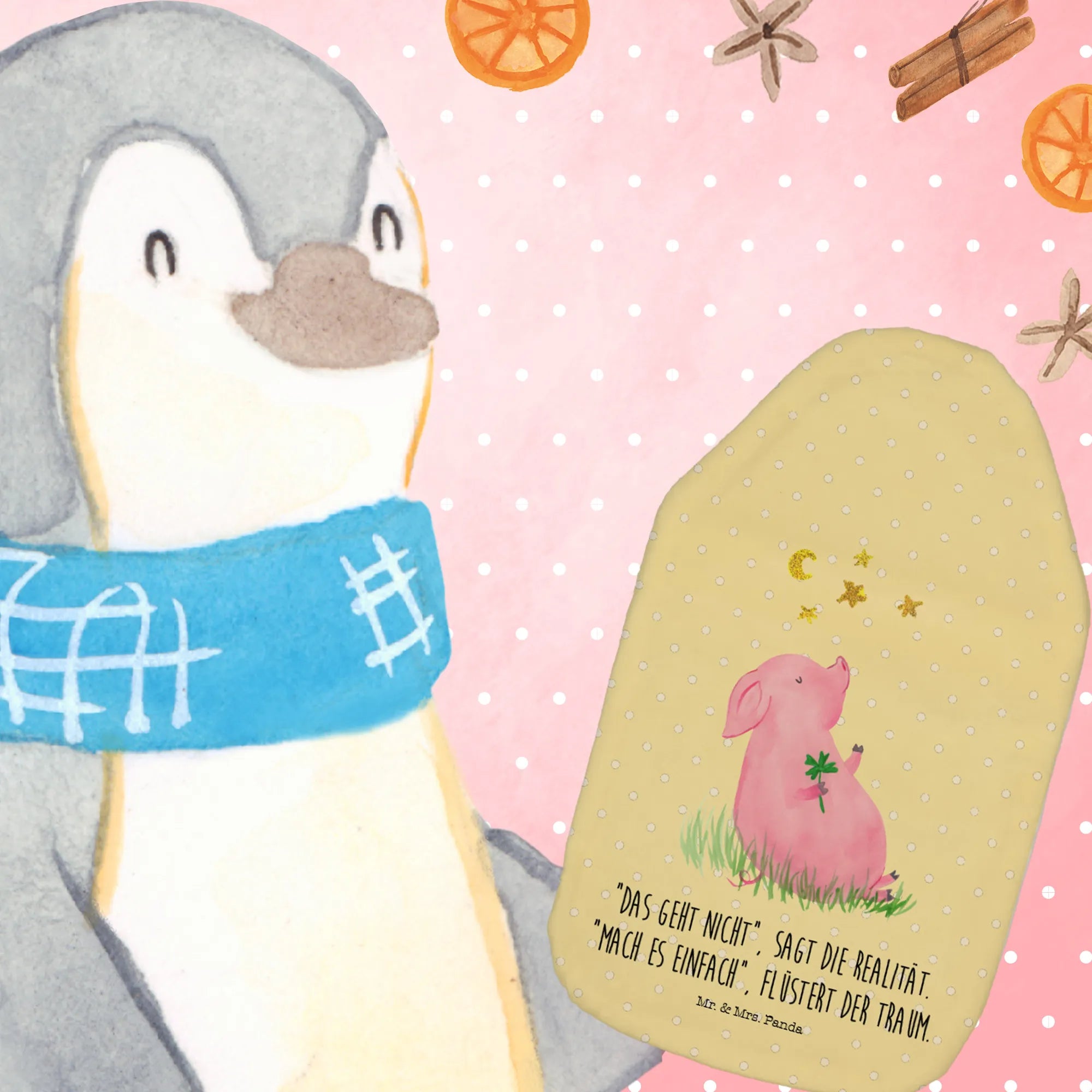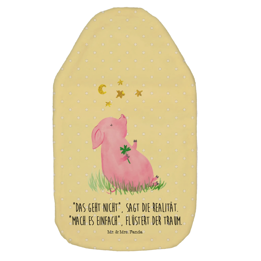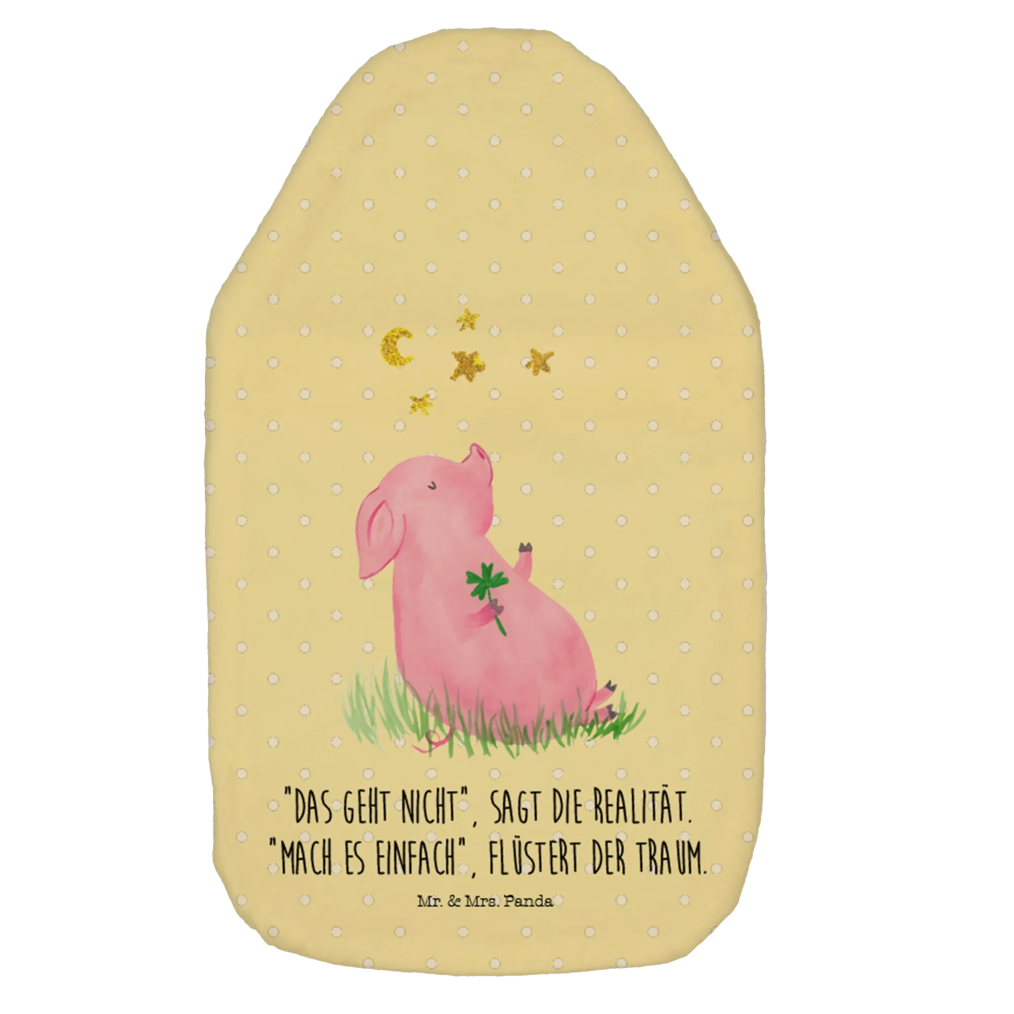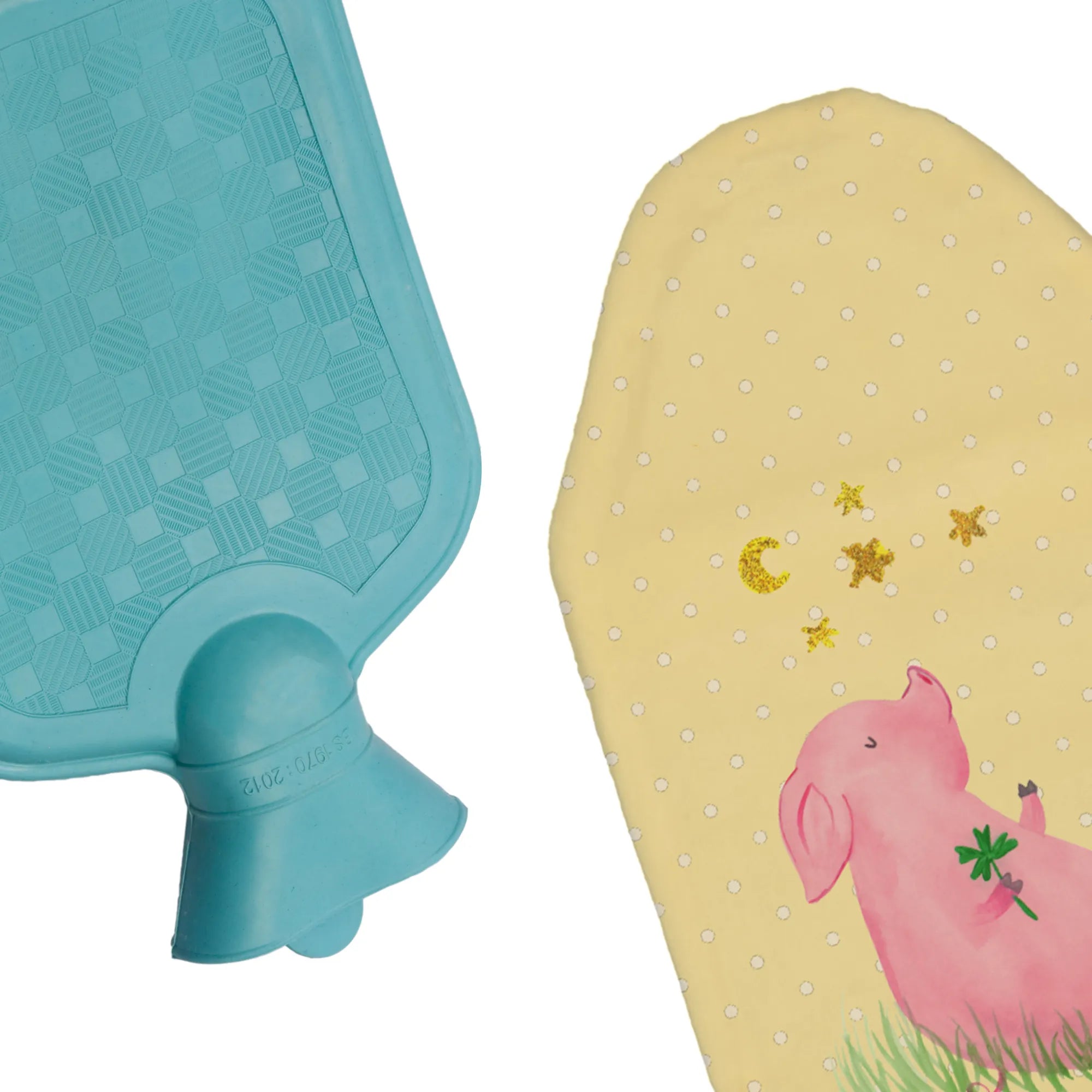 Hot water bottle Pig Luck - with saying - Pastel Yellow