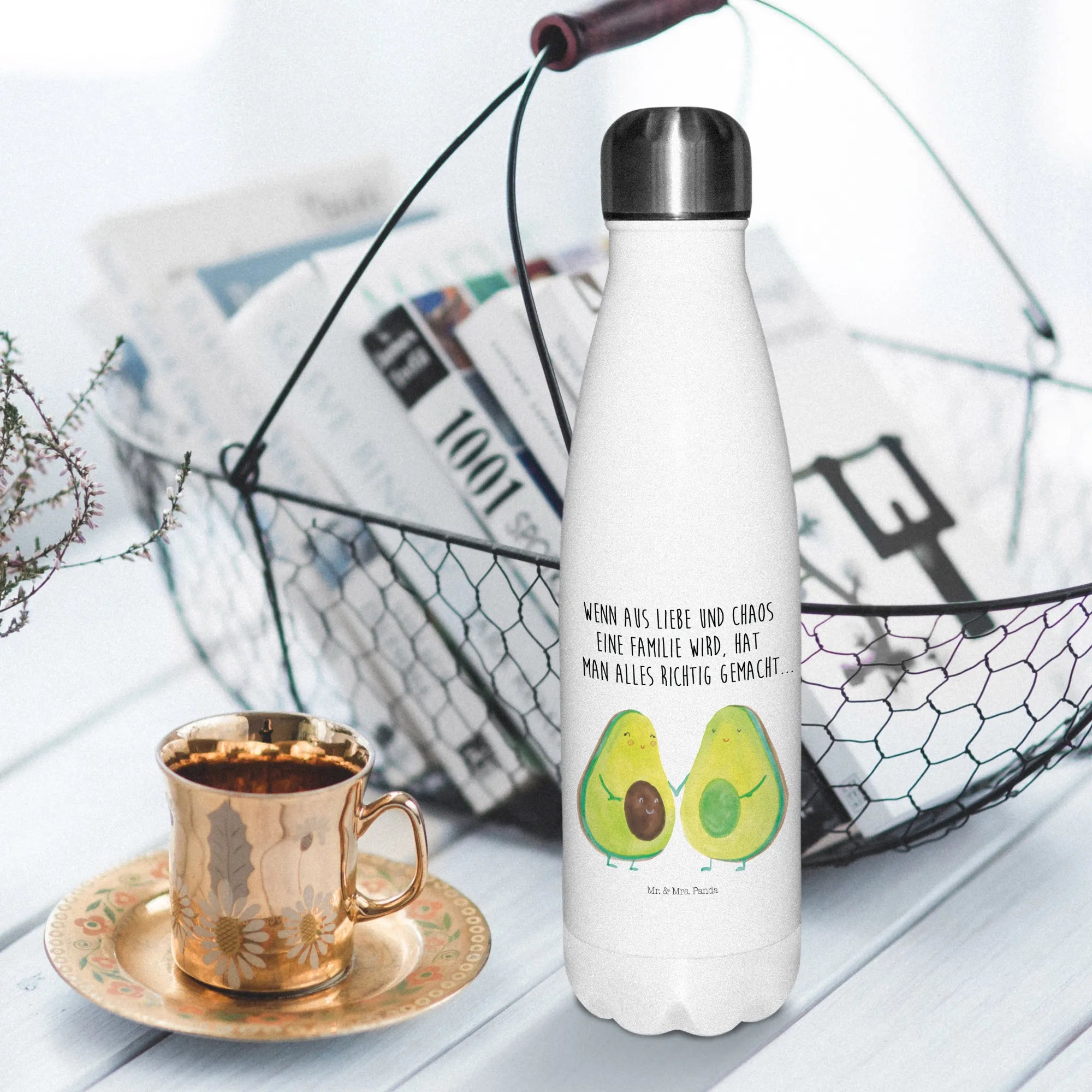 Insulated bottle avocado pair - with saying