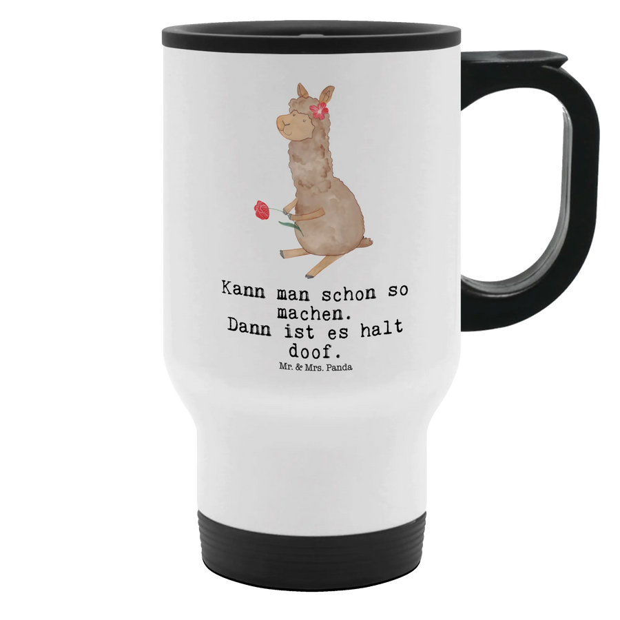Dive into the enchanting world of our Alpaca Flower motif, an irresistible blend of whimsical charm and floral beauty. This cute alpaca, sporting flowers in its hair and hand, radiates a joyous spirit. The accompanying saying, 'Kann man schon so machen. Dann ist es halt doof.', playfully invites us to look at life from a humorous angle. It's all about finding joy in the little things, even when plans don't unfold as expected. Perfect for llama lovers and floral enthusiasts alike, this motif is sure to bring a smile and a warm feeling to your heart, reminding you to stay cheerful and playful.