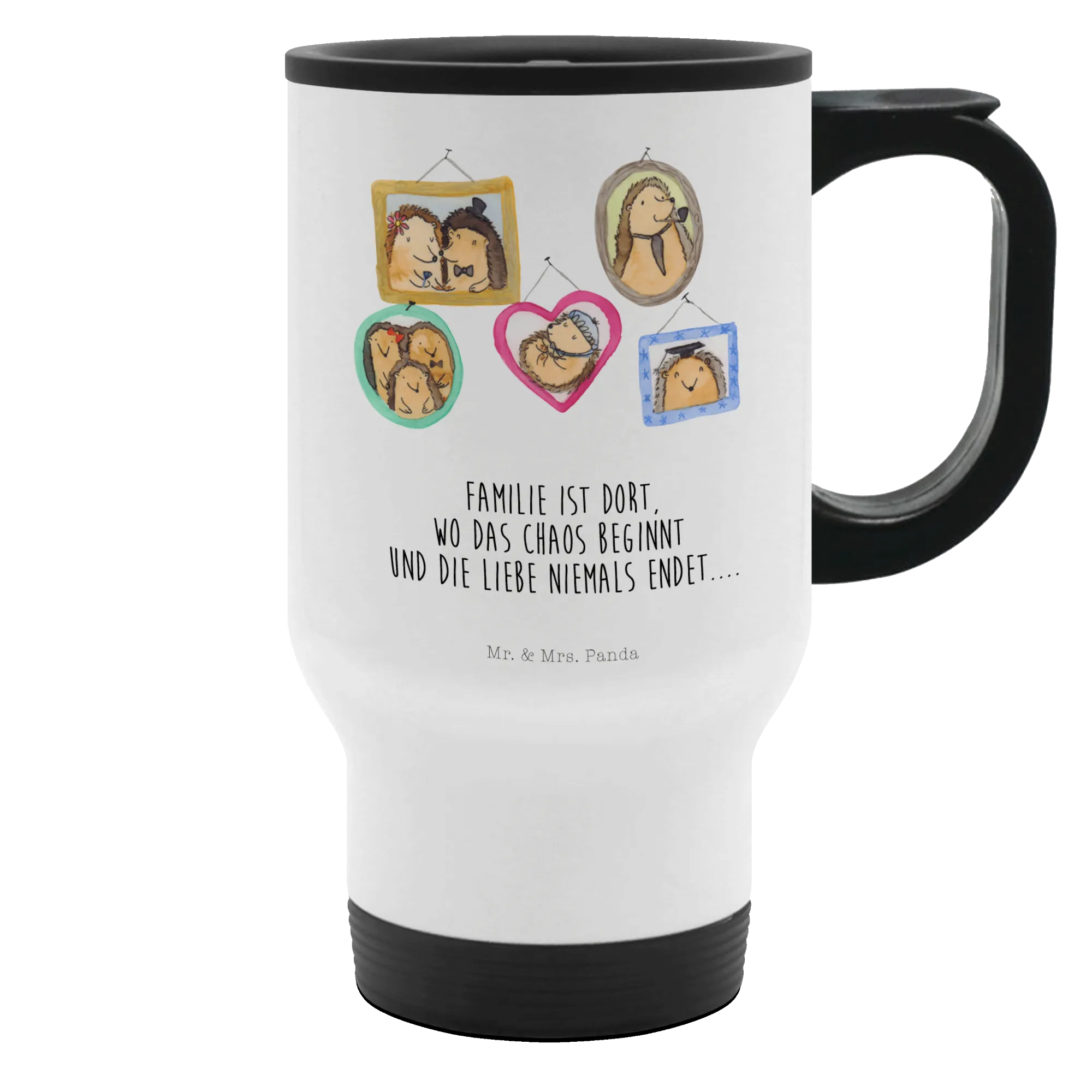 Insulated mug Hedgehog family - with a saying