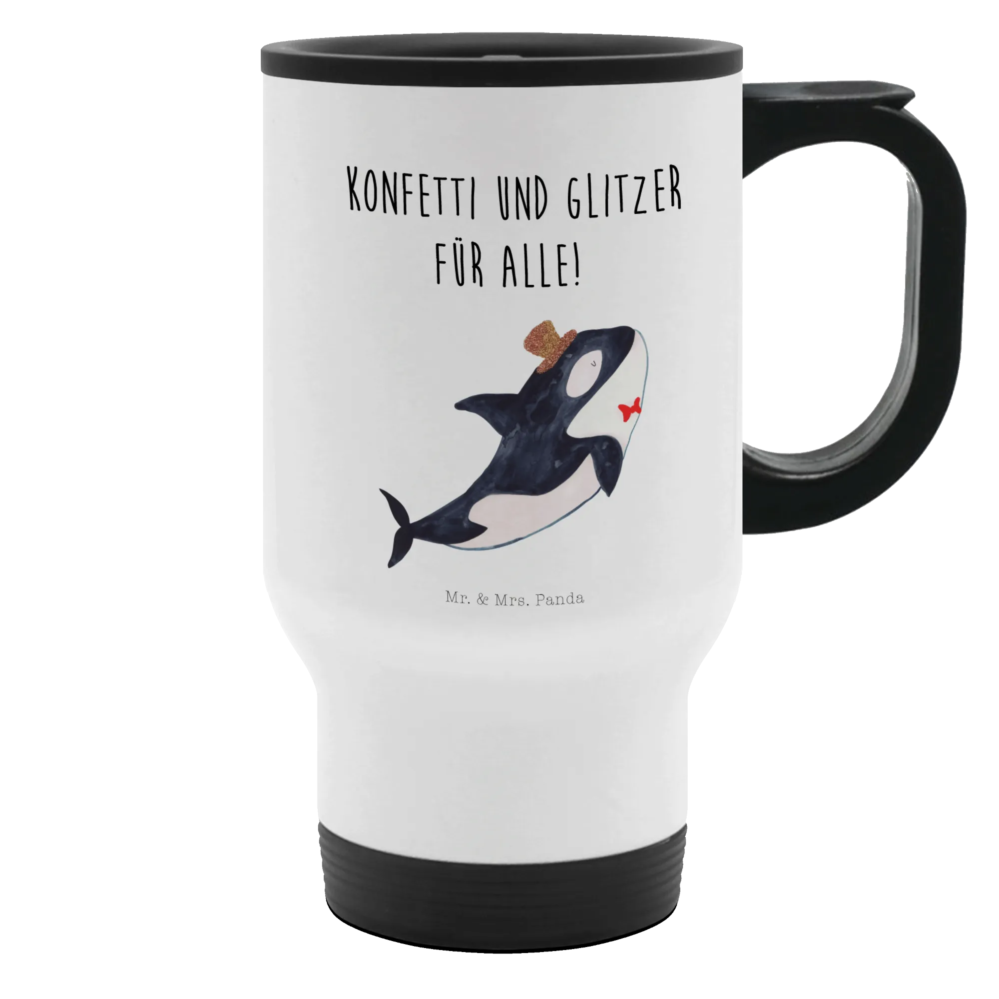 Perfect for all the special occasions and holidays, this travel mug is more than just a practical item; it's a statement piece. With the whimsical Orca Cylinder design, it's bound to bring a smile to your face every time you reach for your drink. It’s ideal as a birthday present, a thank-you gift, or simply a treat for yourself! Don't miss out on the chance to celebrate your love for marine life with the Mr. & Mrs. Panda Insulated Mug. Grab yours today and make every sip a delightful sea adventure!