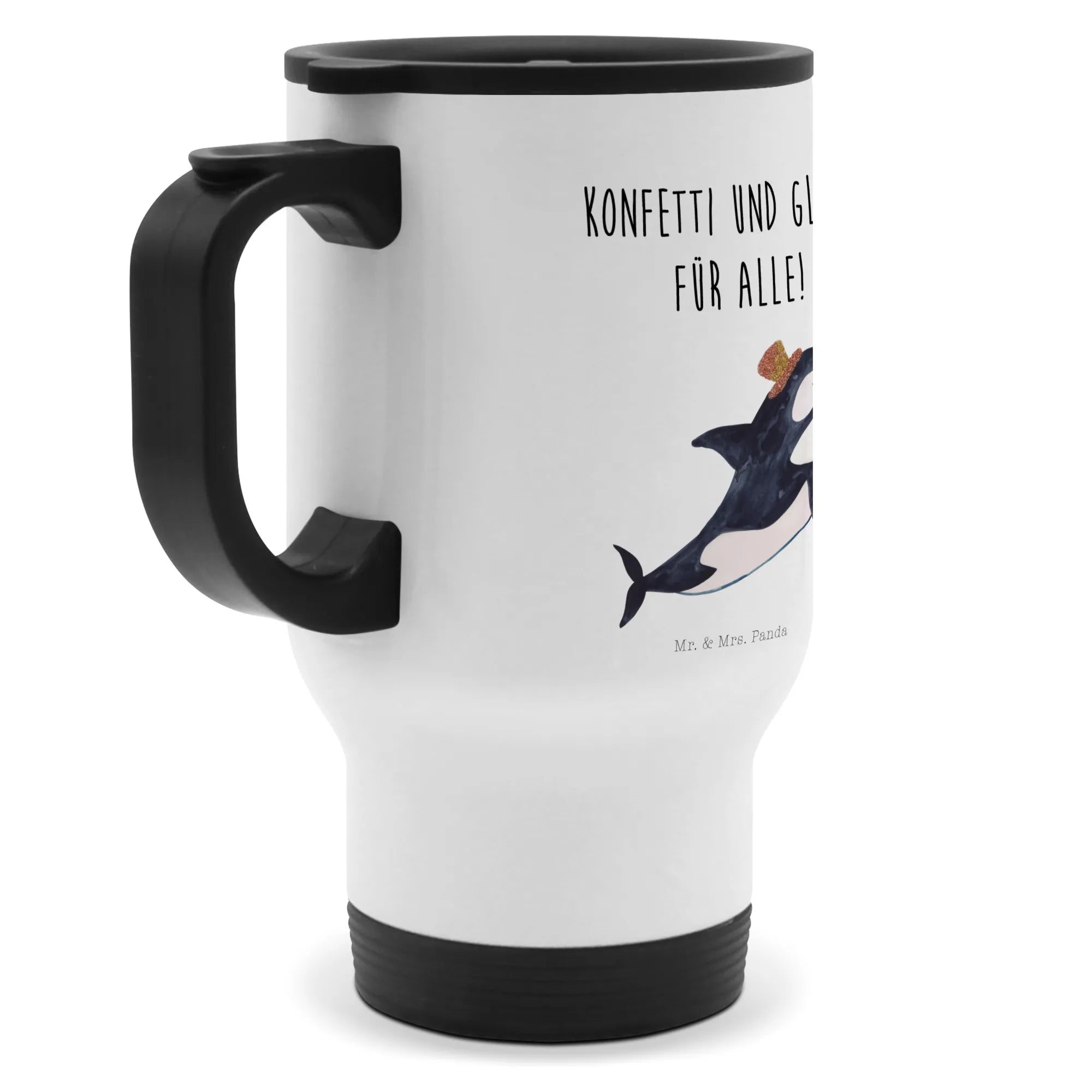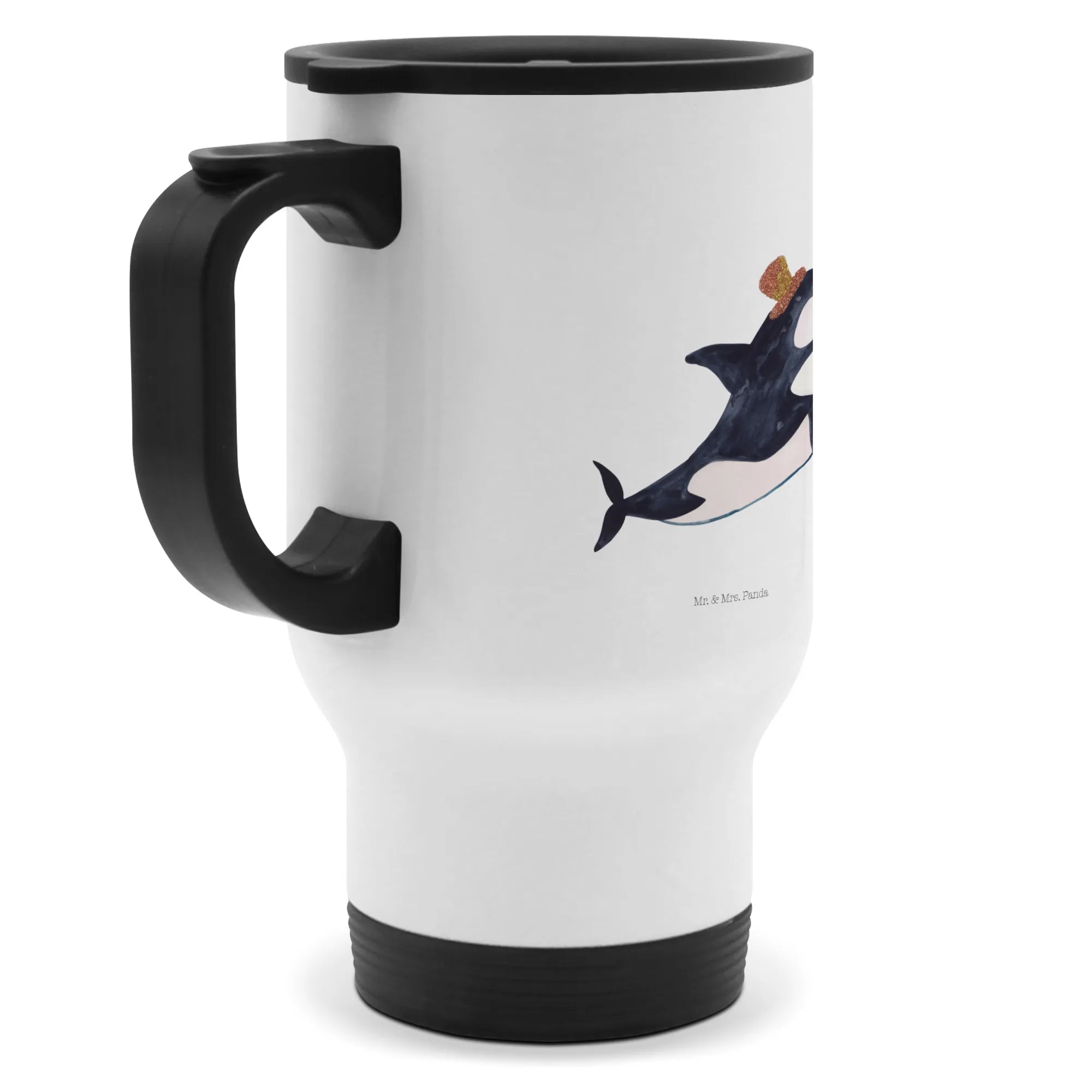 Dive into the magical world of marine life with the Mr. & Mrs. Panda Insulated Mug featuring our charming Orca Cylinder motif! This delightful travel coffee mug is perfect for anyone who loves the ocean and its magnificent creatures. Crafted from high-quality stainless steel and designed to keep your beverages hot for longer, this insulated mug is a must-have for coffee enthusiasts, tea lovers, and anyone on the go. Whether you're sipping your morning brew while rushing to work or enjoying an afternoon tea on a leisurely beach trip, this mug is designed to fit seamlessly into your busy lifestyle.