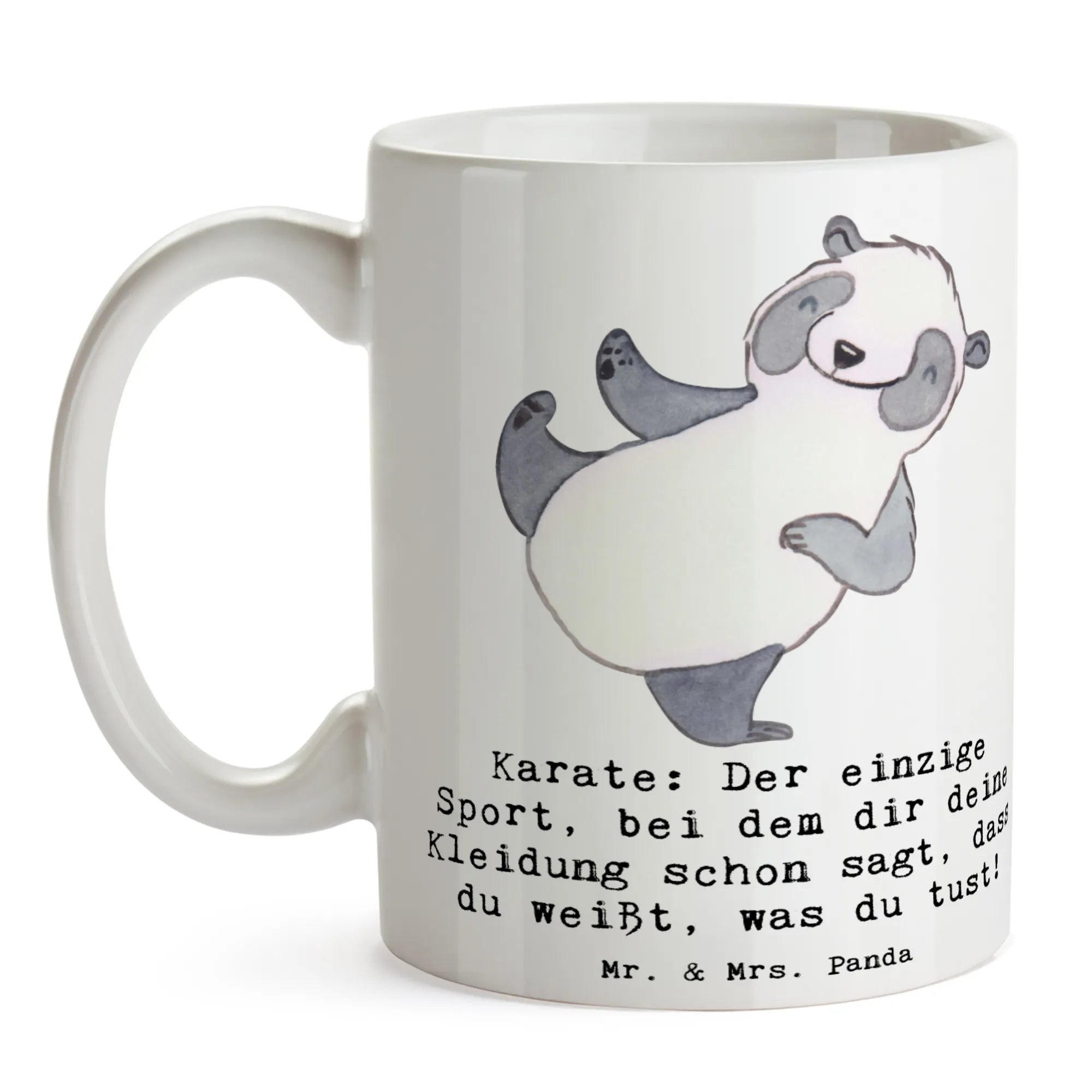 Mug Karate: Der einzige Sport, bei dem dir deine Kleidung schon sagt, dass du weißt, was du tust! Keramiktasse, Tasse mit Motiven, Kaffeetasse, Porzellantasse, Tasse, Tasse mit Zitaten, Geschenktasse, Teetasse, Bürotasse, Geschenk, Sport, Sportart, Hobby, Schenken, Danke, Dankeschön, Auszeichnung, Gewinn, Sportler