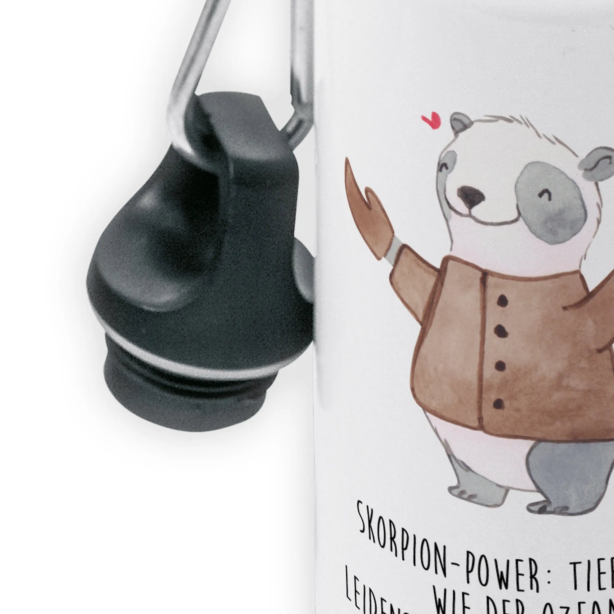 Step into the zodiac realm with our charming Scorpio panda! Dressed in a cozy brown jacket and offering a gentle smile, this panda captures the essence of Scorpio's mysterious and passionate nature. The heart above its head emphasizes the warmth that flows from those born under this sign. With the slogan 'Skorpion-Power: Tiefgründig wie der Ozean, leidenschaftlich wie das Feuer,' we celebrate the intense emotions that Scorpios are known for. This motif is perfect for anyone looking to give a thoughtful birthday gift or a unique expression of love. Let this adorable panda inspire you to embrace your feelings and celebrate life with passion.