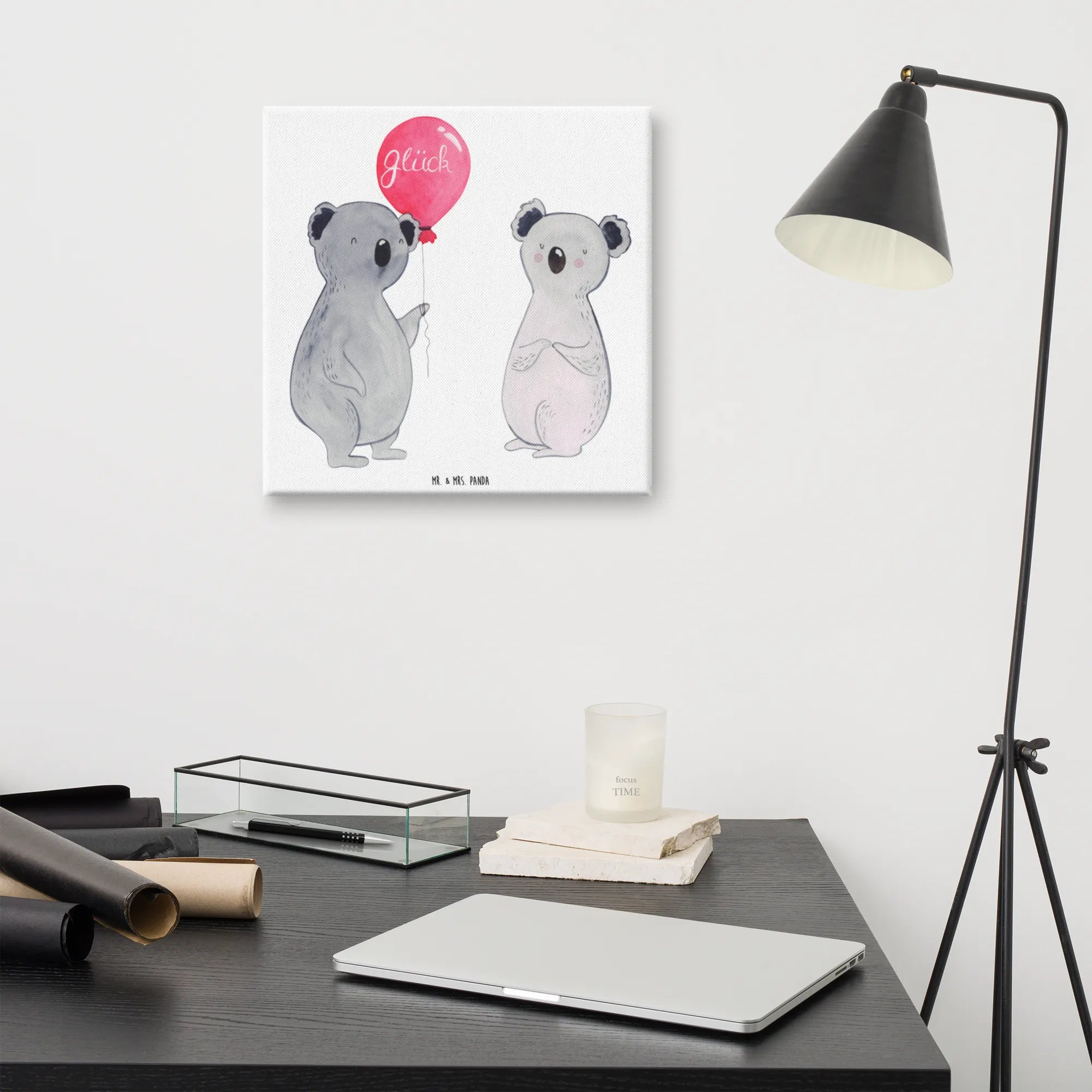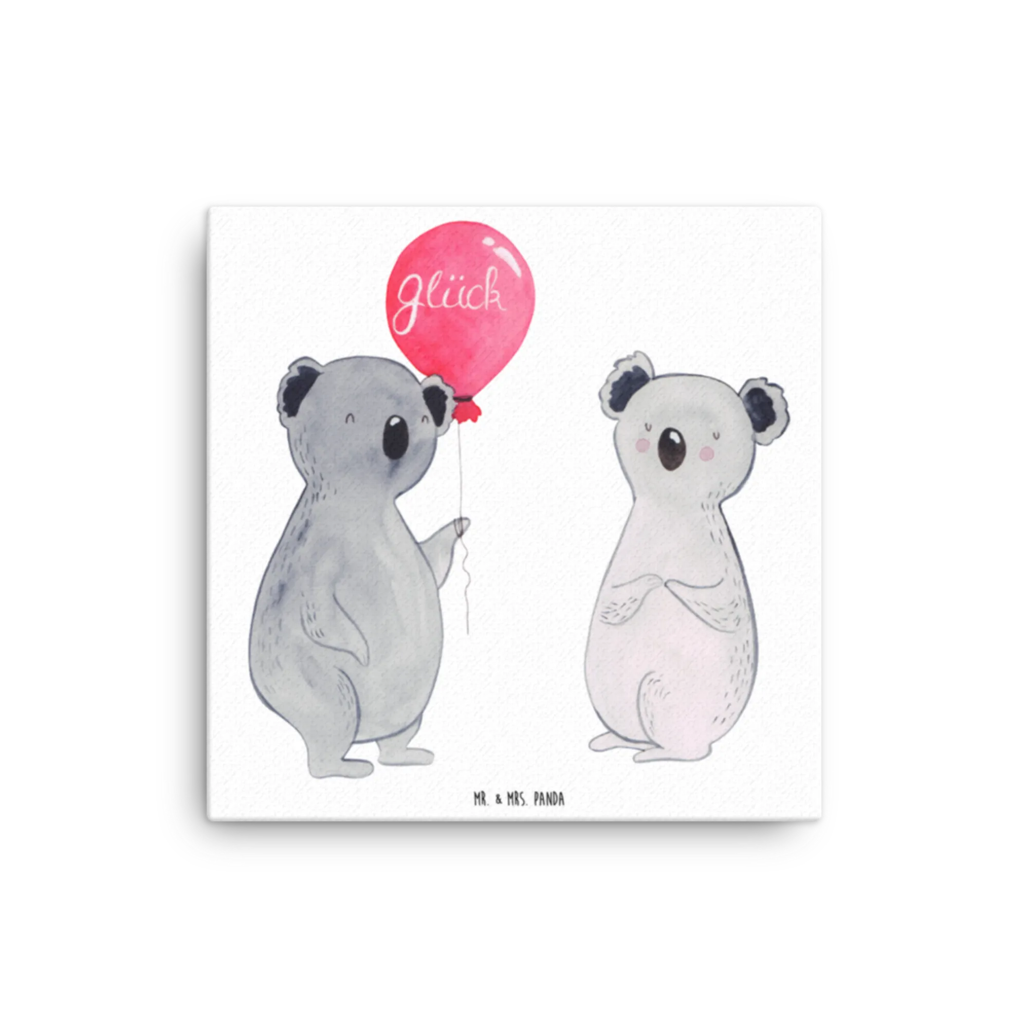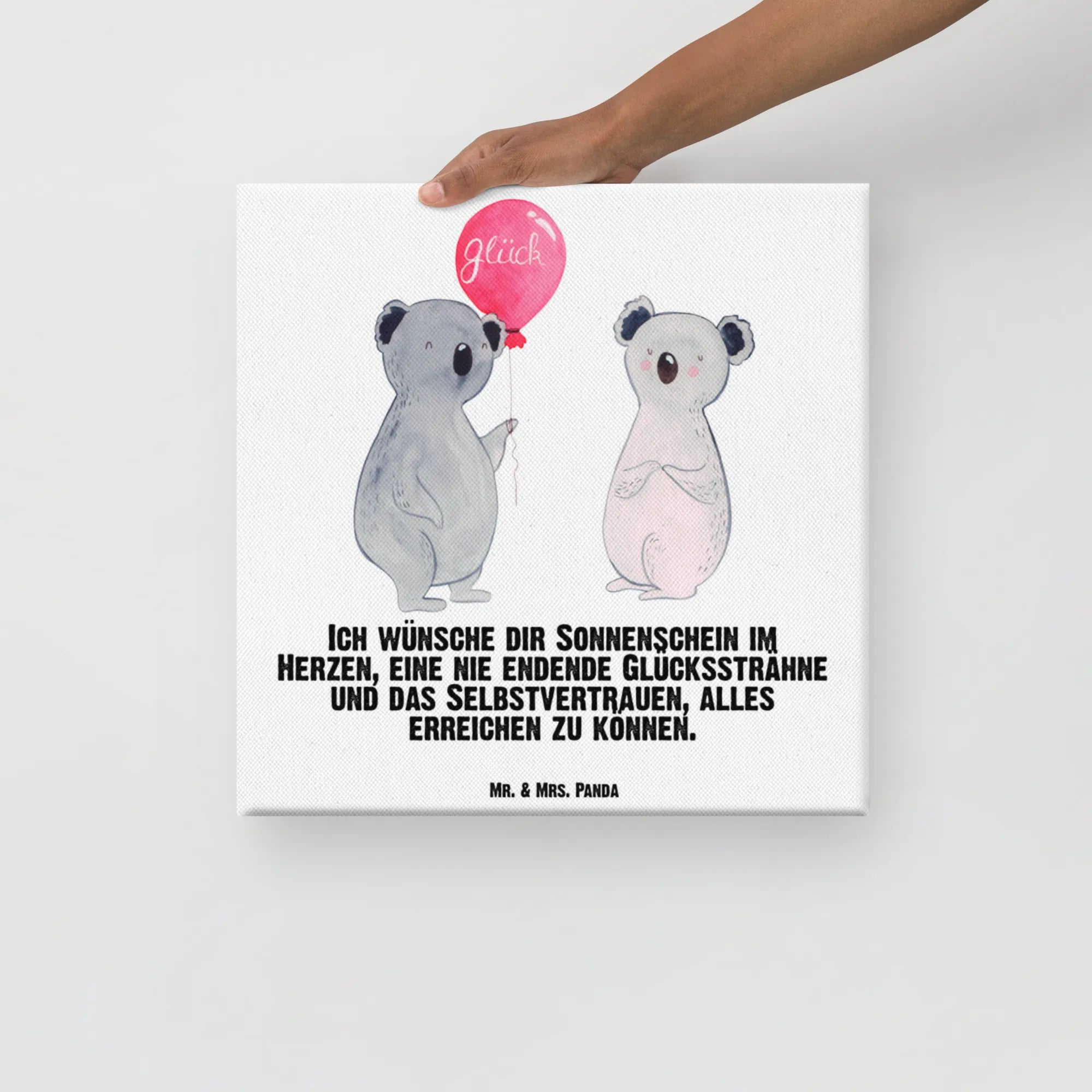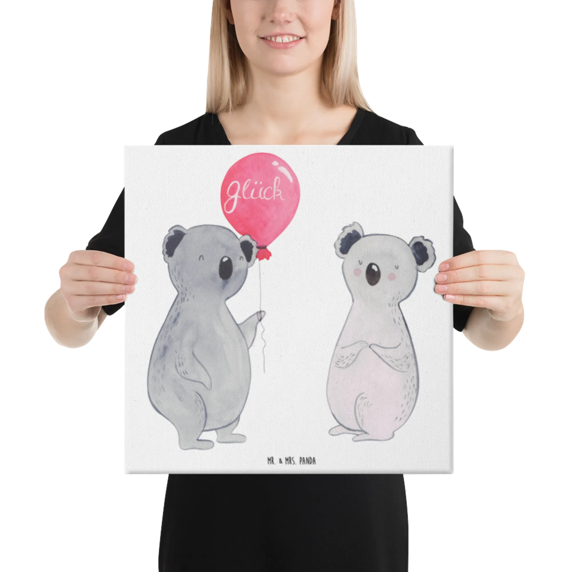 Dieses zauberhafte Leinwand Bild aus der Koala Kollektion von Mr. & Mrs. Panda zeigt zwei fröhliche Koalas und einen bunten Luftballon mit dem liebevollen Spruch: