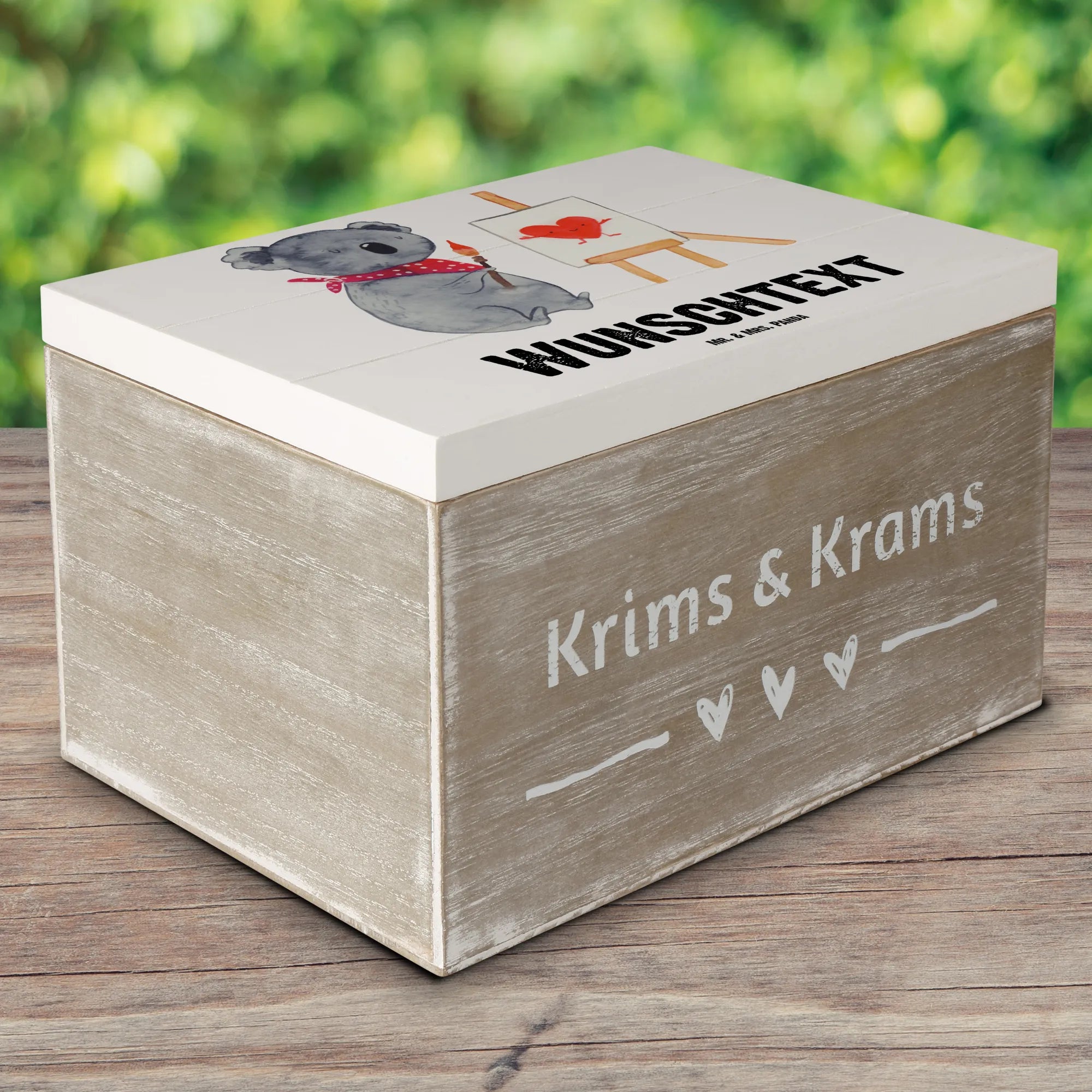 Personalised wooden chest Koala bear Artist - 22 x 15 cm - White