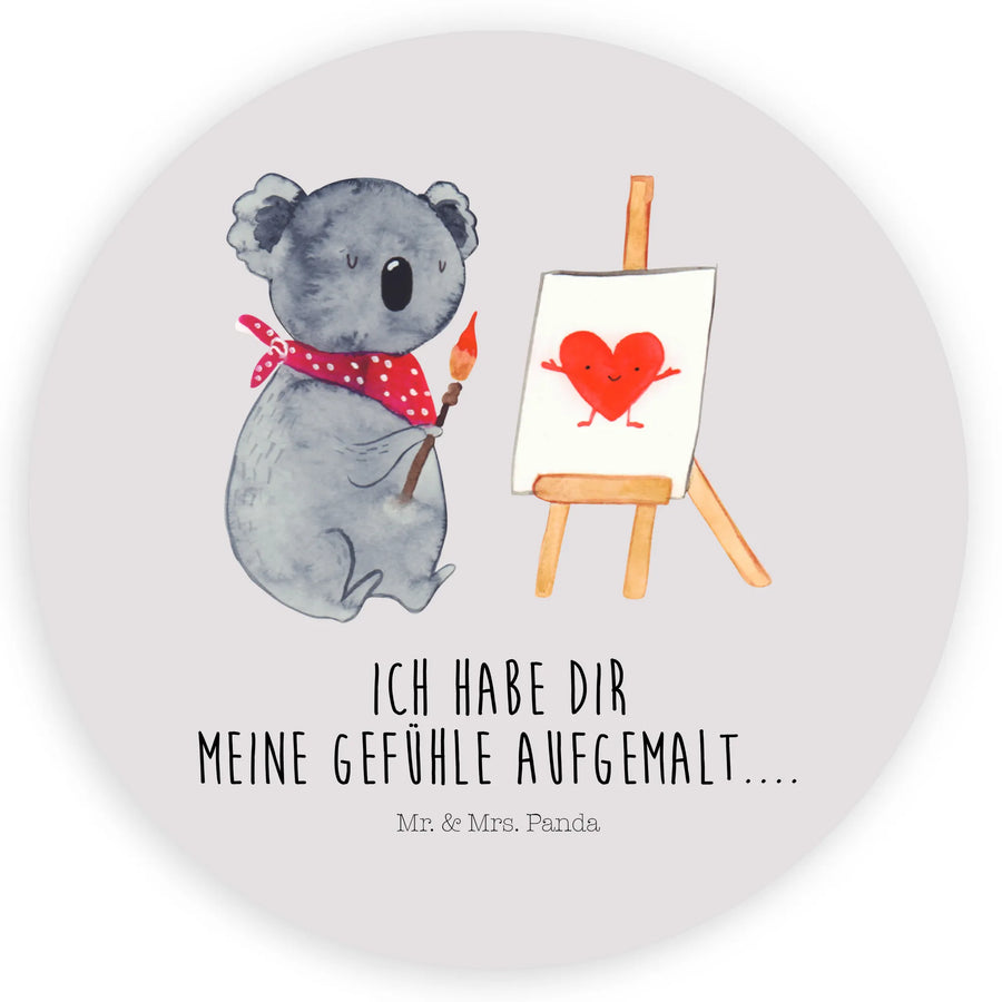 Round sticker Koala bear Artist - 120mm Rund Aufkleber - with saying - Pastel Gray