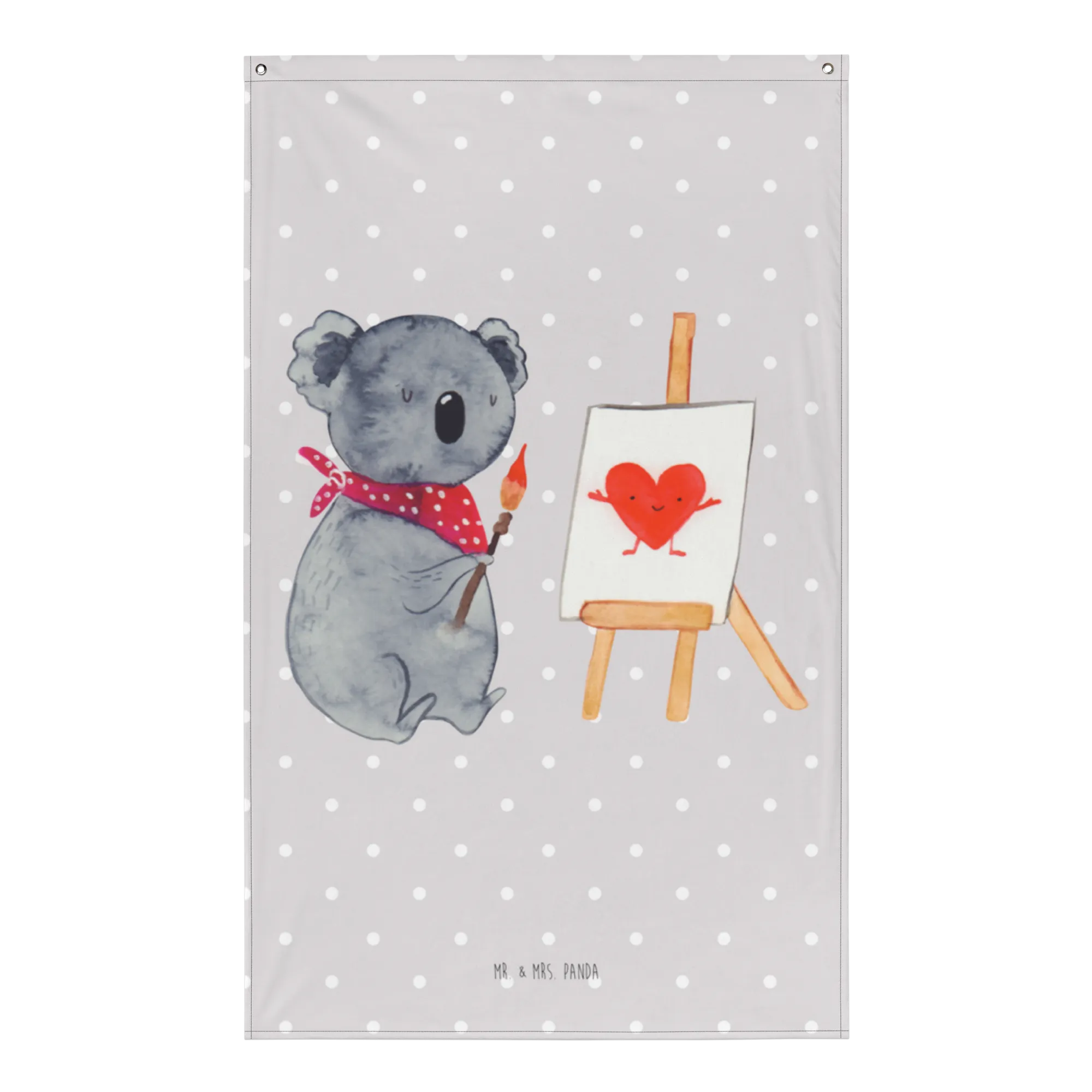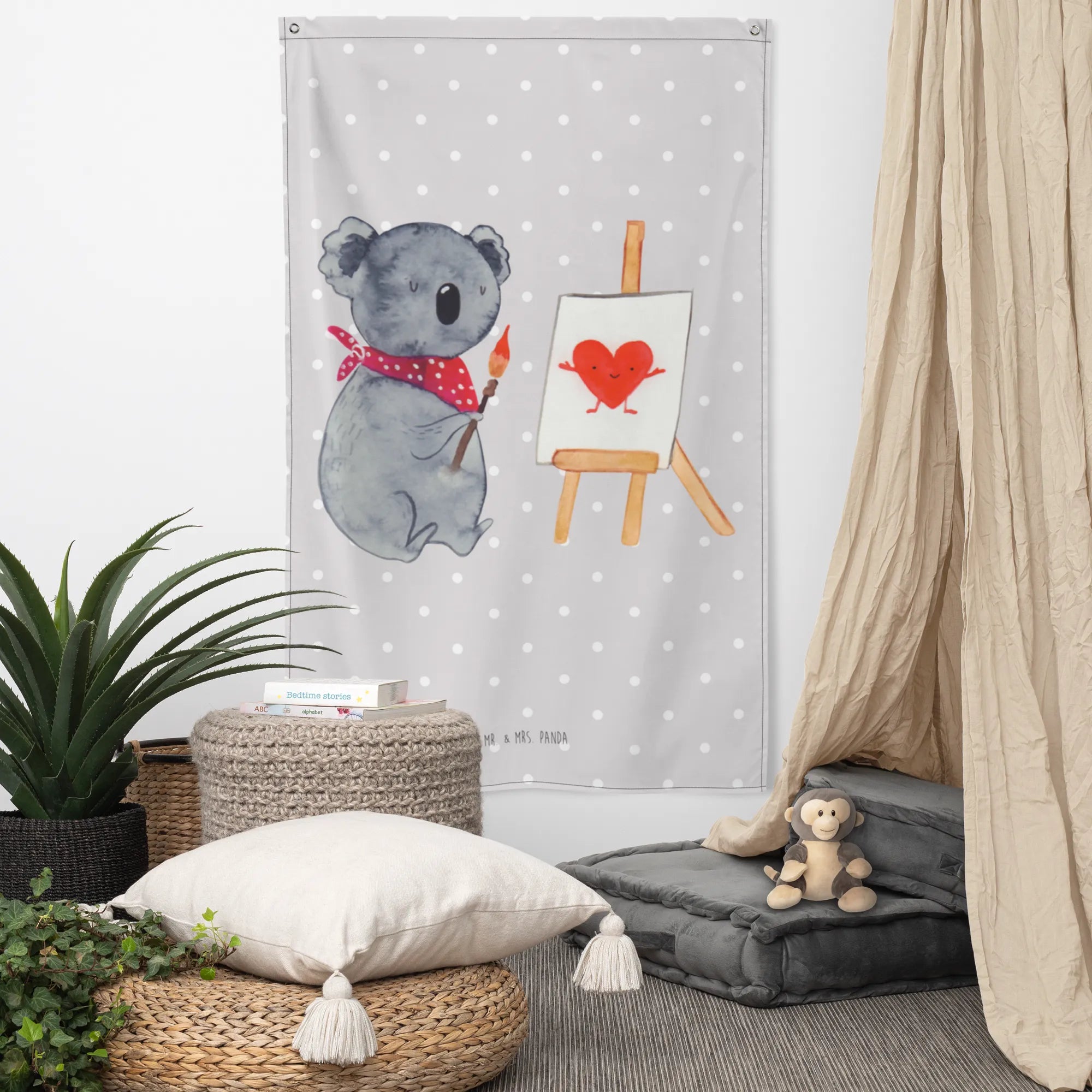 Entdecke den Wandteppich „Koala Künstler“ von Mr. & Mrs. Panda — ein zauberhafter Wandbehang im Boho-Stil, der dein Zuhause sofort gemütlicher macht. Auf zartem Grau Pastell malt ein kleiner Koala mit Pinsel auf einer großen Leinwand. Die handgezeichnete Aquarell-Illustration von Mrs. Panda strahlt Wärme und Ruhe aus und ist ein echter Hingucker für Wohnzimmer, Kinderzimmer oder Gästezimmer. 🎨🐨