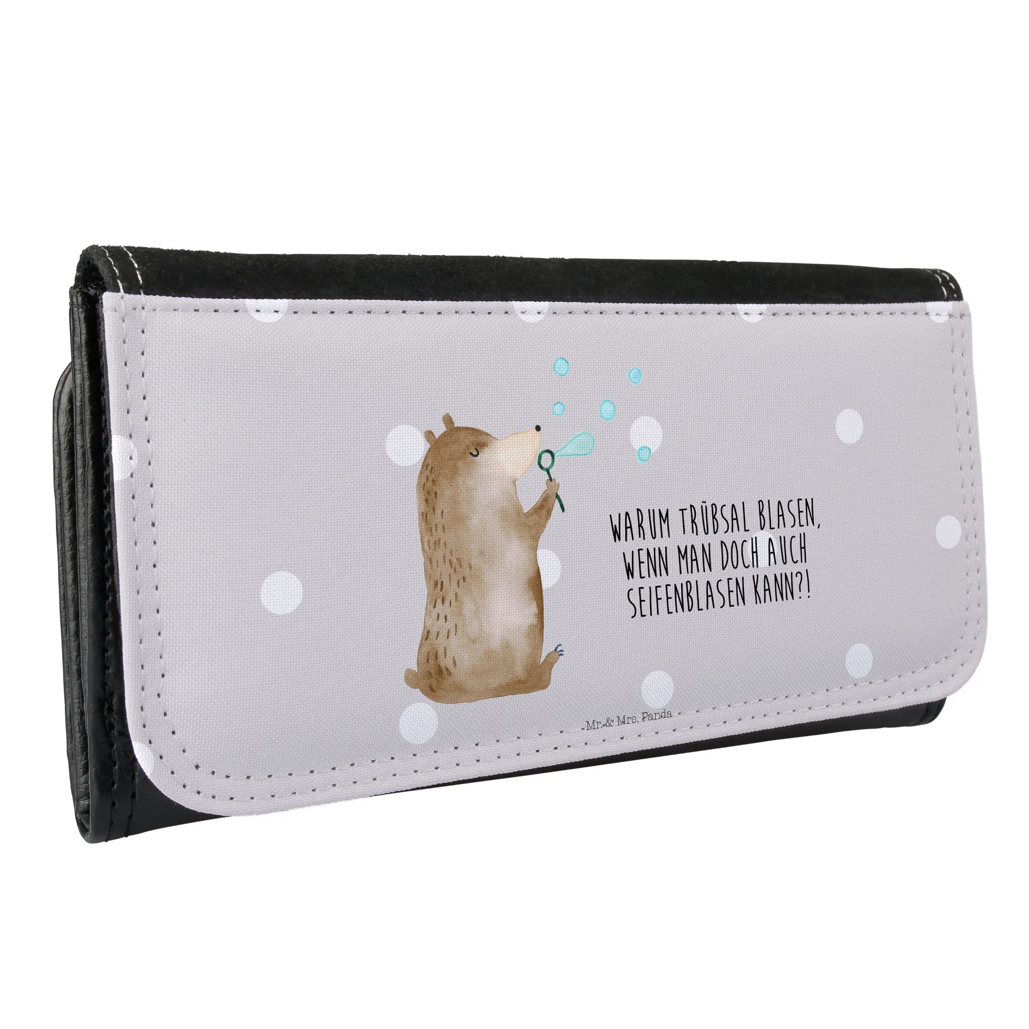 Ladies purse bear soap bubbles - with saying - Pastel Gray