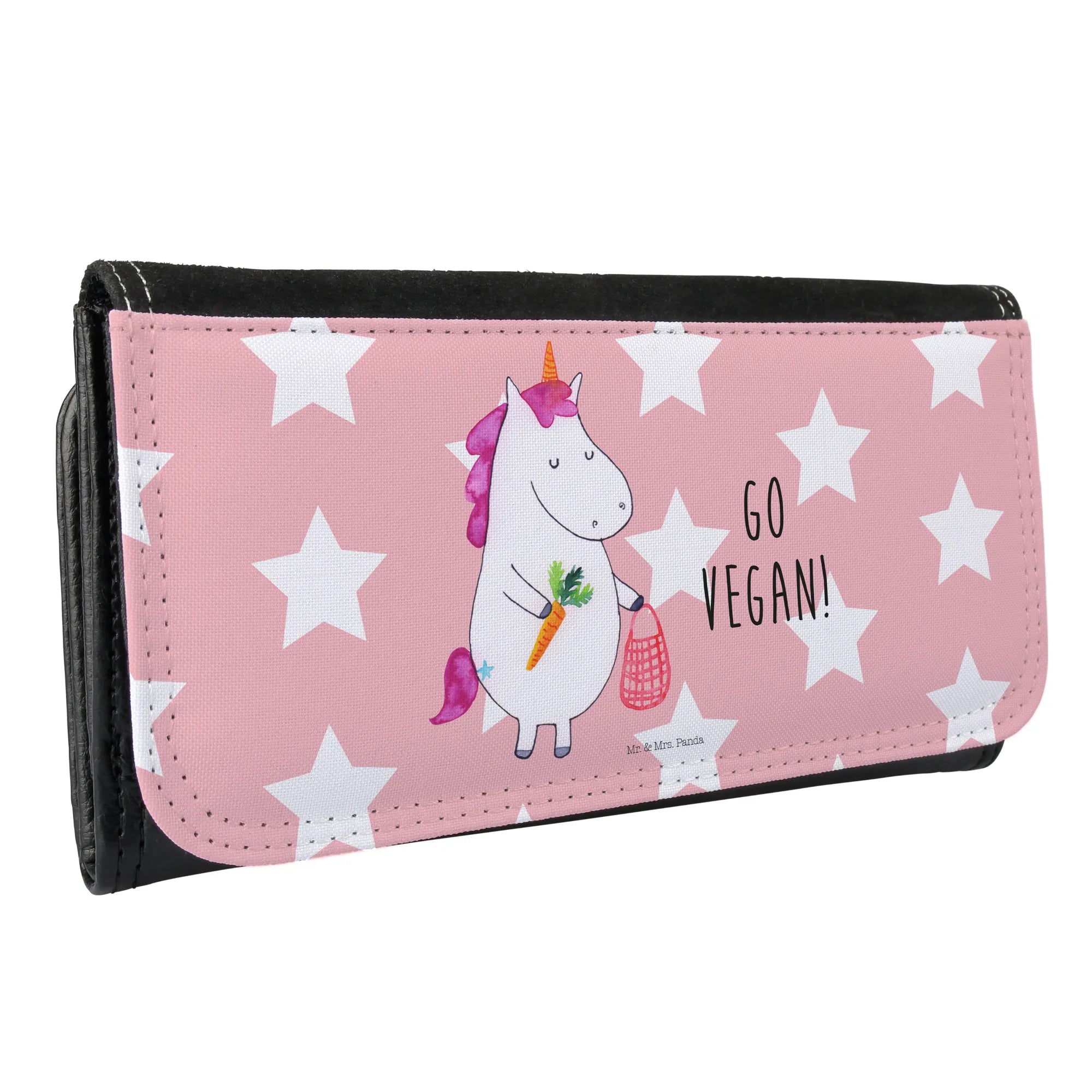 Introducing the Mr. & Mrs. Panda Unicorn Vegan Ladies Purse, a delightfully charming and practical accessory that's perfect for the eco-conscious fashionista in your life! Measuring 188 mm x 100 mm x 35 mm, this beautifully crafted wallet is designed to fit snugly in any handbag while providing ample storage. Made from durable premium faux leather, it features a brilliant color print of a whimsical unicorn carrying a shopping bag filled with vegan goodies. This unique motif not only adds a splash of color to your everyday style but also represents a lifestyle choice that resonates with many in the vegan community.
