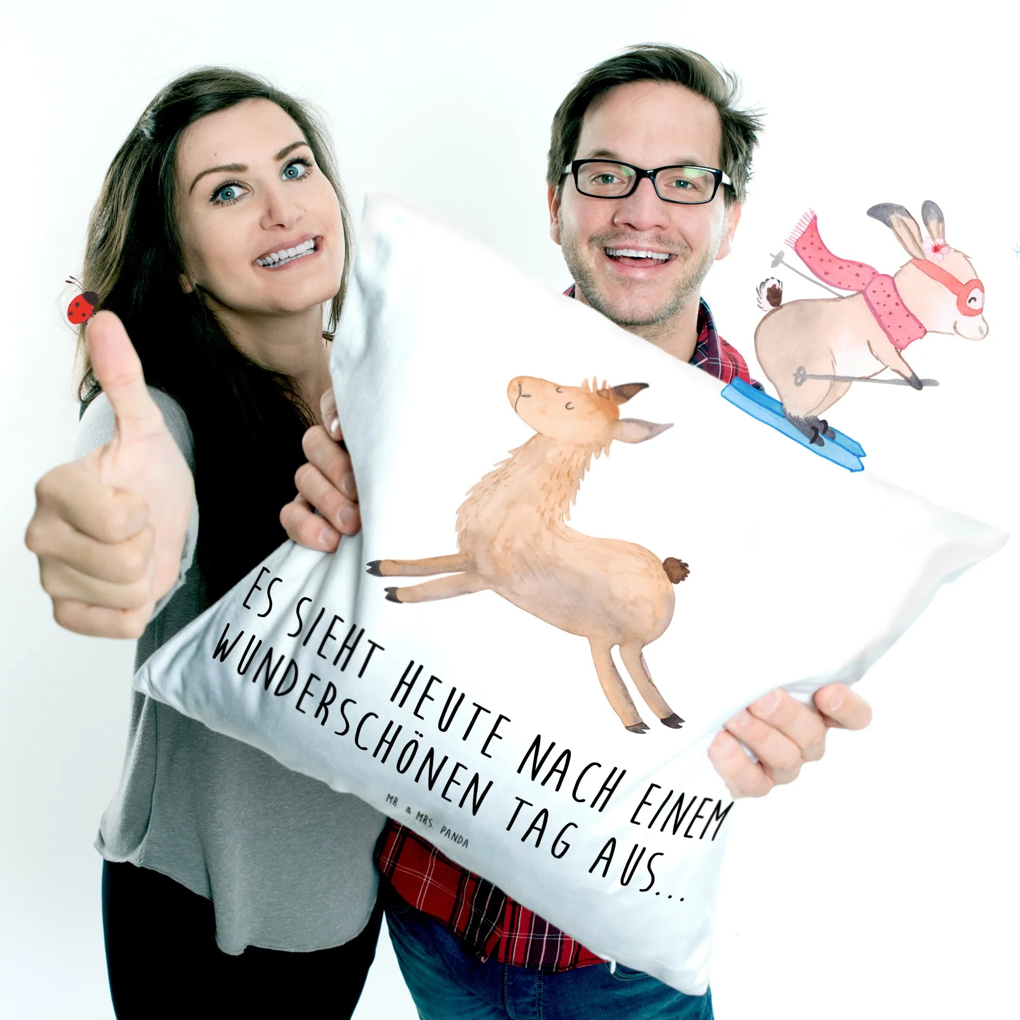 Cushion lama Jump - with a saying
