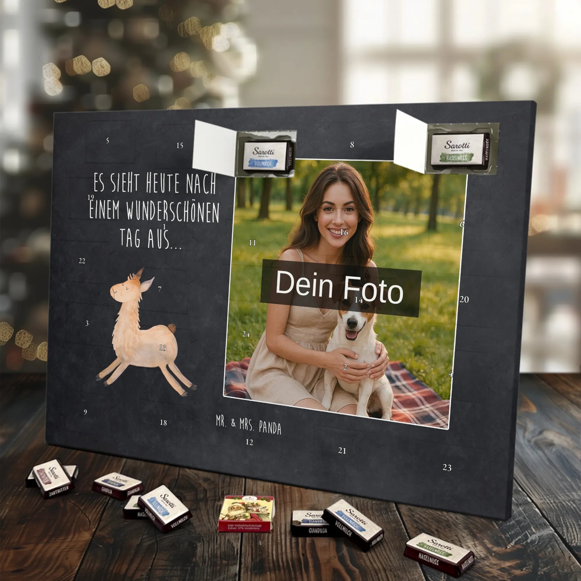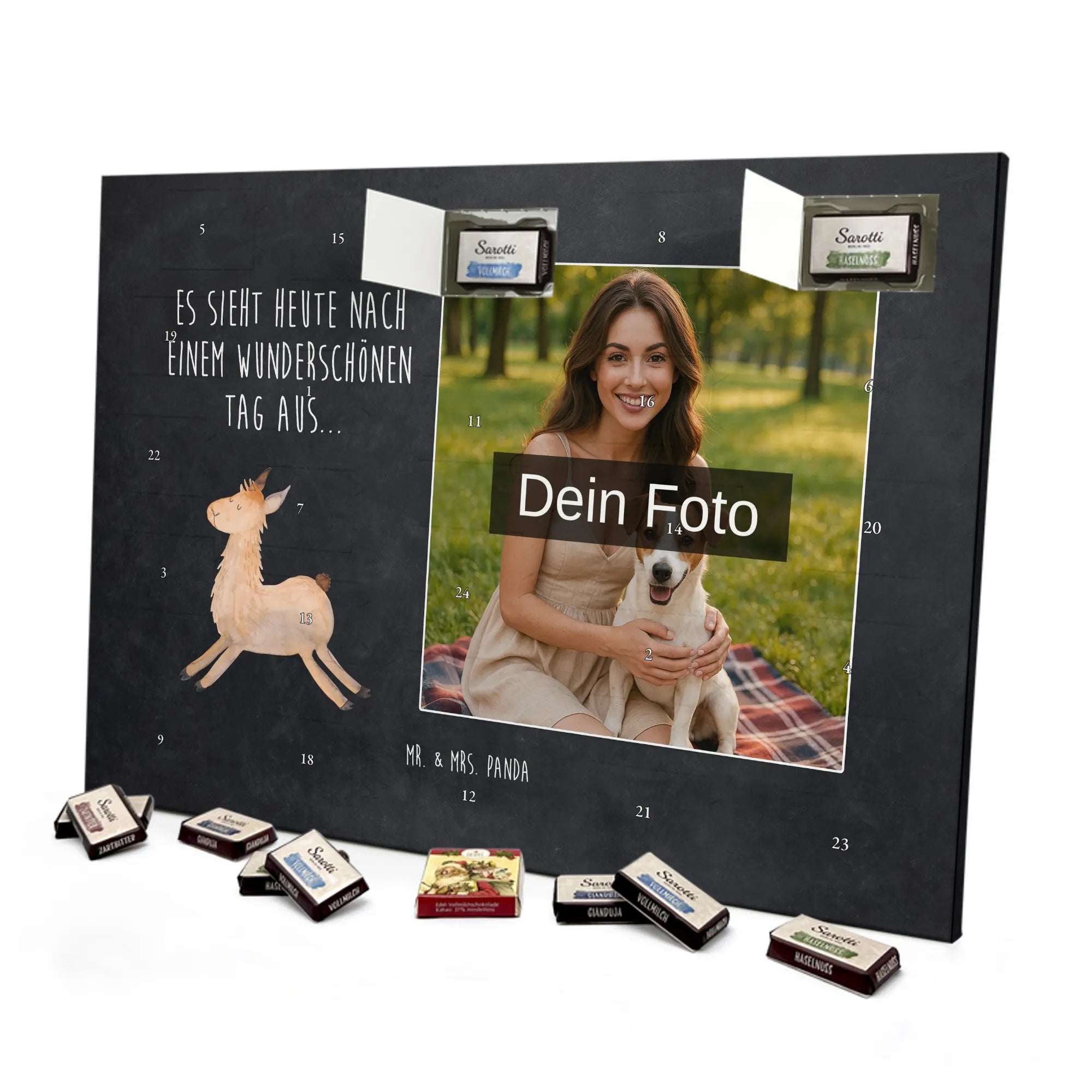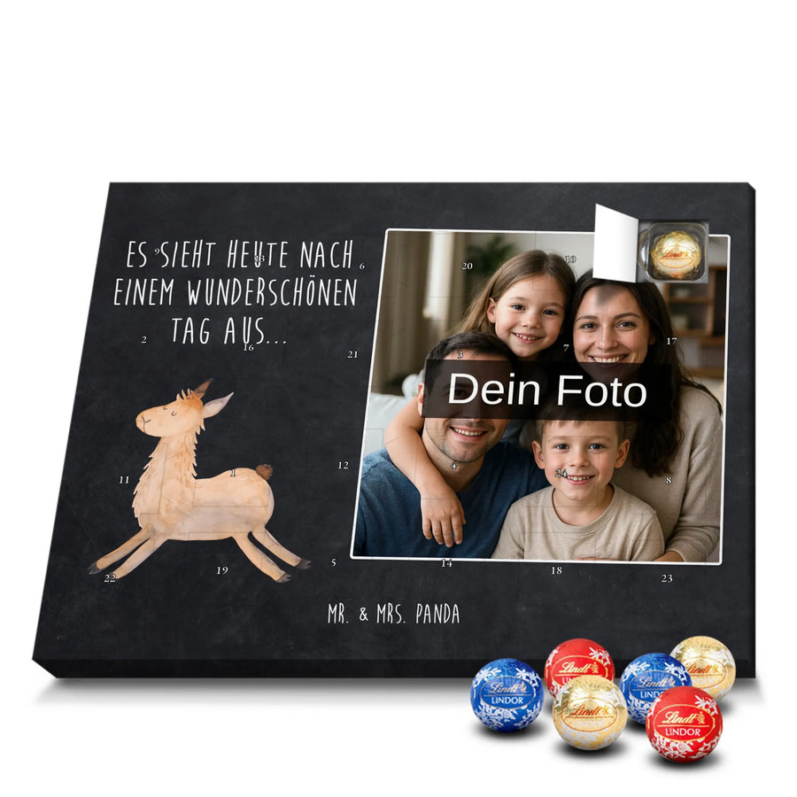 Personalisierter Schoko-Adventskalender mit Foto – das kleine Weihnachtswunder von Mr. & Mrs. Panda! Verschenke jeden Tag Vorfreude: Der Kalender ist liebevoll gestaltet mit unseren herzlichen Illustrationen und Sprüchen, während dein Foto die persönliche Mitte bildet. Bitte lade ein hochauflösendes Foto hoch und prüfe den Bildausschnitt, damit nichts Wichtiges verloren geht. Nutze nur Bilder, für die du die Rechte hast. Die hochwertige, seidenmatte Veredelung und die bedruckten Seitenflächen garantieren ein edles Erscheinungsbild. Maße: 355 mm x 245 mm x 11 mm; lässt sich sowohl aufhängen als auch aufstellen. Achtung: Fotos werden nicht nachbearbeitet oder zugeschnitten; personalisierte Artikel sind vom Rückgaberecht ausgeschlossen. Gefüllt mit 24 einzeln verpackten Schokoladentäfelchen aus den vier Geschmacksrichtungen Vollmilch, Nougat, Zartbitter und Haselnuss – von Sarotti® und Confiserie Heidel®. Insgesamt enthält der Kalender 107 g Markenschokolade. Ein persönliches Geschenk mit süßem Inhalt, ideal für Partner, Familie und Freunde, verpackt mit der typischen Mr. & Mrs. Panda Liebe zum Detail.