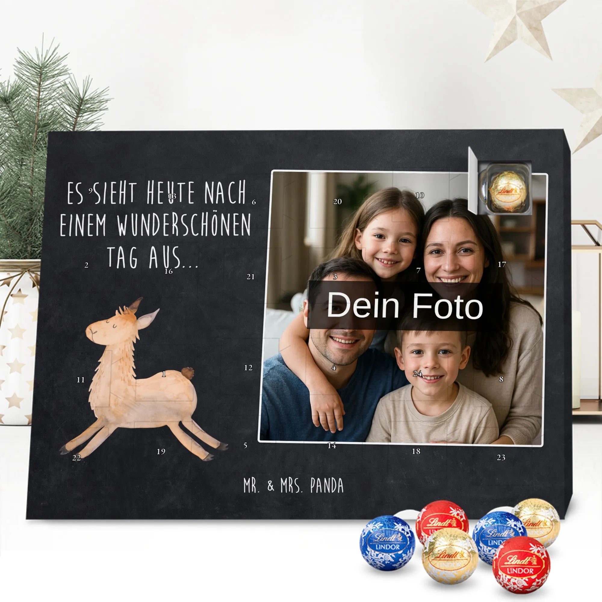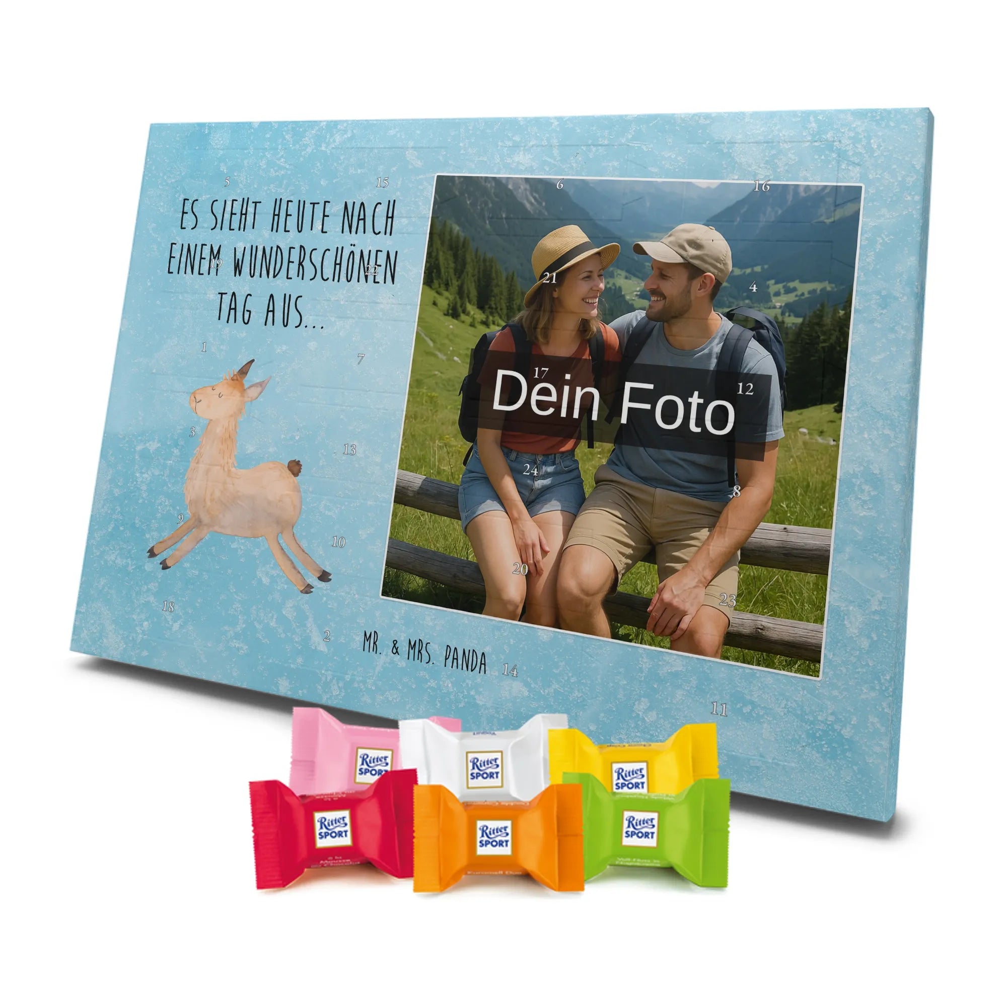 Foto-Adventskalender mit Schokolade von Mr. & Mrs. Panda – personalisiere den Advent mit deinem Lieblingsfoto und unseren liebevollen Motiven & Sprüchen. Dieser Kalender ist ideal, wenn du etwas Persönliches schenken willst: Einfach Foto hochladen, auf hohe Auflösung achten und den passenden Bildausschnitt wählen. Denk daran, nur Bilder zu verwenden, bei denen du die Bildrechte besitzt. Fotos werden nicht nachbearbeitet oder zugeschnitten; Rücknahme bei personalisierten Foto Artikeln ist ausgeschlossen. Die Druckqualität ist brillant, mit seidenmatter Oberflächenveredelung und bedruckten Seitenflächen für ein hochwertiges Erscheinungsbild. Maße: 325 mm x 225 mm x 27 mm. Besonderheit: Du kannst den Kalender sowohl aufhängen als auch aufstellen. Gefüllt ist er mit Ritter Sport Schokowürfeln – köstliche Sorten wie Mousse au Chocolat, Schoko Crisp, Voll-Nuss in Nougatcreme, Karamell Duo, Joghurt und Erdbeer-Joghurt warten hinter den Türchen. Ein liebevoll gestaltetes Geschenk, das Erinnerungen und Genuss verbindet und die Vorfreude auf Weihnachten jeden Tag versüßt.