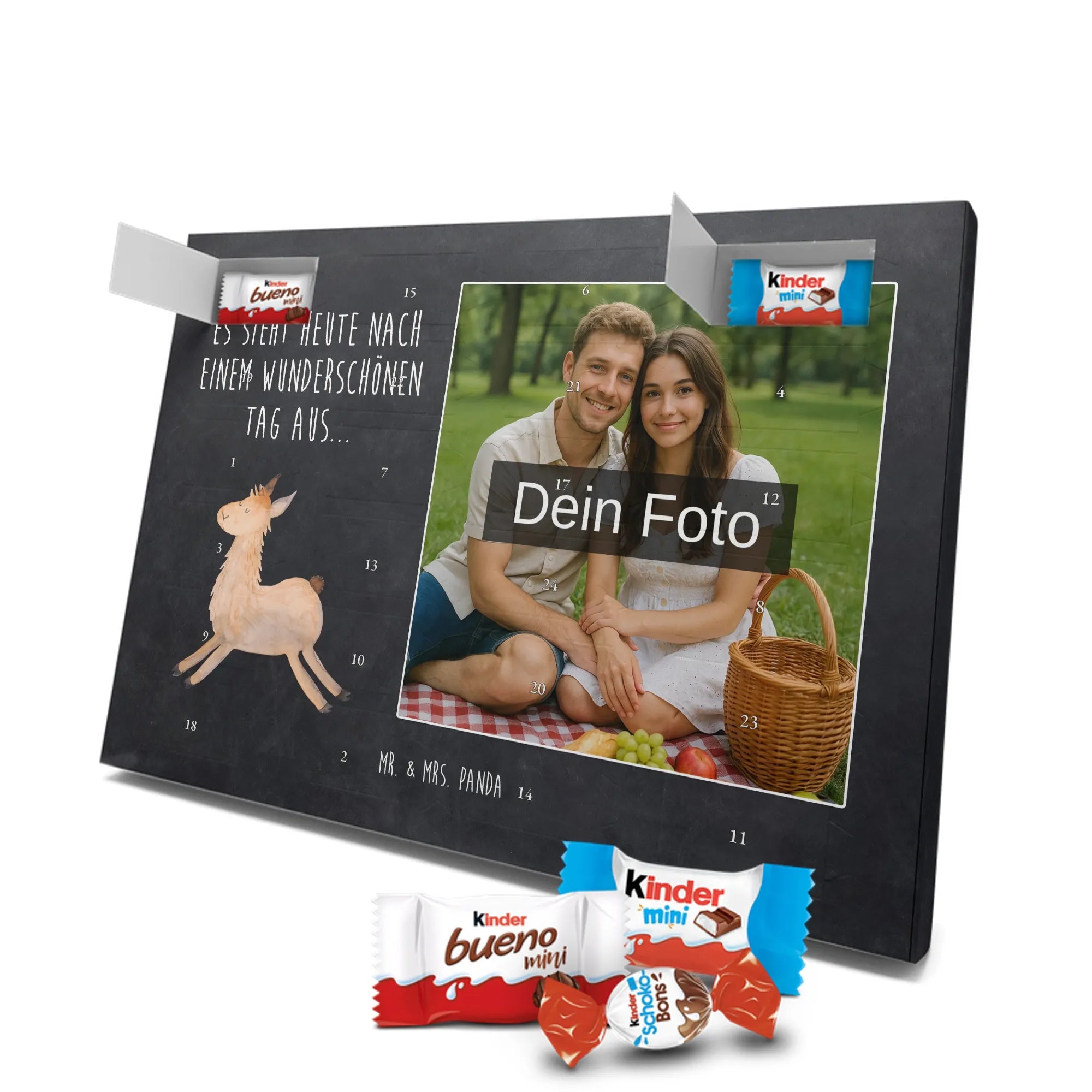 Personalisierter Schoko Foto Adventskalender von Mr. & Mrs. Panda – ein liebevoll gestaltetes Geschenk, das Vorfreude und Genuss vereint. In diesem personalisierten Schoko Foto Adventskalender kannst du dein Lieblingsfoto einsetzen und so jeden Tag im Dezember mit einem kleinen Lächeln öffnen. Der Kalender ist bedruckt mit unseren typischen Mr. & Mrs. Panda Motiven und süßen Sprüchen, die perfekt zu deinem Foto passen. Achte bitte bei der Bildauswahl auf hohe Auflösung, damit der Druck klar und brillant wird. Wähle einen passenden Bildausschnitt, damit keine wichtigen Details abgeschnitten werden. Lade nur Bilder hoch, bei denen du die Bildrechte besitzt oder die Zustimmung der abgebildeten Personen vorliegt. Die Fotos werden weder nachbearbeitet noch zugeschnitten; Rücknahme bei personalisierten Foto-Artikeln ist ausgeschlossen. Die Druckqualität ist brillant mit einer seidenmatten Oberflächenveredelung und bedruckten Seitenflächen für ein rundum schönes Erscheinungsbild. Maße: 355 mm x 245 mm x 11 mm. Praktisch: Du kannst den Adventskalender entweder aufstellen oder an die Wand hängen. Gefüllt ist der Kalender mit kinder® Schokolade – genauer: kinder® Schoko-Bons, kinder® Bueno mini und kinder® Schokolade mini. Bitte beachte: Um das beste Druckergebnis zu erzielen, lade ein hochwertiges Foto hoch und kontrolliere vor dem Bestellen den Bildausschnitt. Dieser Adventskalender ist das perfekte, persönliche Geschenk für Familie, Freunde oder für dich selbst – voller Liebe, süßer Überraschungen und dem unverwechselbaren Mr. & Mrs. Panda Charme.