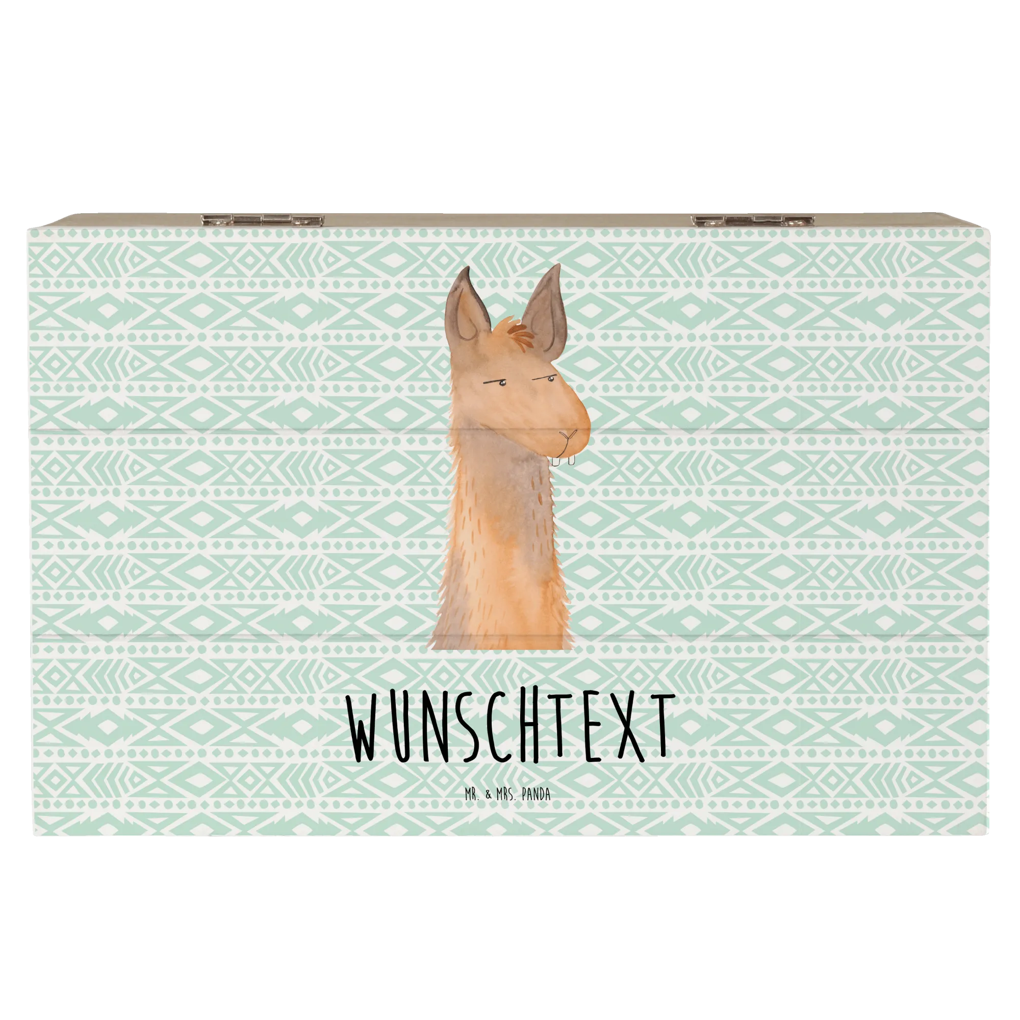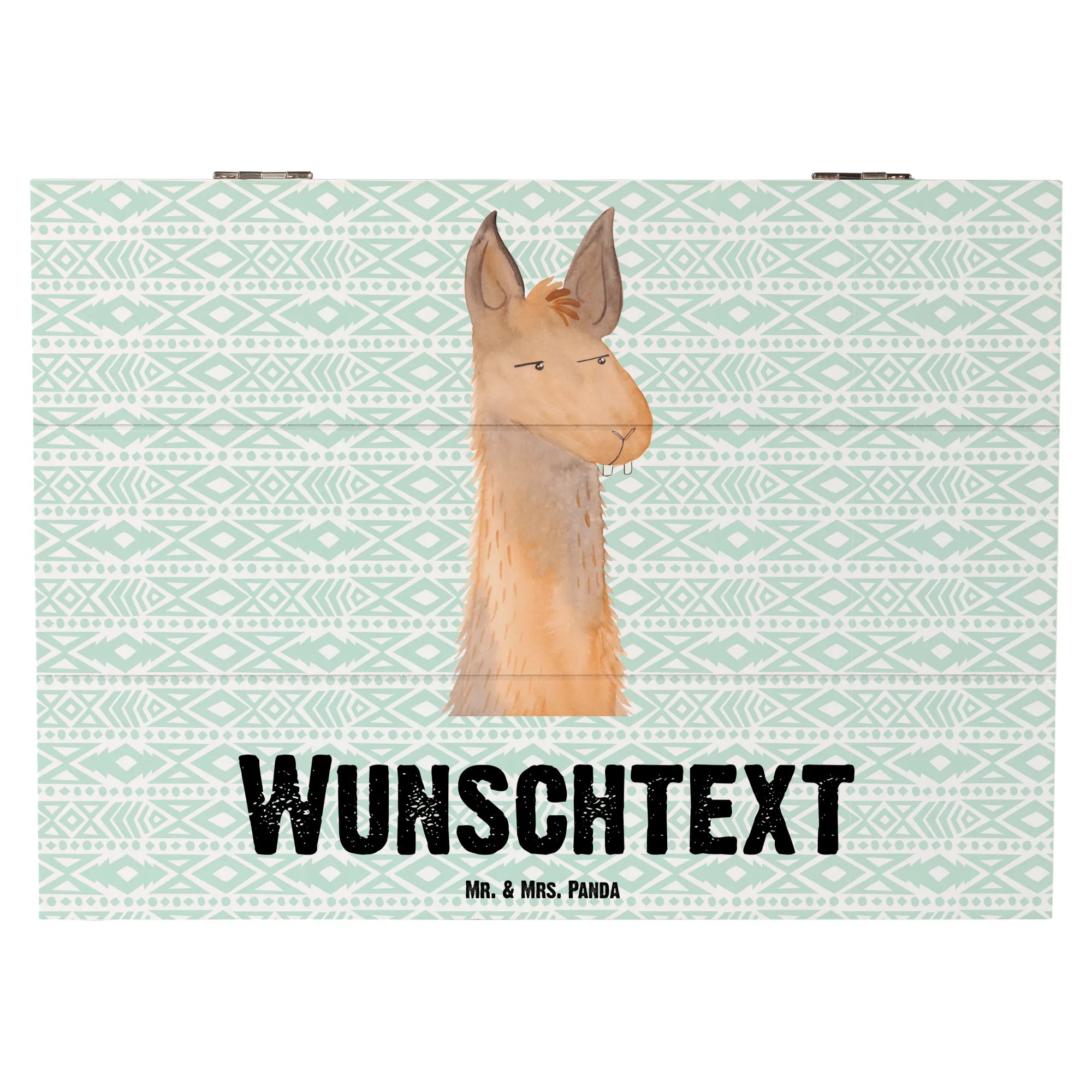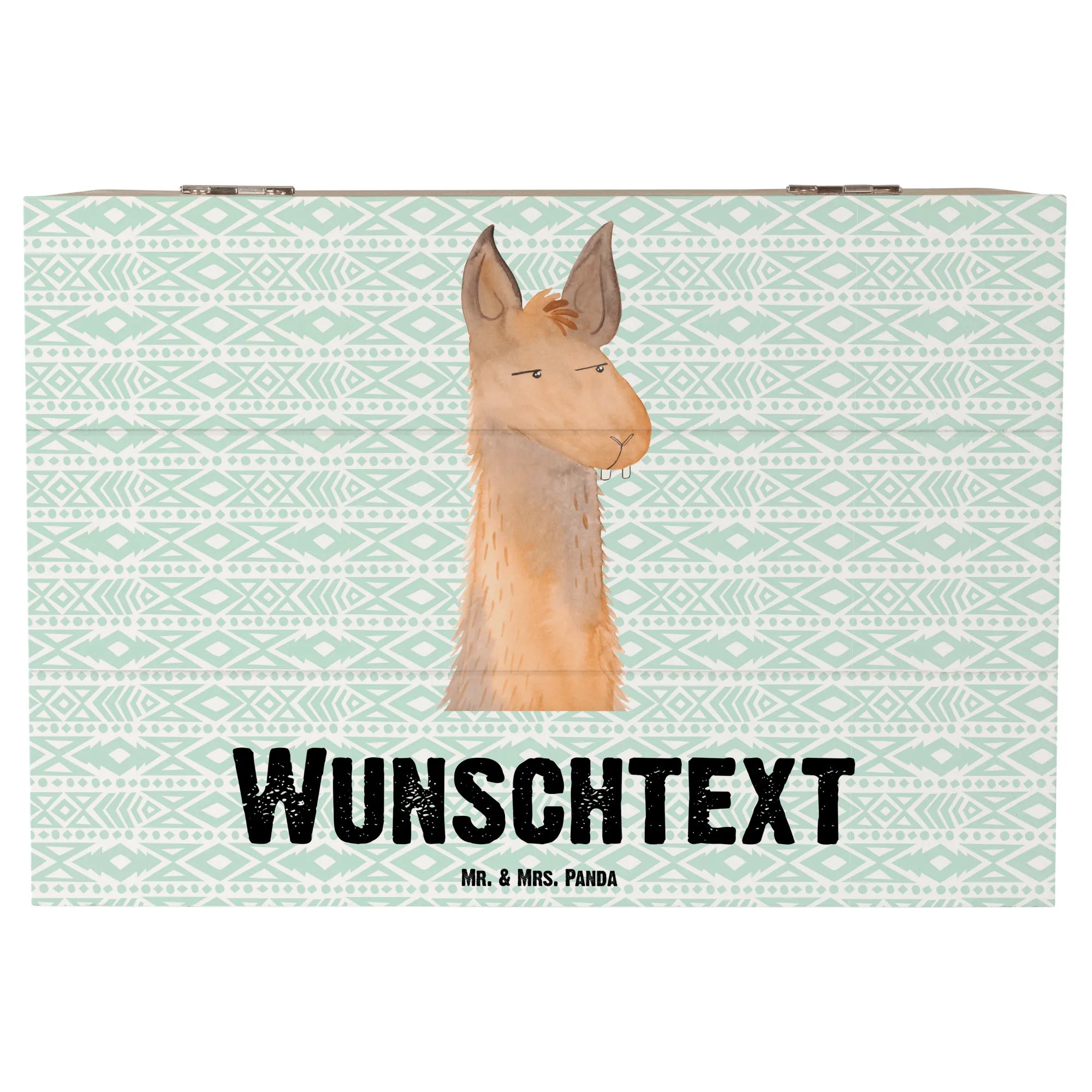 Personalised wooden chest llama head Annoyed - 22 x 15 cm - Aztec blue